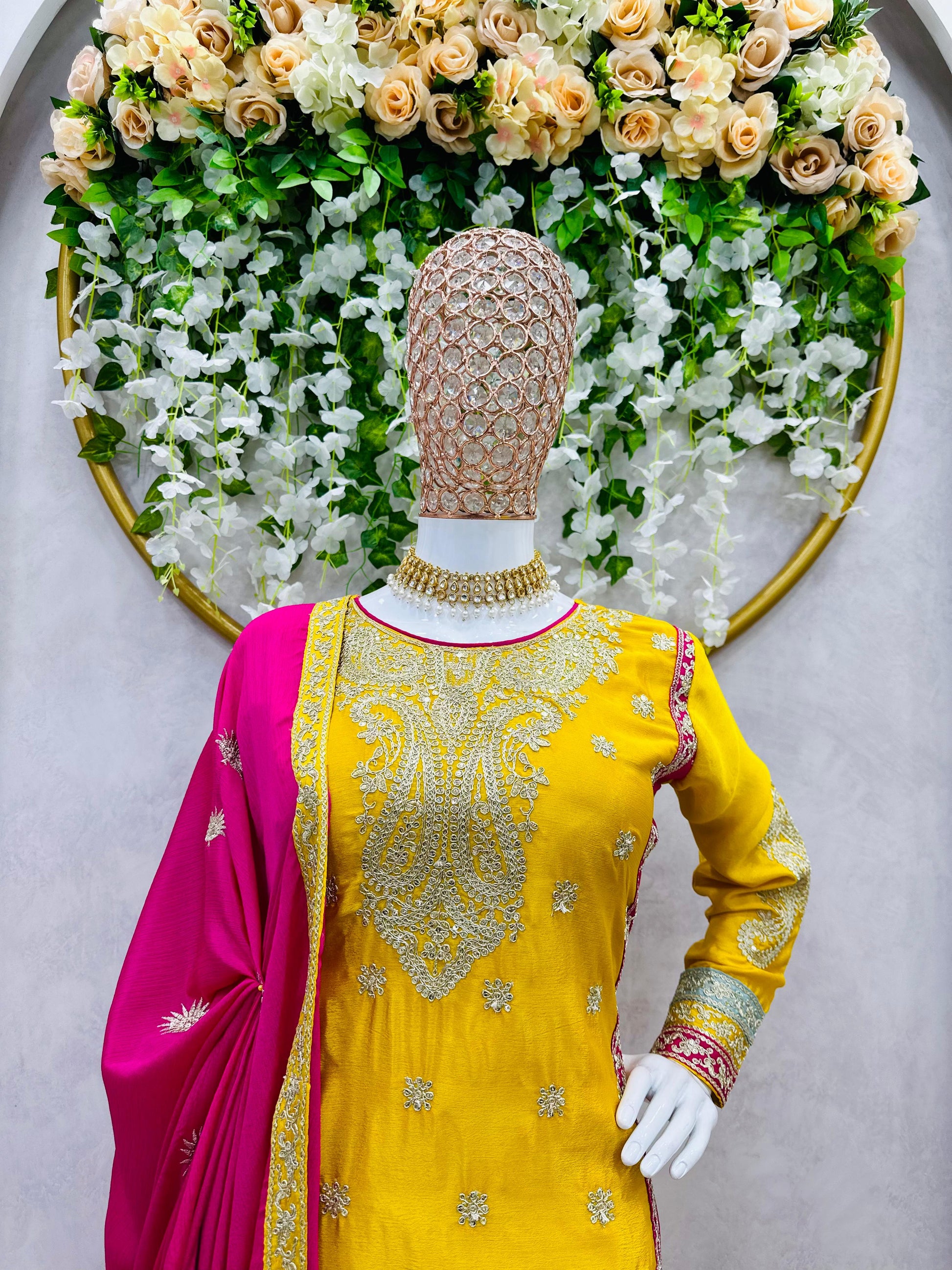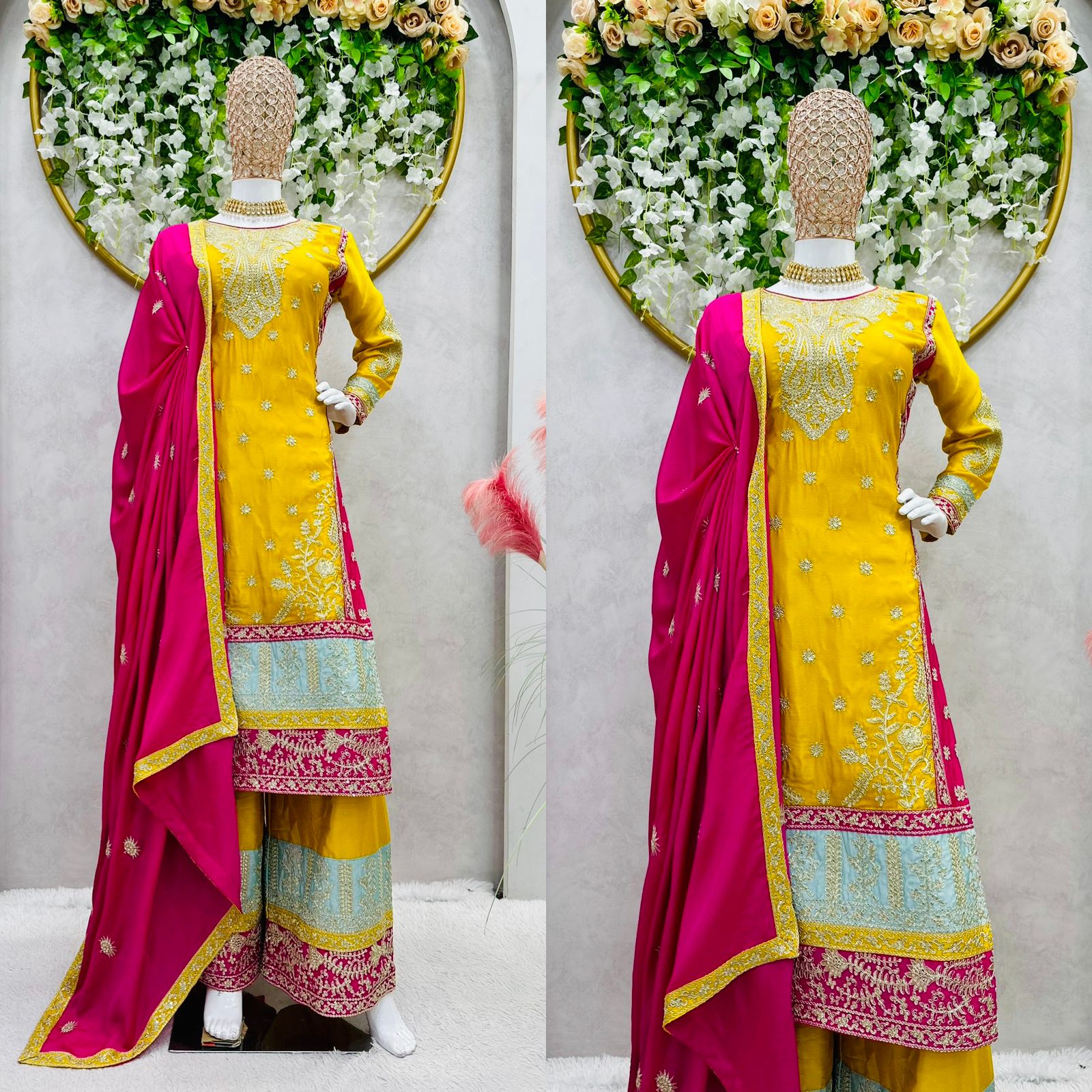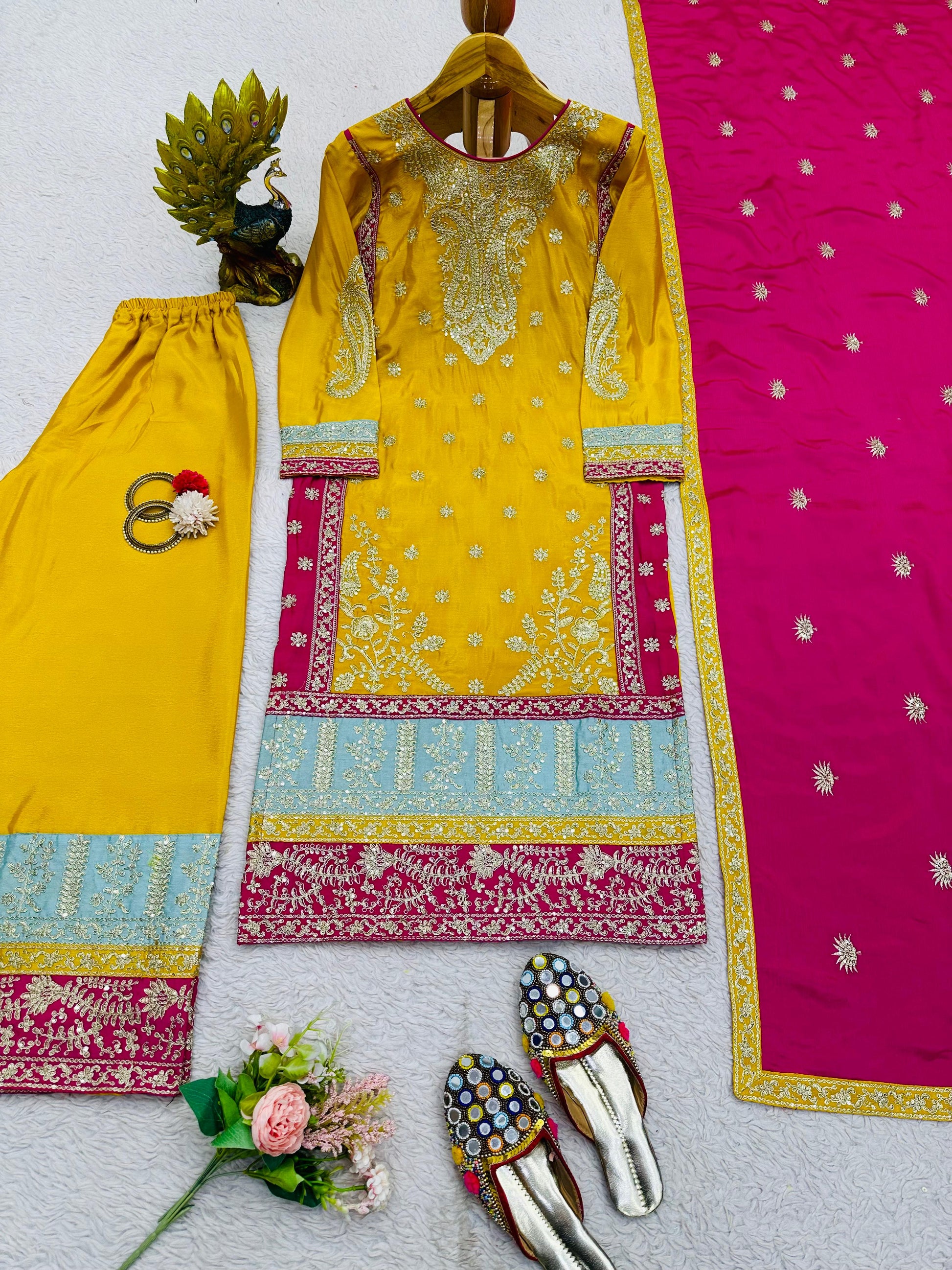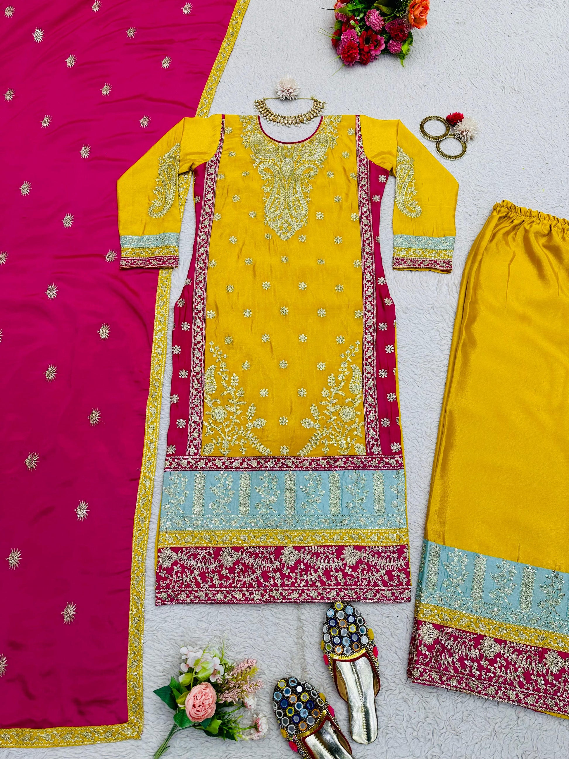 Festive Wear Yellow Color Heavy Work Palazzo Suit