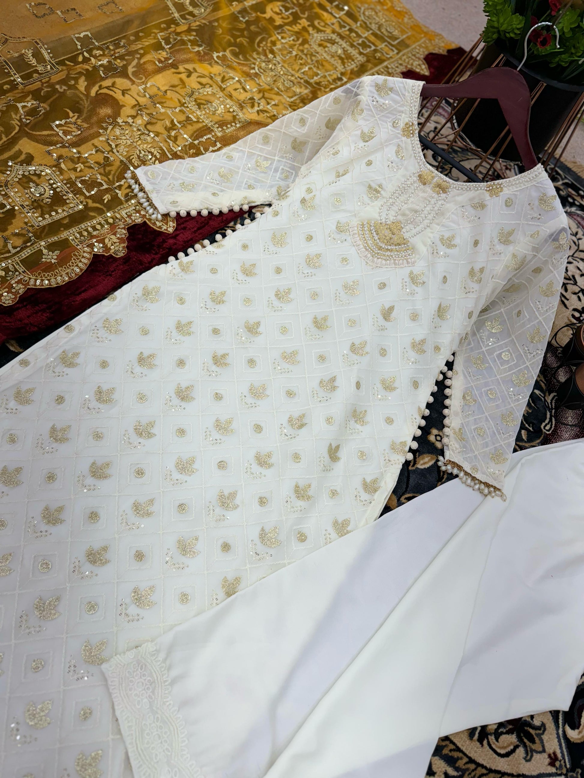 | Sharara Fabrics | Heavy Faux Georgette With Embroidery Sequence Work Lace Border |