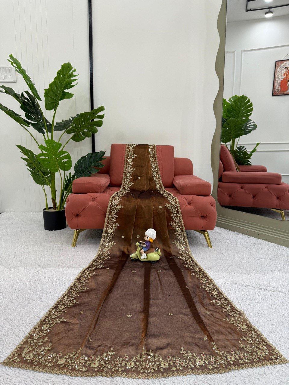 Looking Some One For This Same Colour Beautiful Designer Saree On Barbari Silk Fabric With Thread & Sequence Work And Blouse On Also Barbari Silk Fabric With Thread & Sequence Work