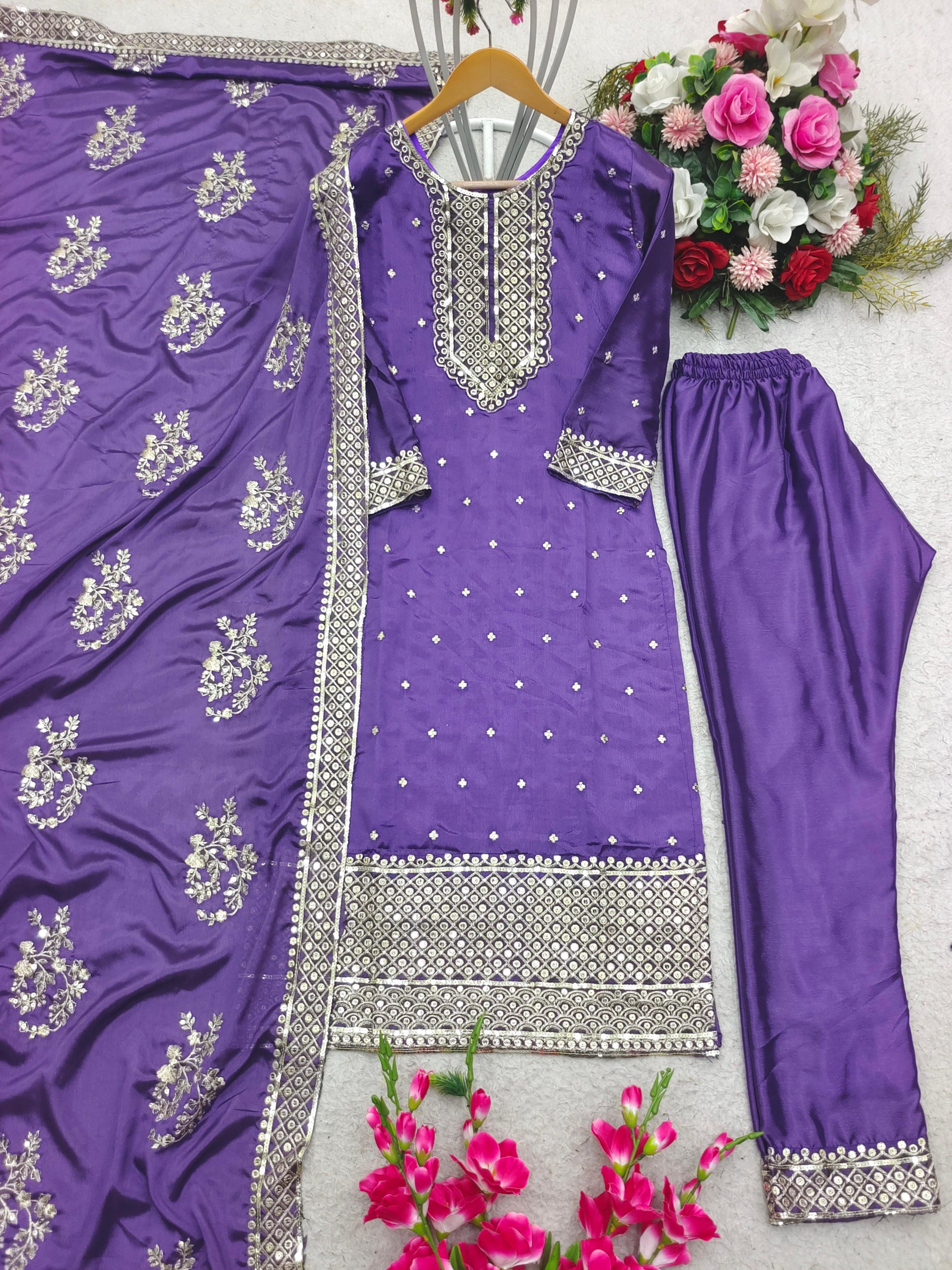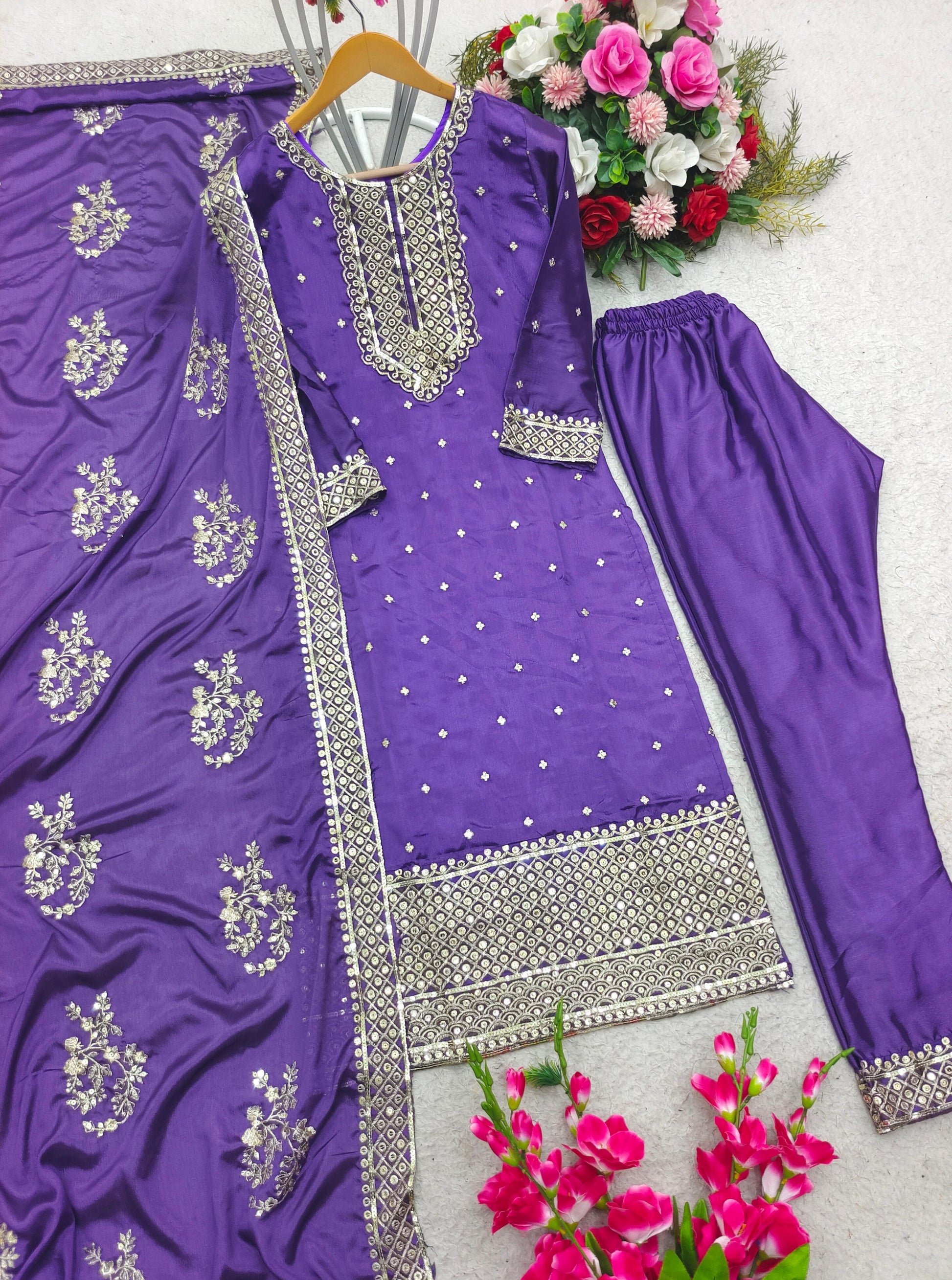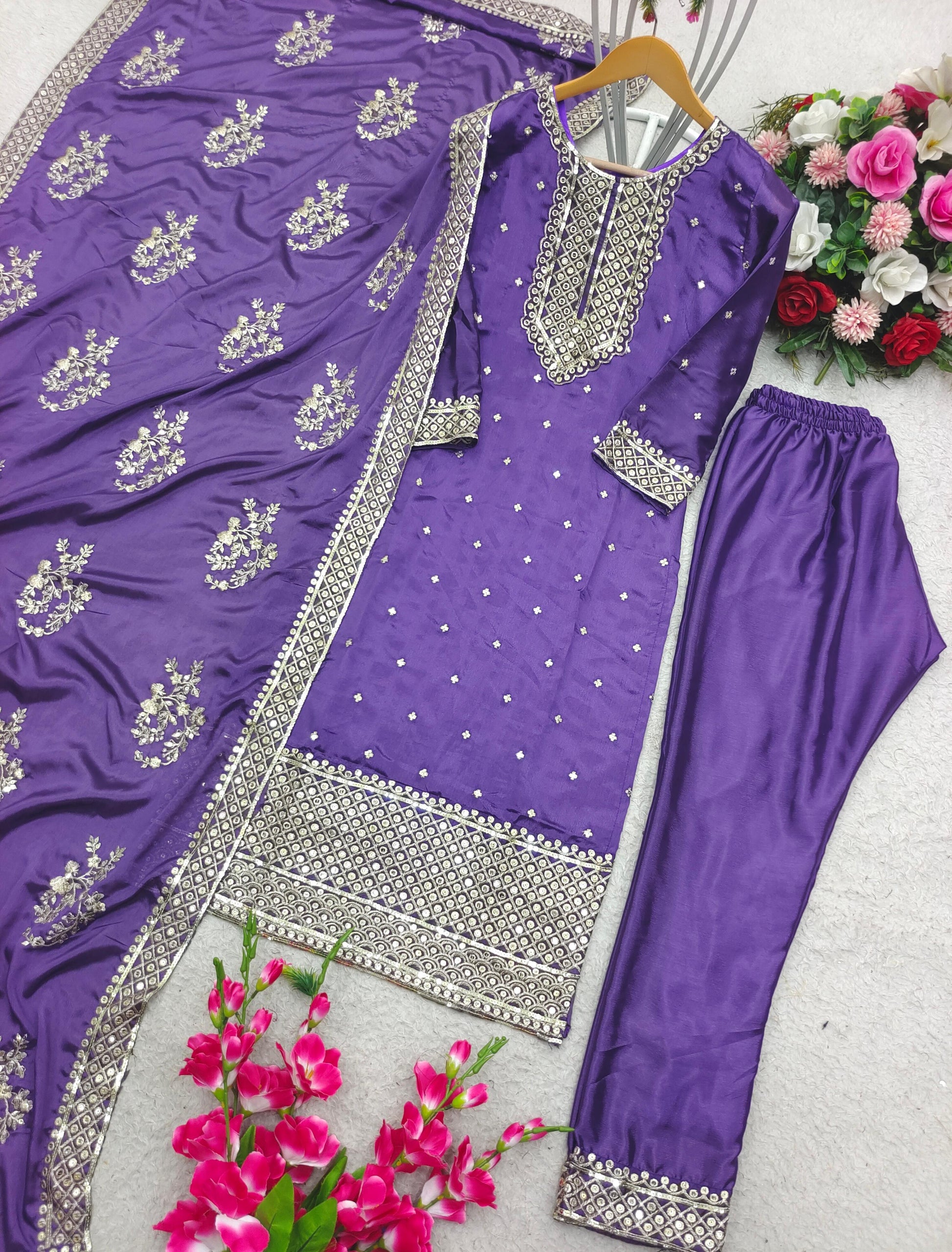 | Fabric | Heavy Cinon Silk With 5mm Siqwans Embroidery Work With Full-Stitch |