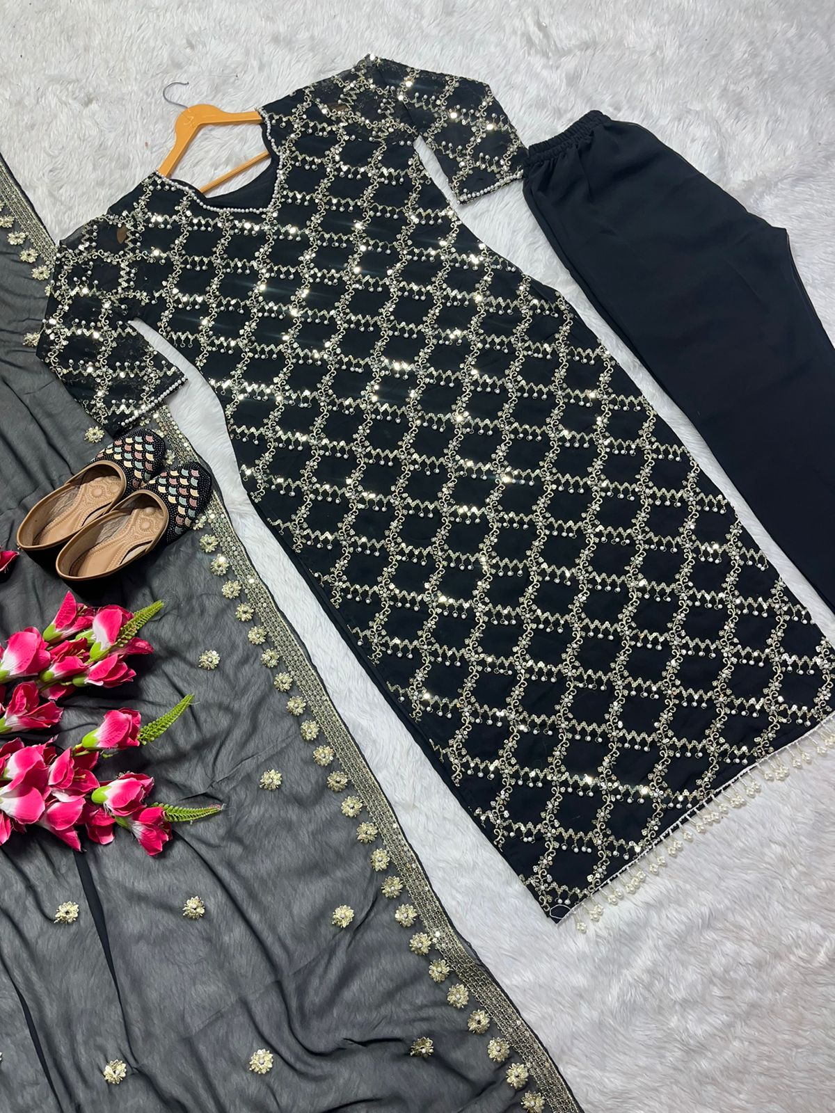 | Top Work | Heavy Faux Georgette Fabric With Heavy Embroidery 5mm Sequence Work With Moti Latkan Lace And Full Sleeve |
