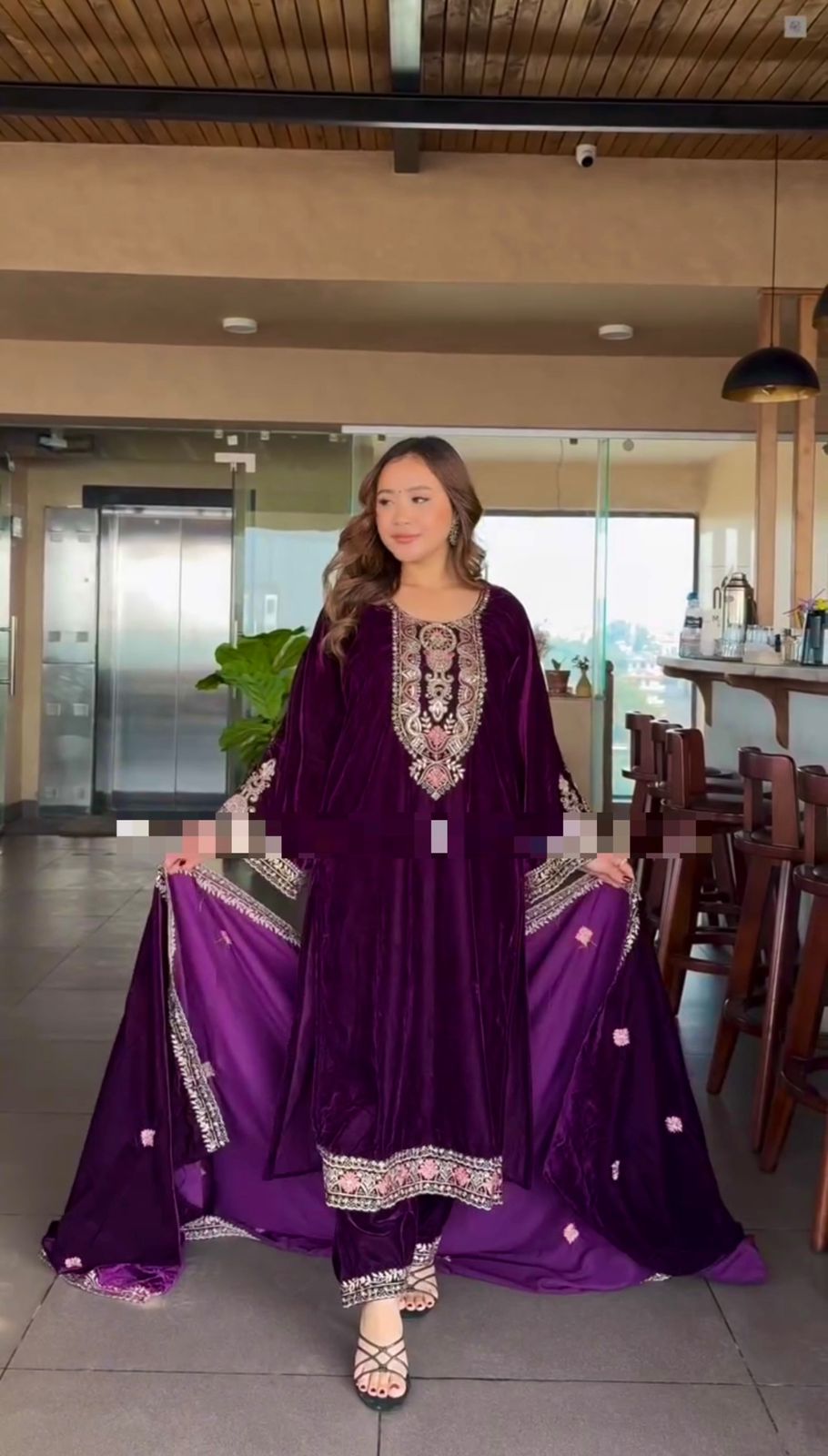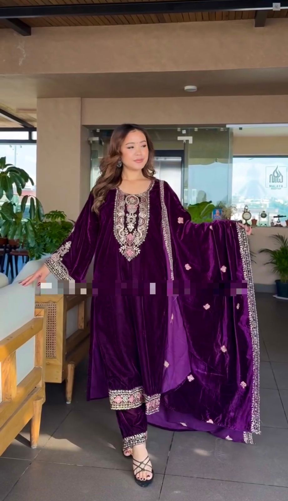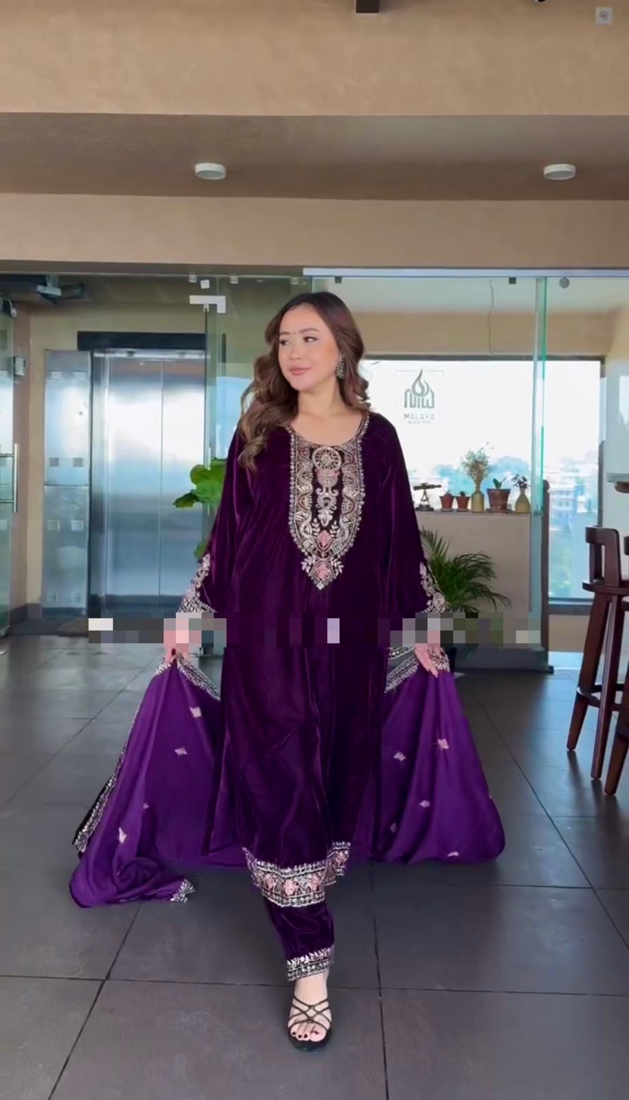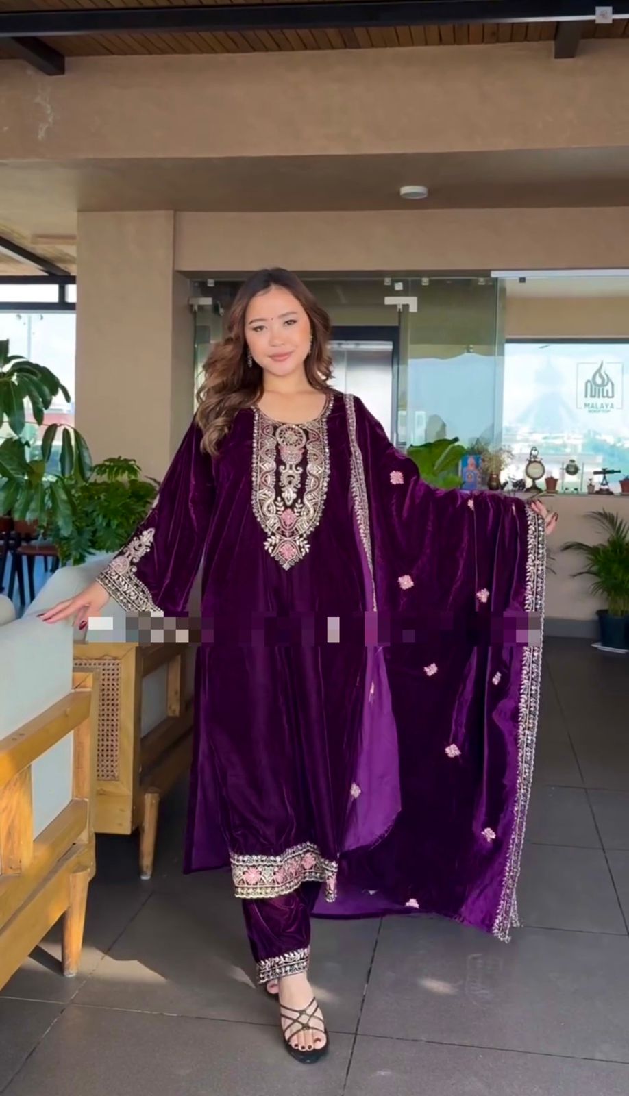 👗 Bottom Fabric : Viscose Velvet With Embroidery Sequence Work ( Full Stiched)