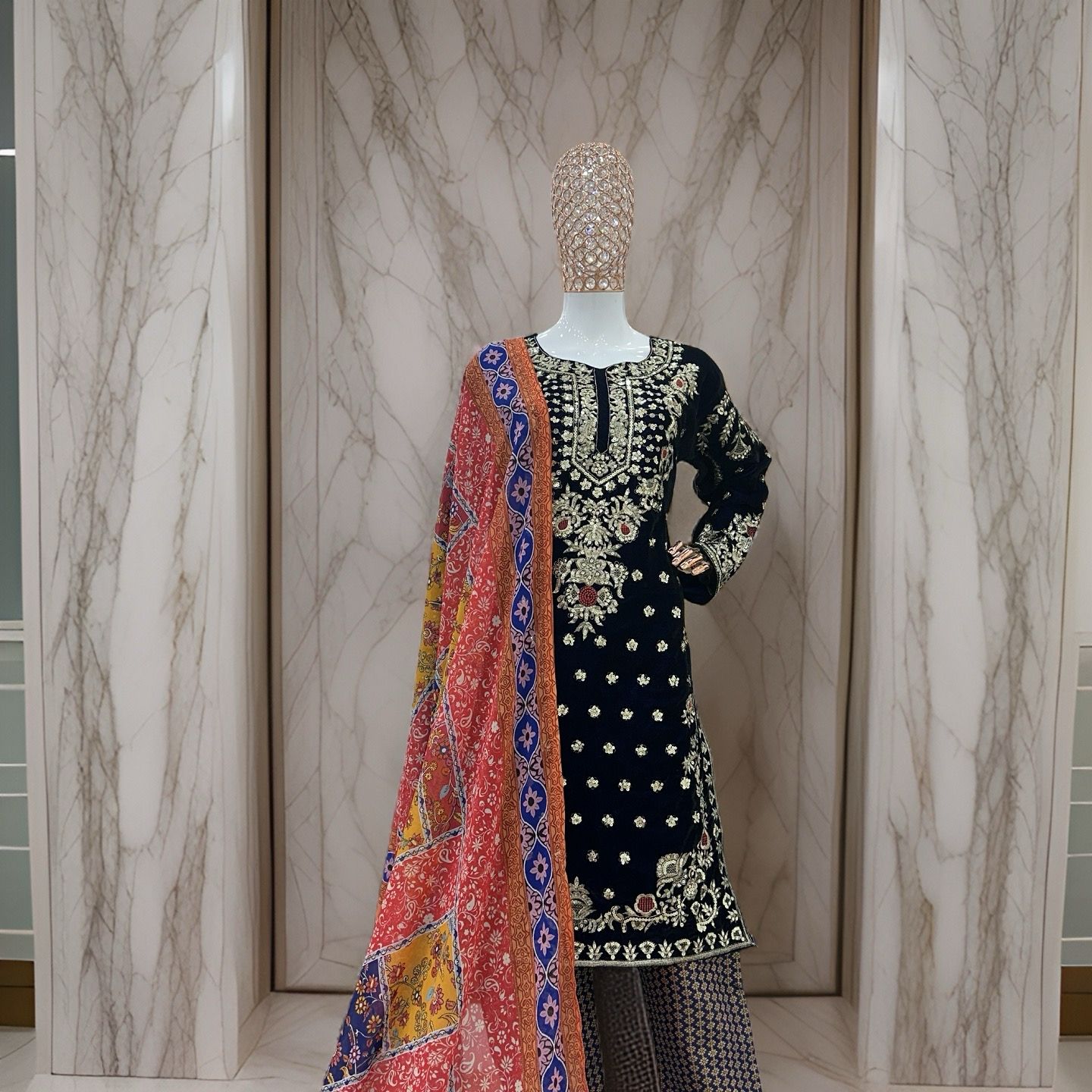 Fabric | Heavy Viscose Velvet Fancy Sleeve With Heavy Work |
