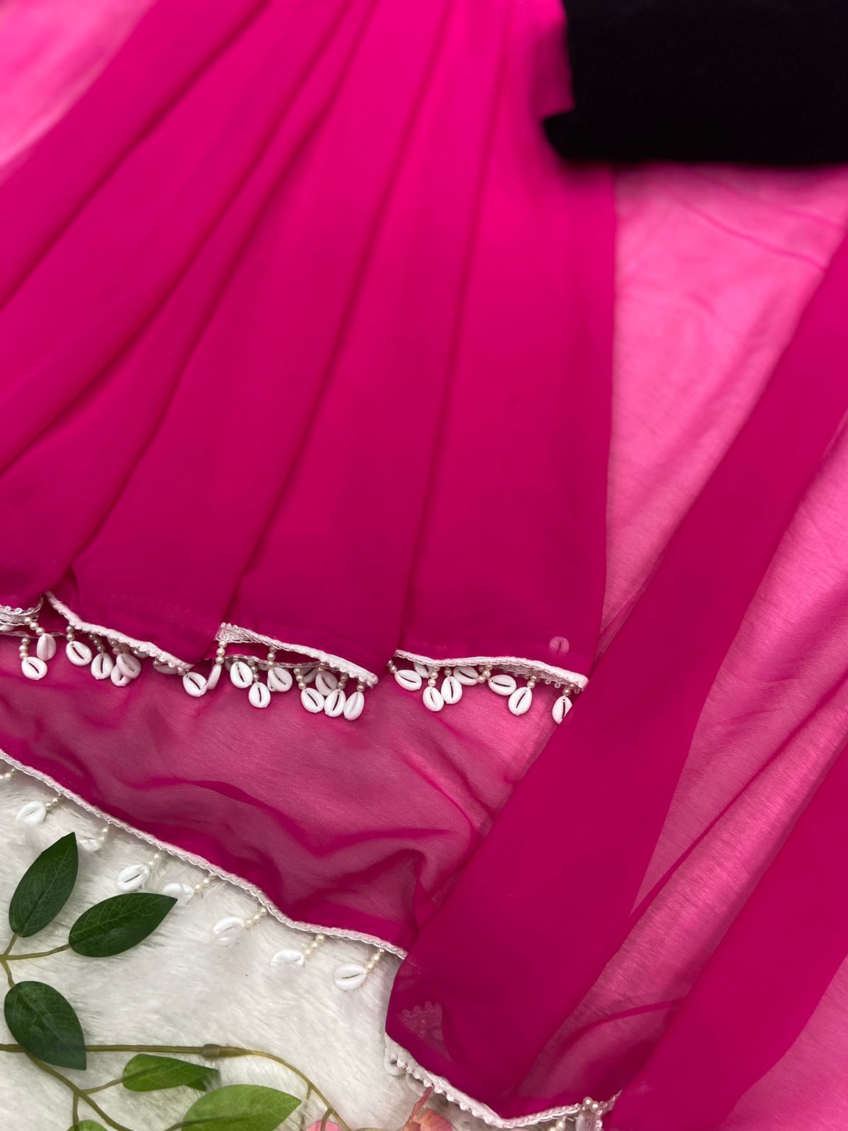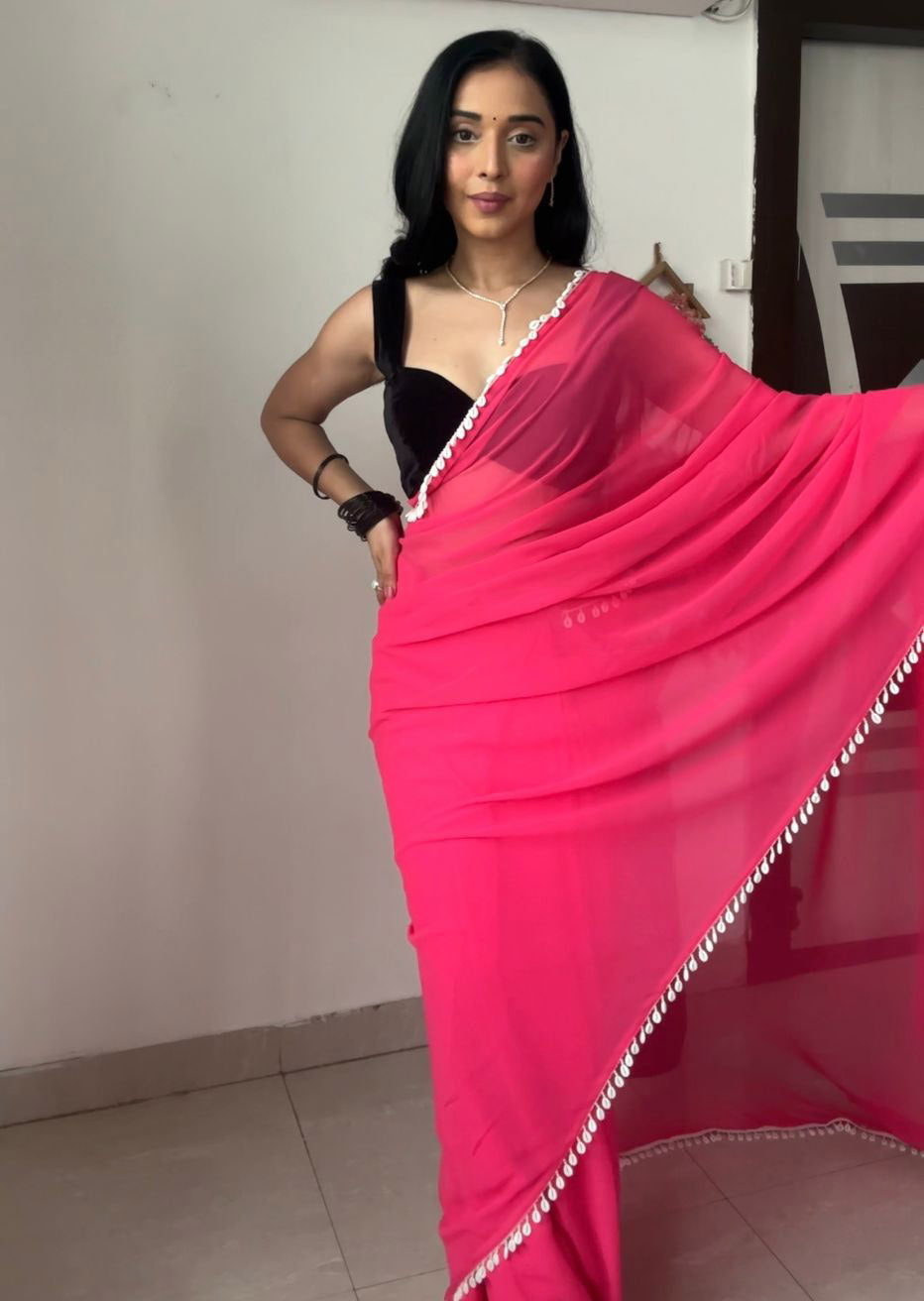 Saree Fabric | Premium Georgette Embellished With Beautiful Heavy Lace Work On Border( Ready To Wear ) |