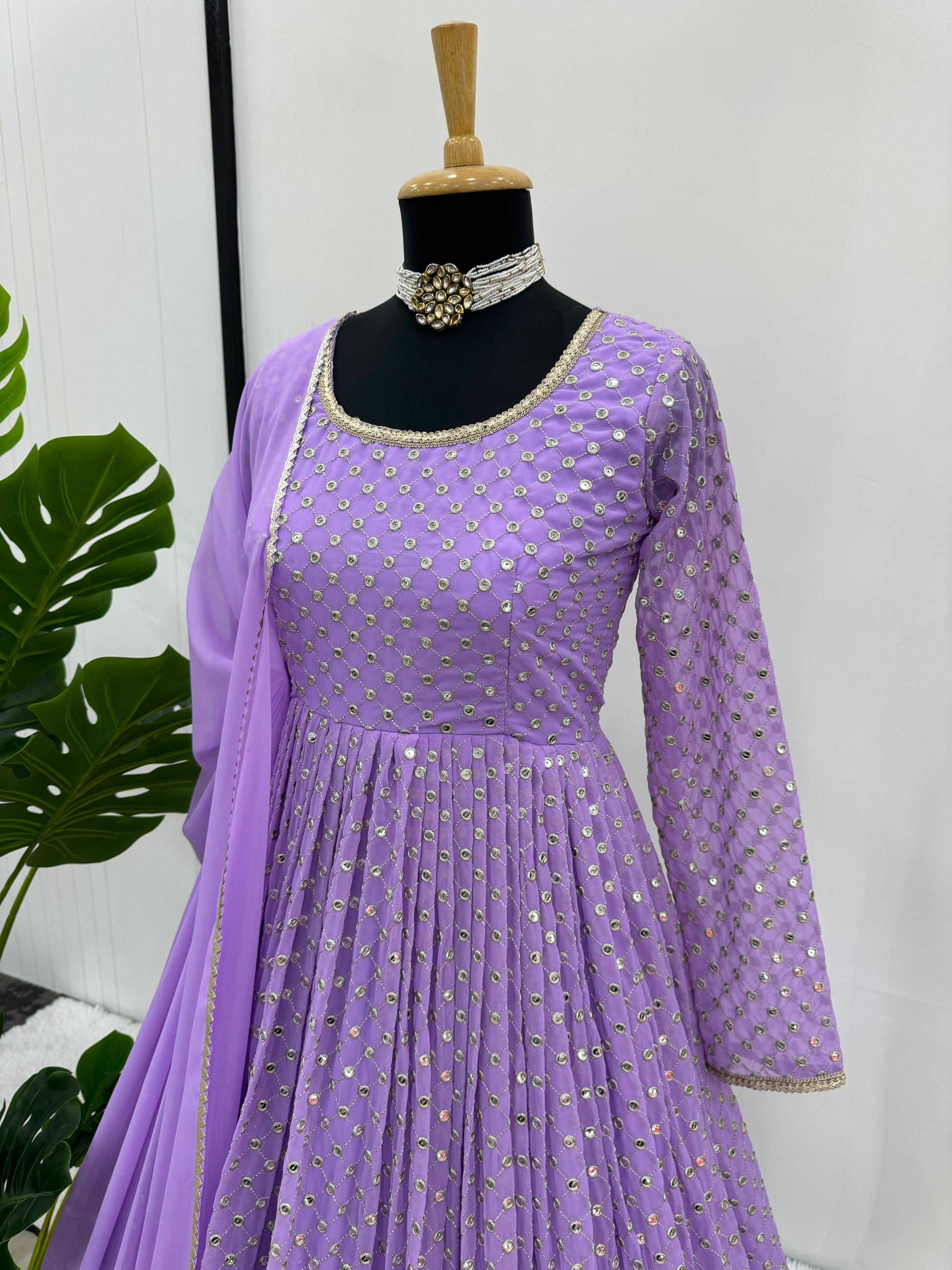 Gorgeous Lavender Color Heavy Georgette And Thread With 9mm Sequence Work Designer Gown