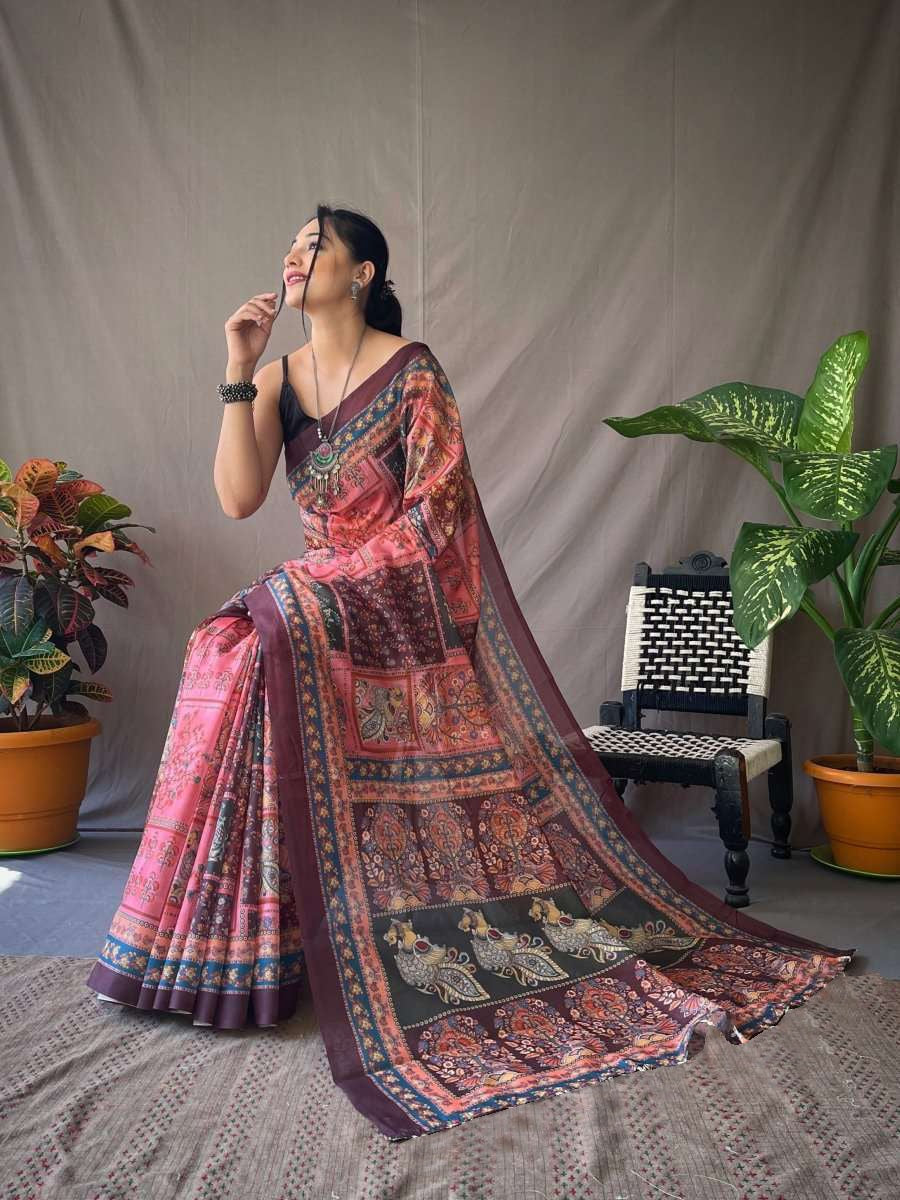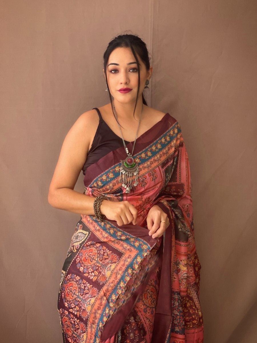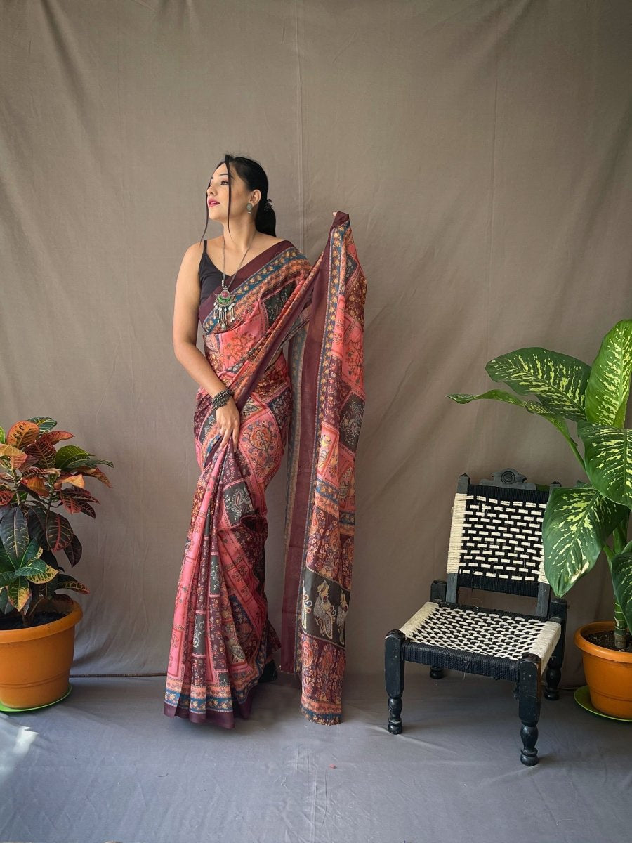 Gorgeous Maroon Color Color Pure Cotton Lilen With Digital Printed Designer Saree