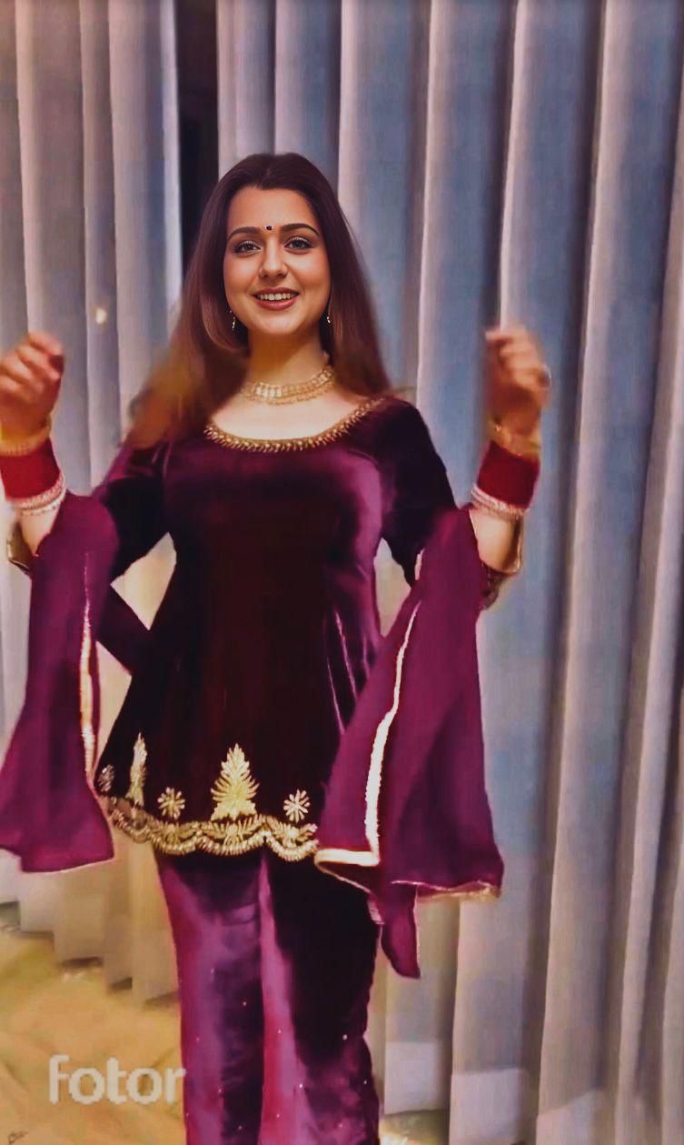 Gorgeous Wine Color Heavy Viscose Velvet And Embroidery Work Designer Palazzo Suit