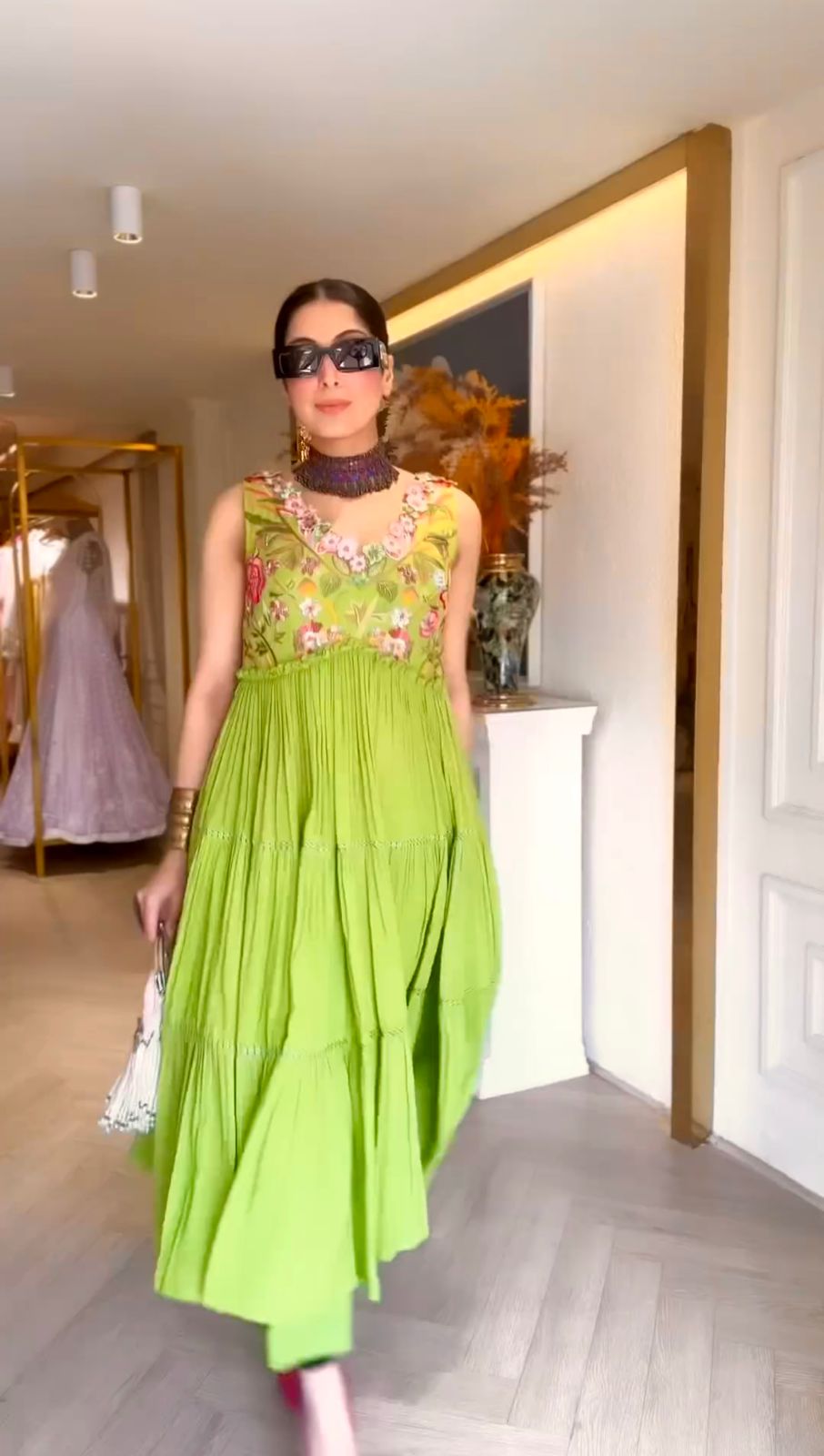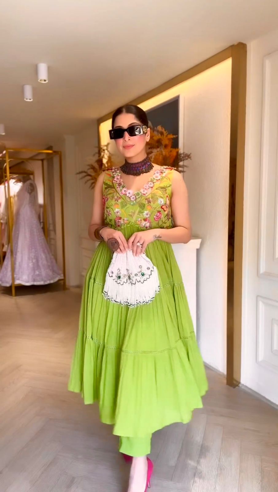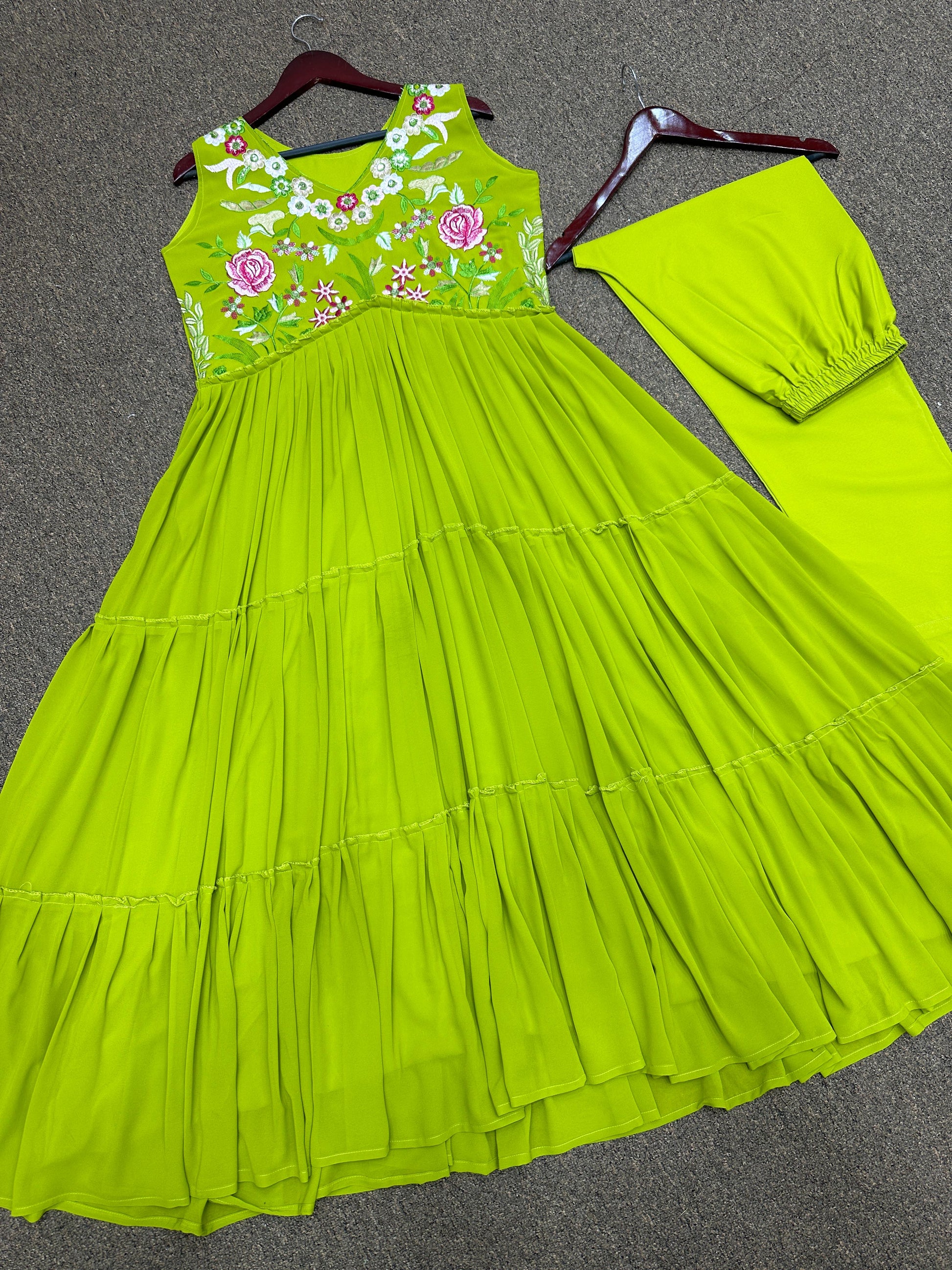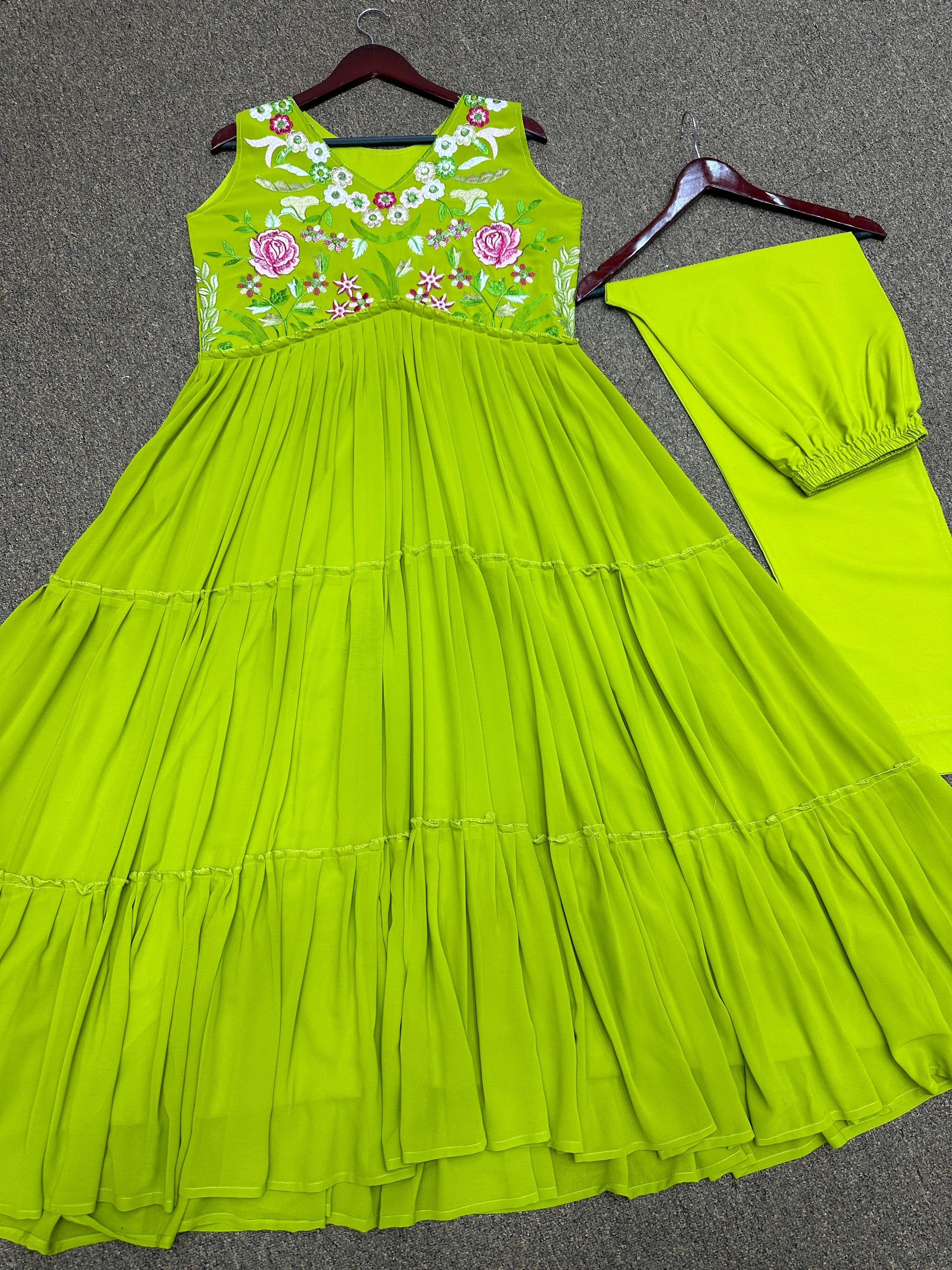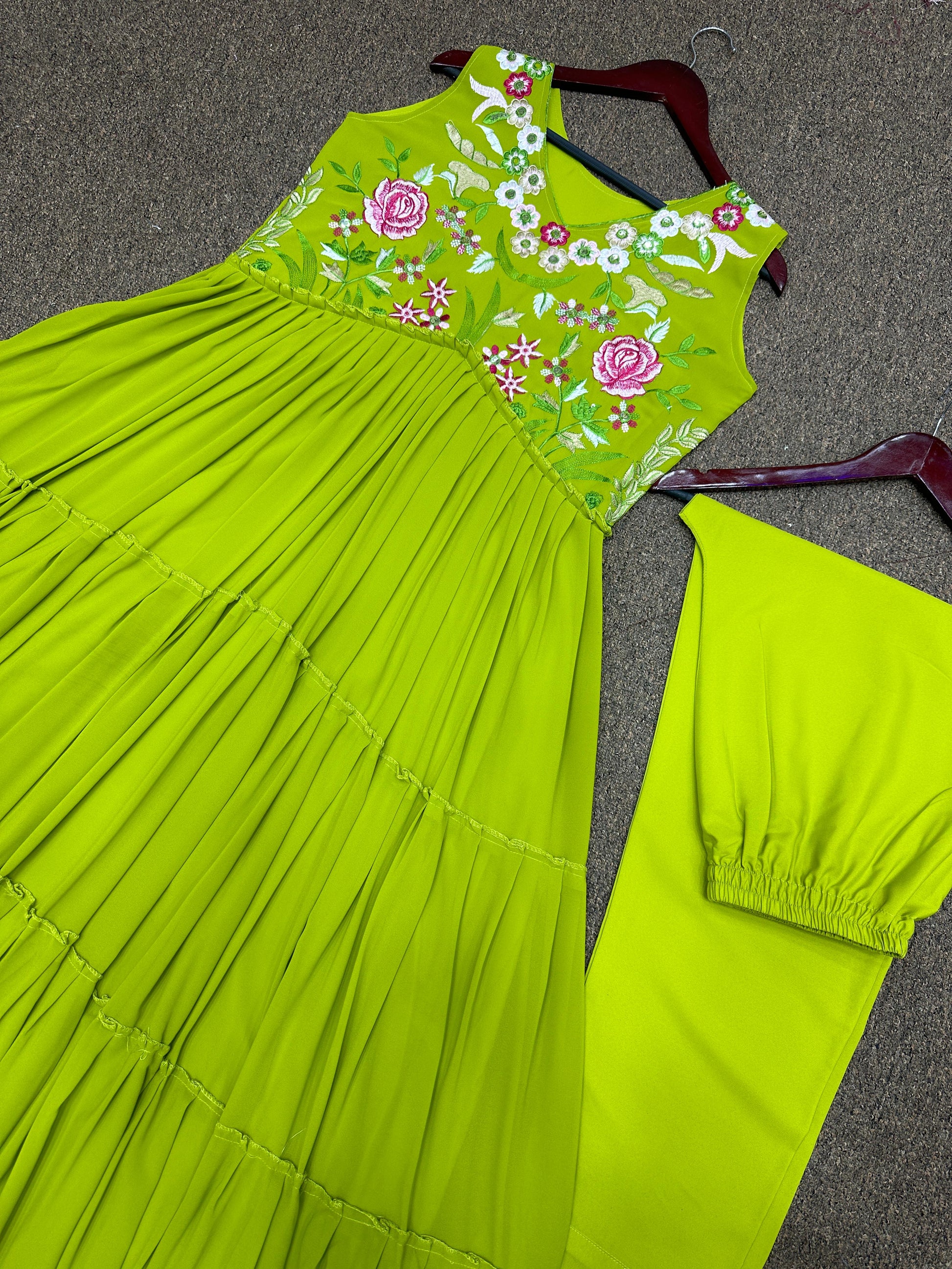 Graceful Parrot Green Color Ruffle Anarkali Suit