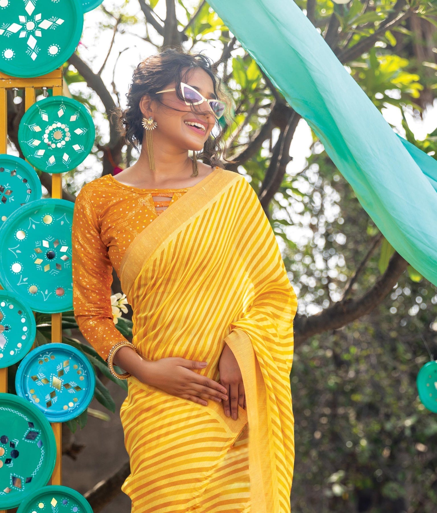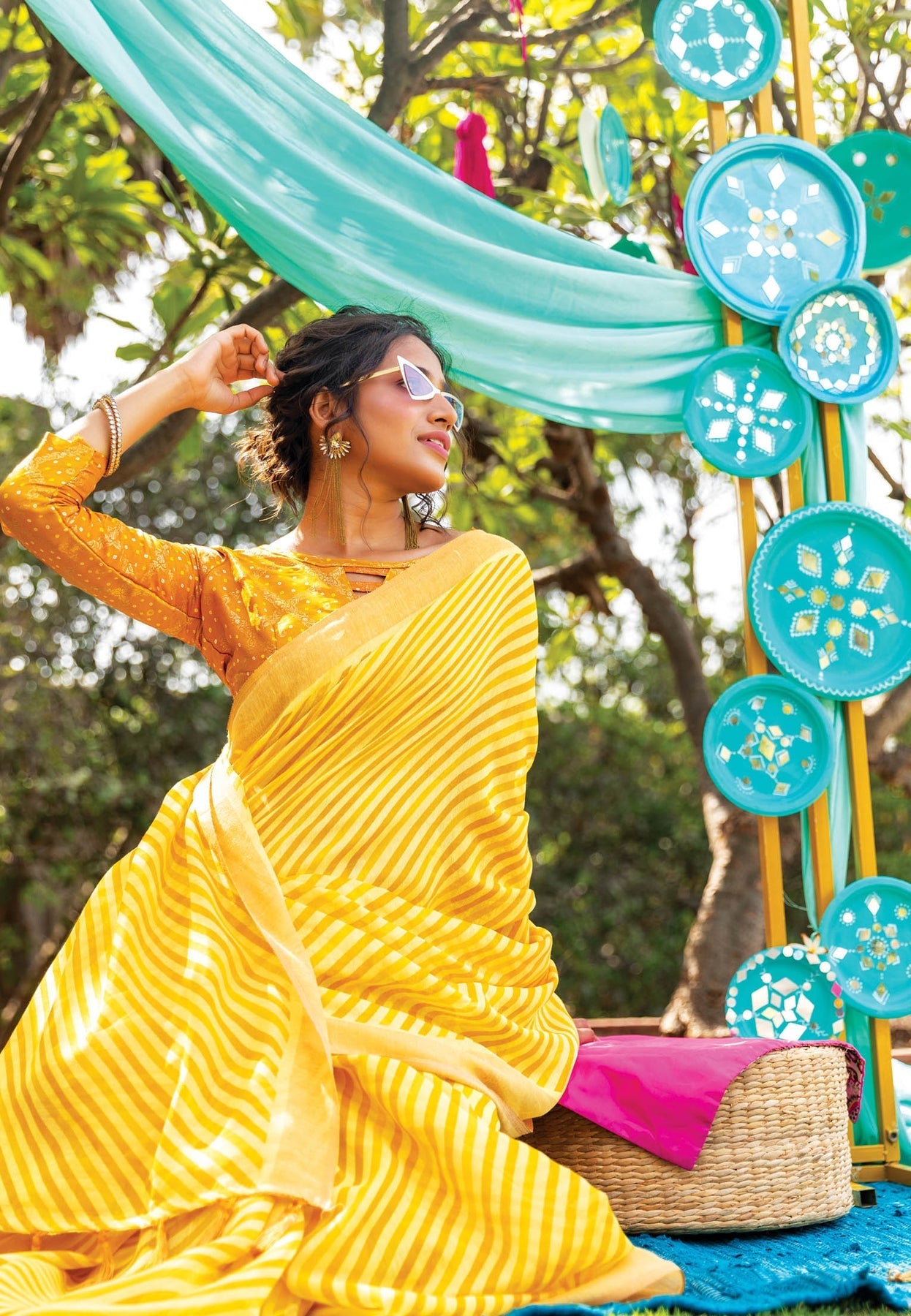 Haldi Special Yellow Color Pure Cotton Lilen With Digital Printed Designer Saree