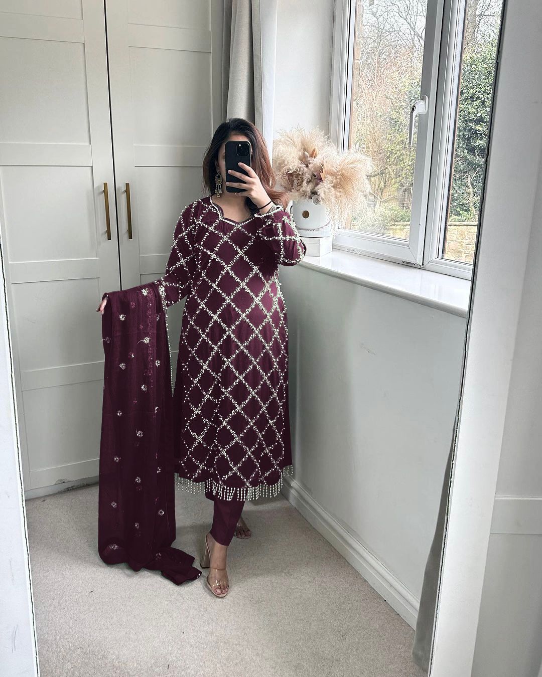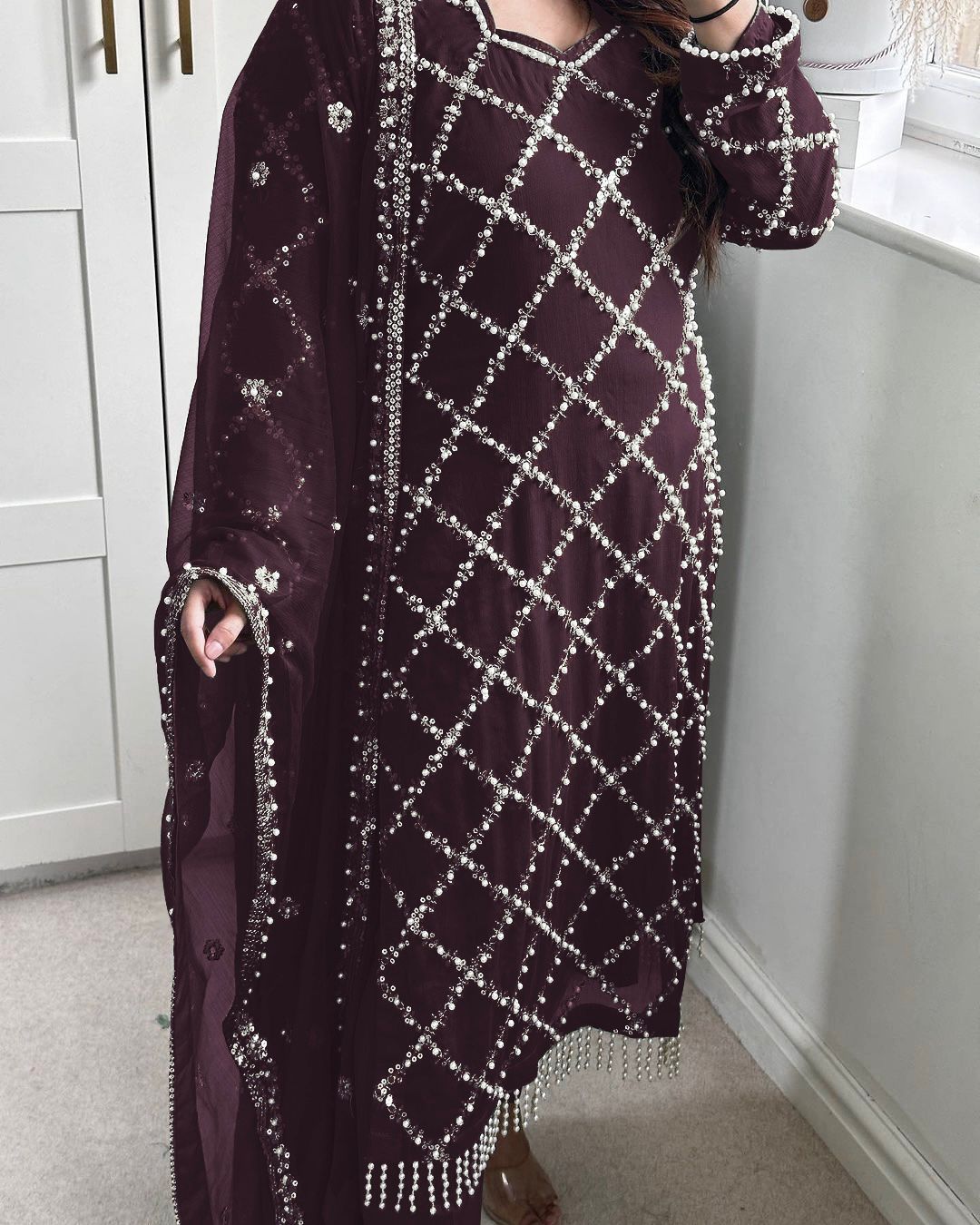 | Top Work | Real Hand Work Sequence Embroidery Work |