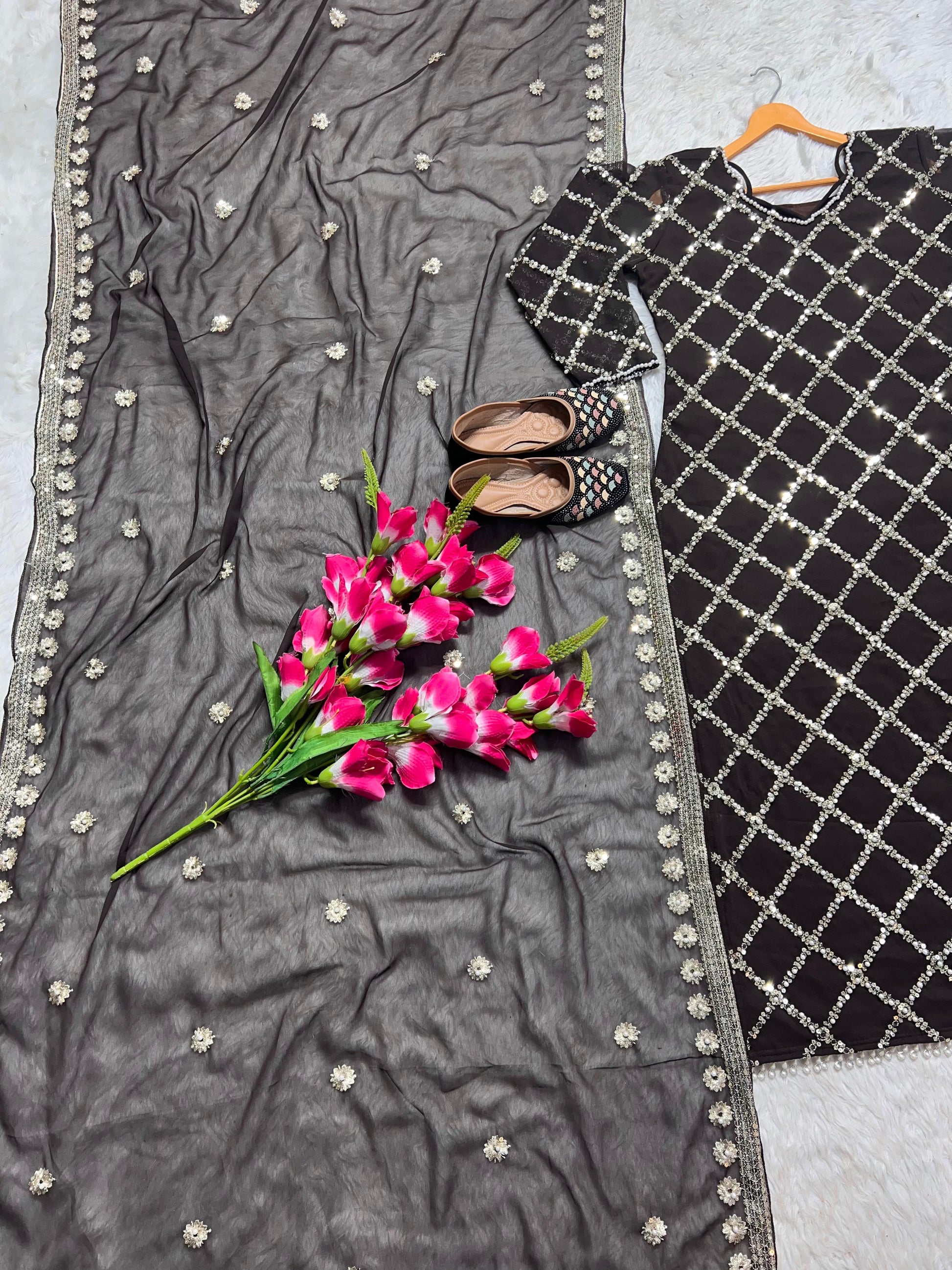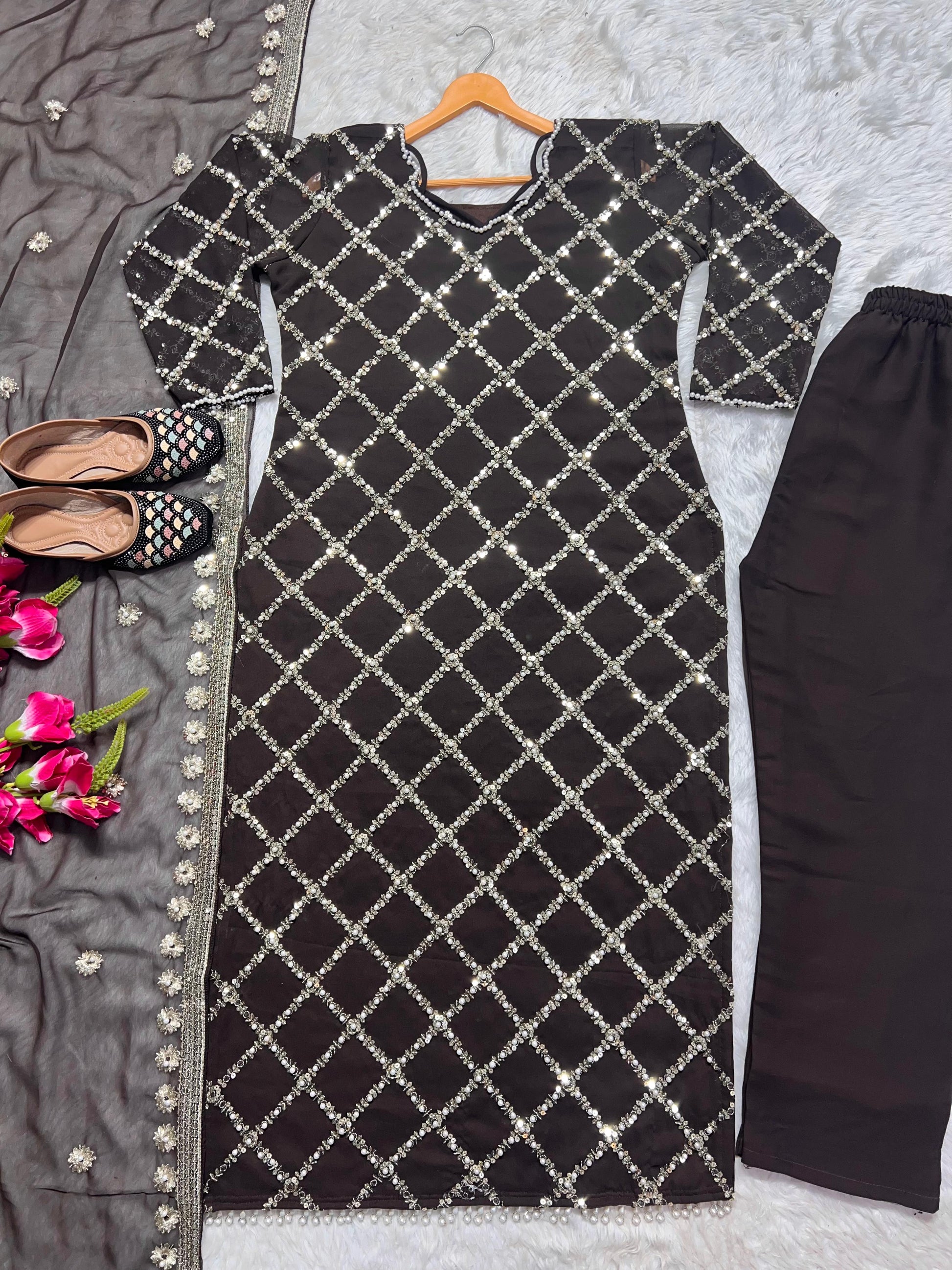 | Work | Sequence Embroidered And Real Hand Work Dupatta |