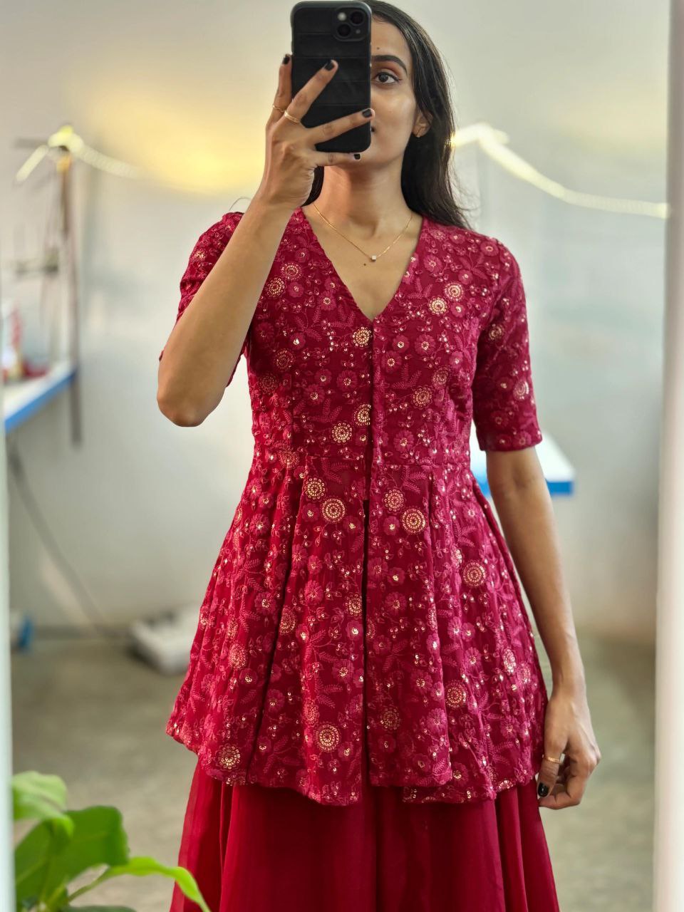 Top - Blazer Style Embroidery Sequins Work Top Of Georgette Fully Stitched