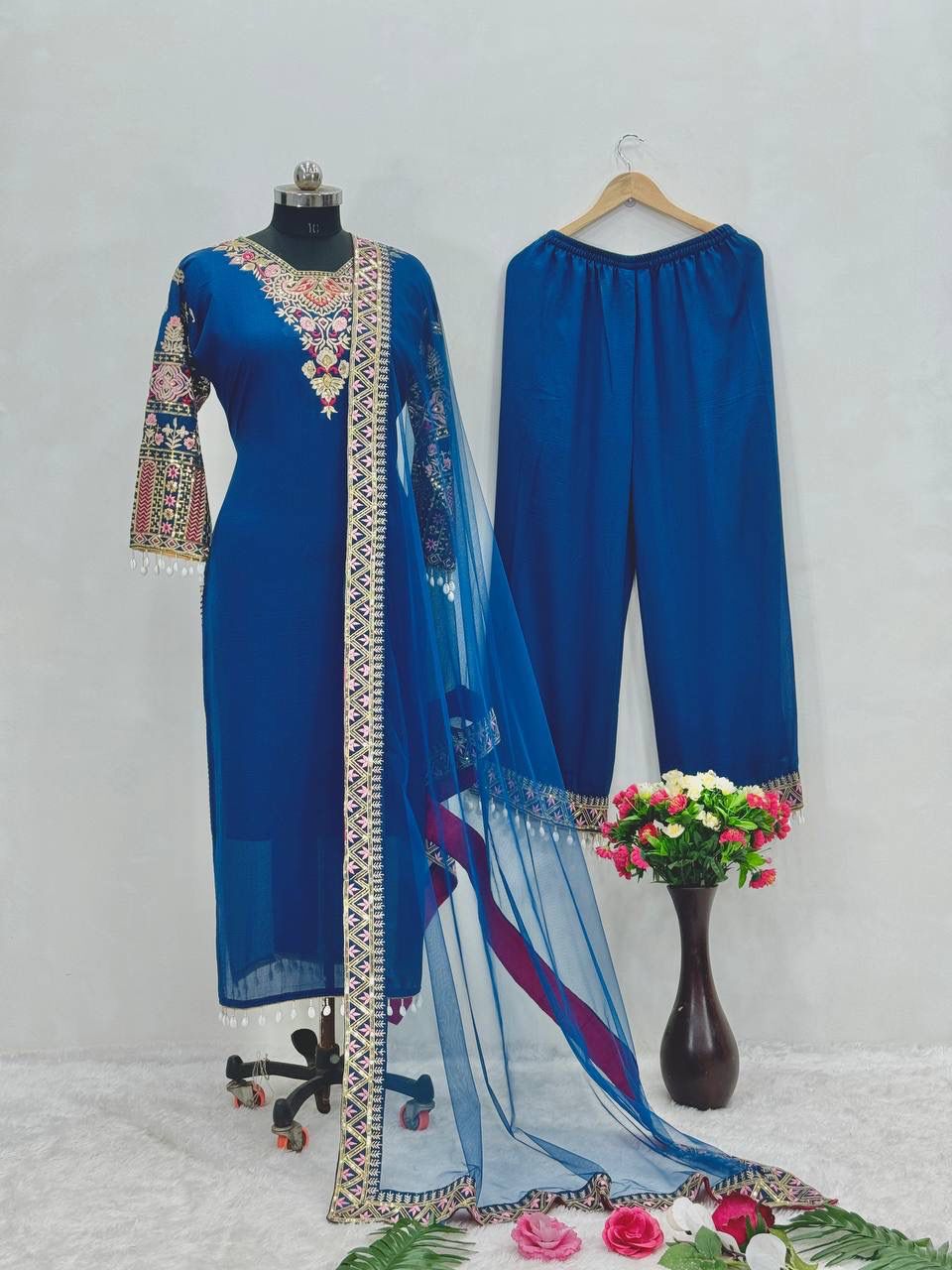 Luxuriant Blue Color Heavy Vichitra Silk With Embroidered Sequence Work Salwar Suit
