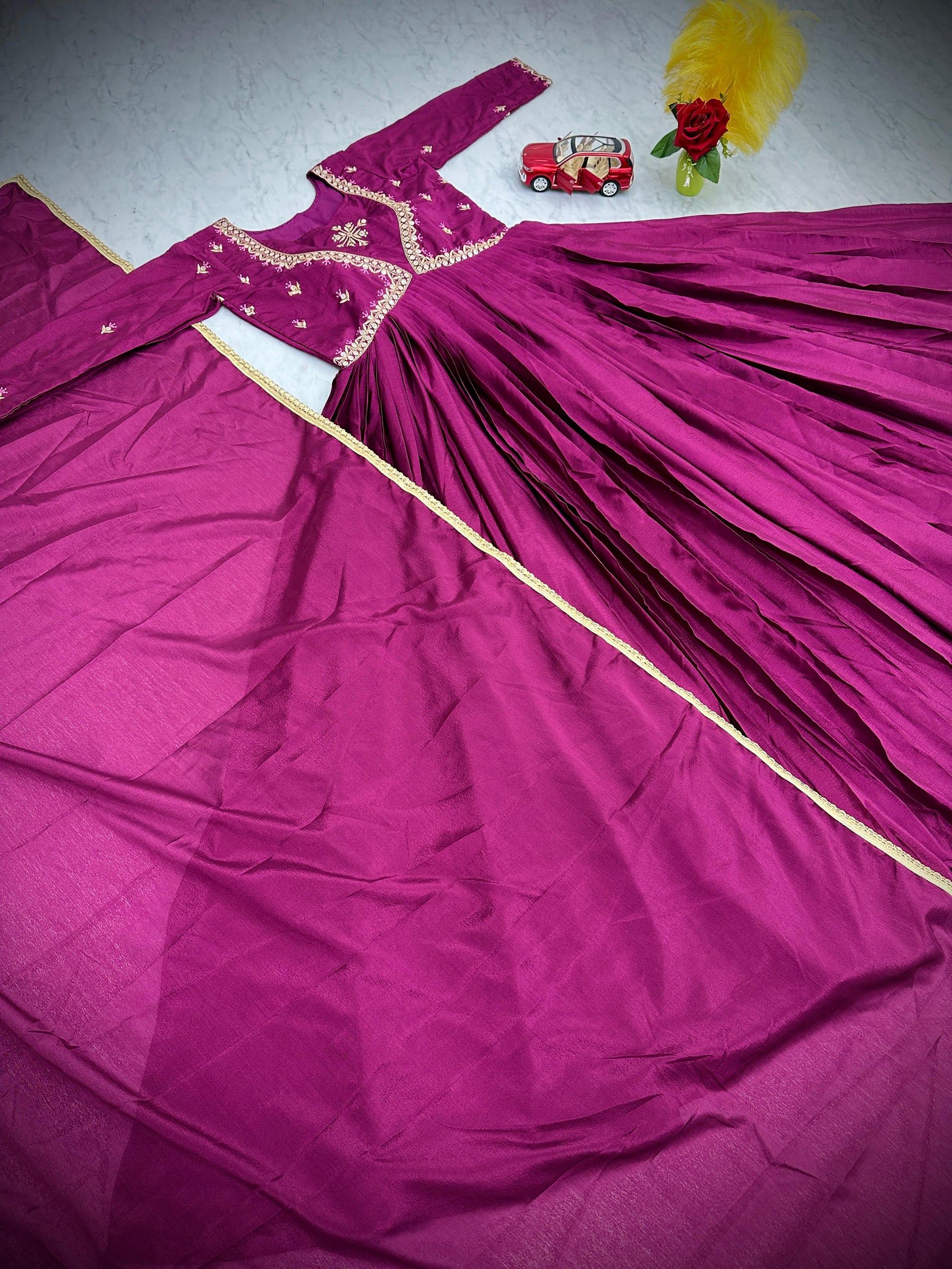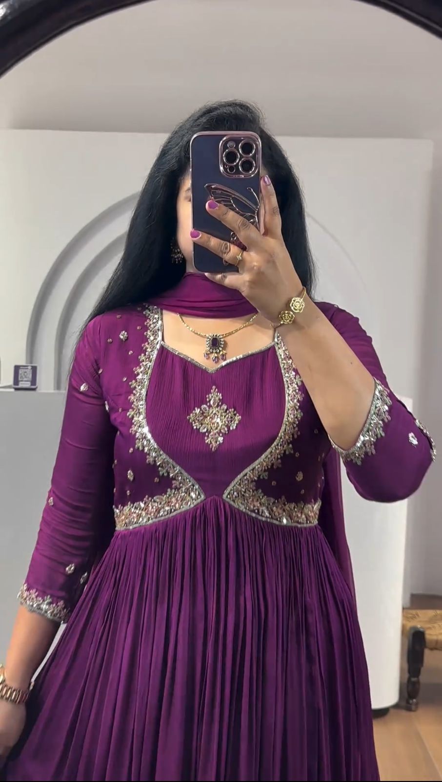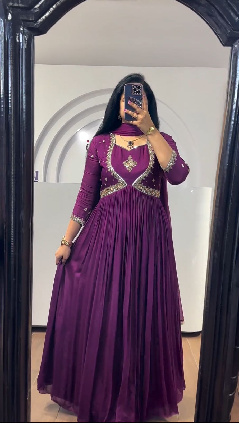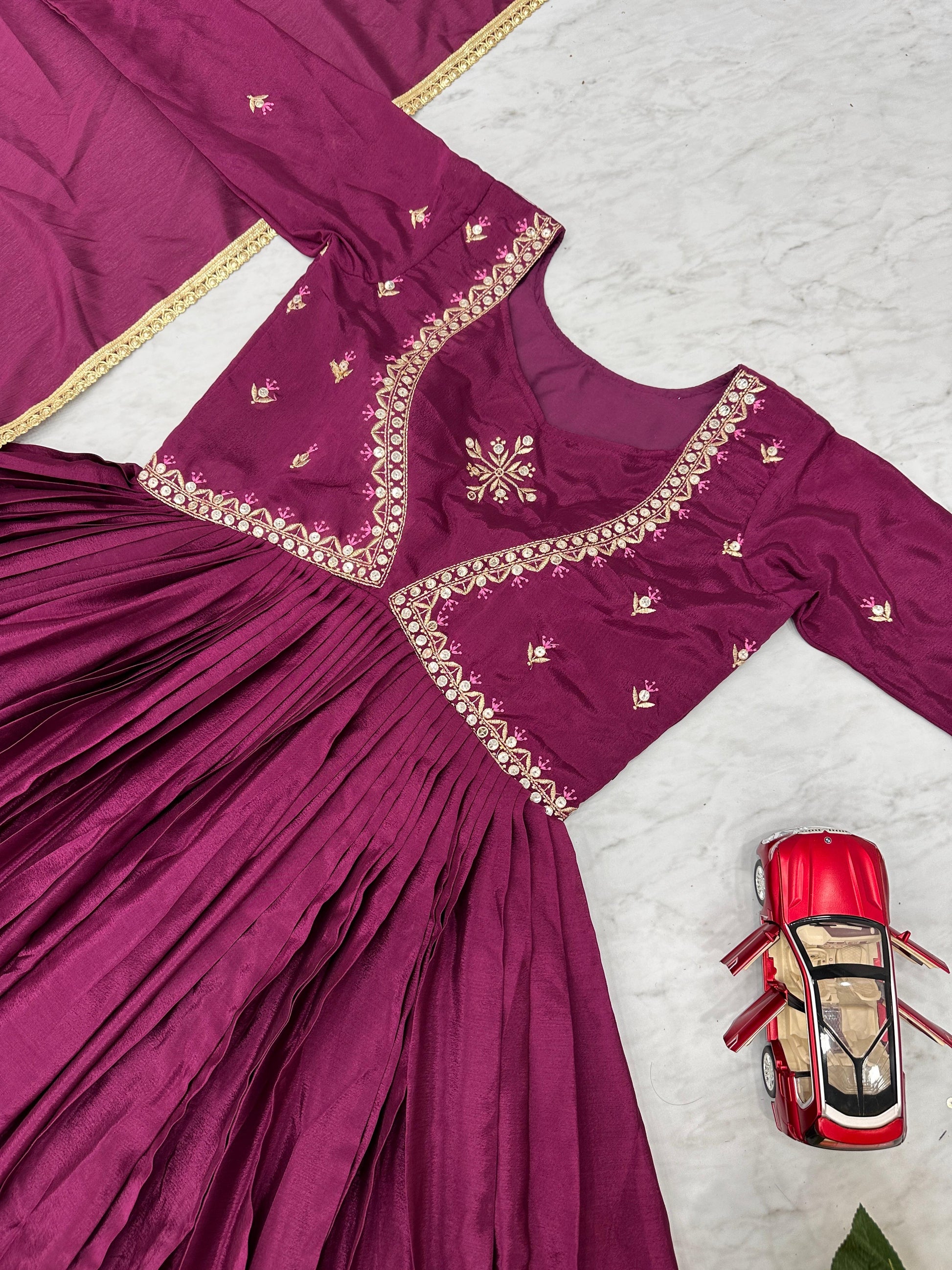 Luxuriant Designer Wine Color Thread with Sequence Anarkali Gown