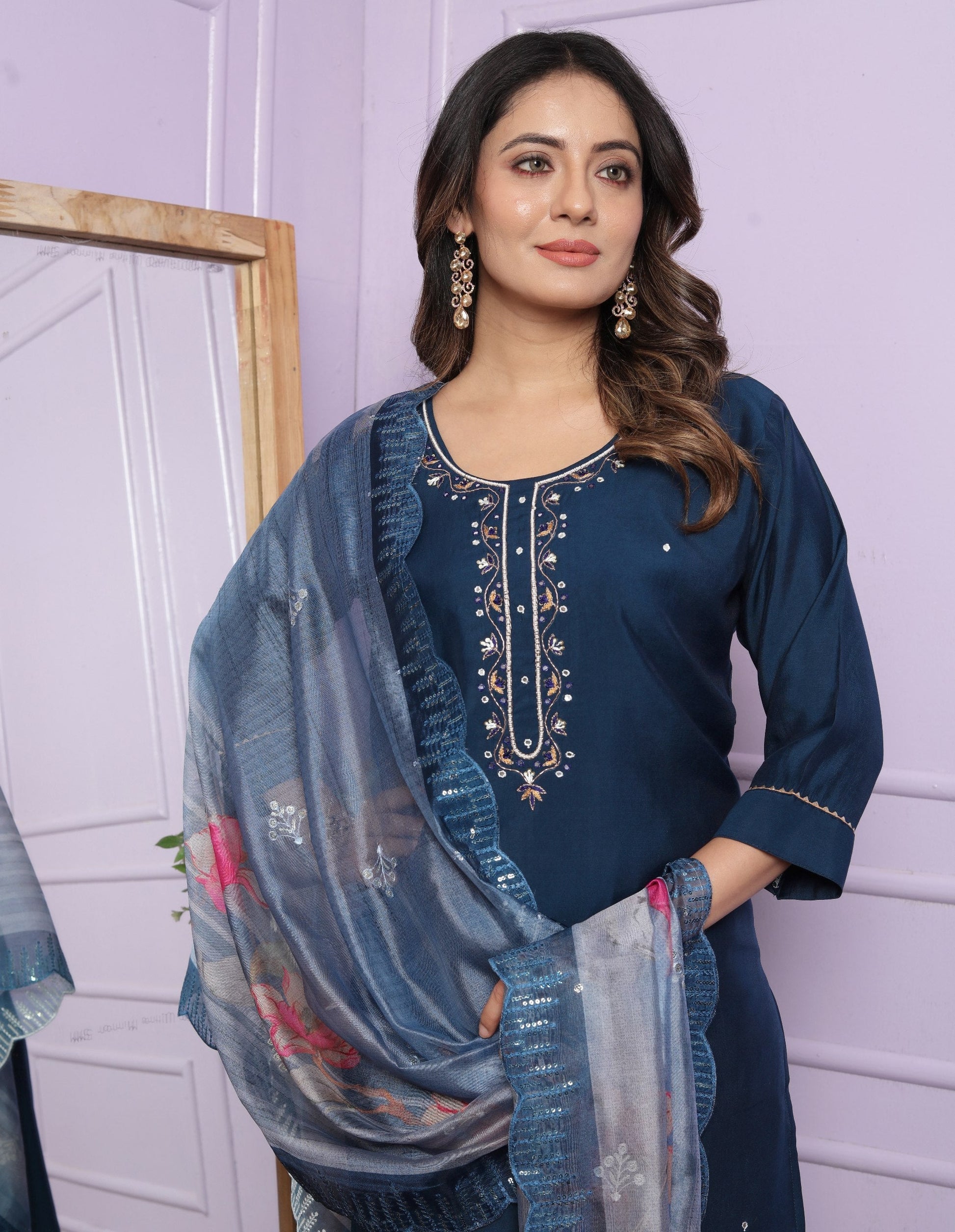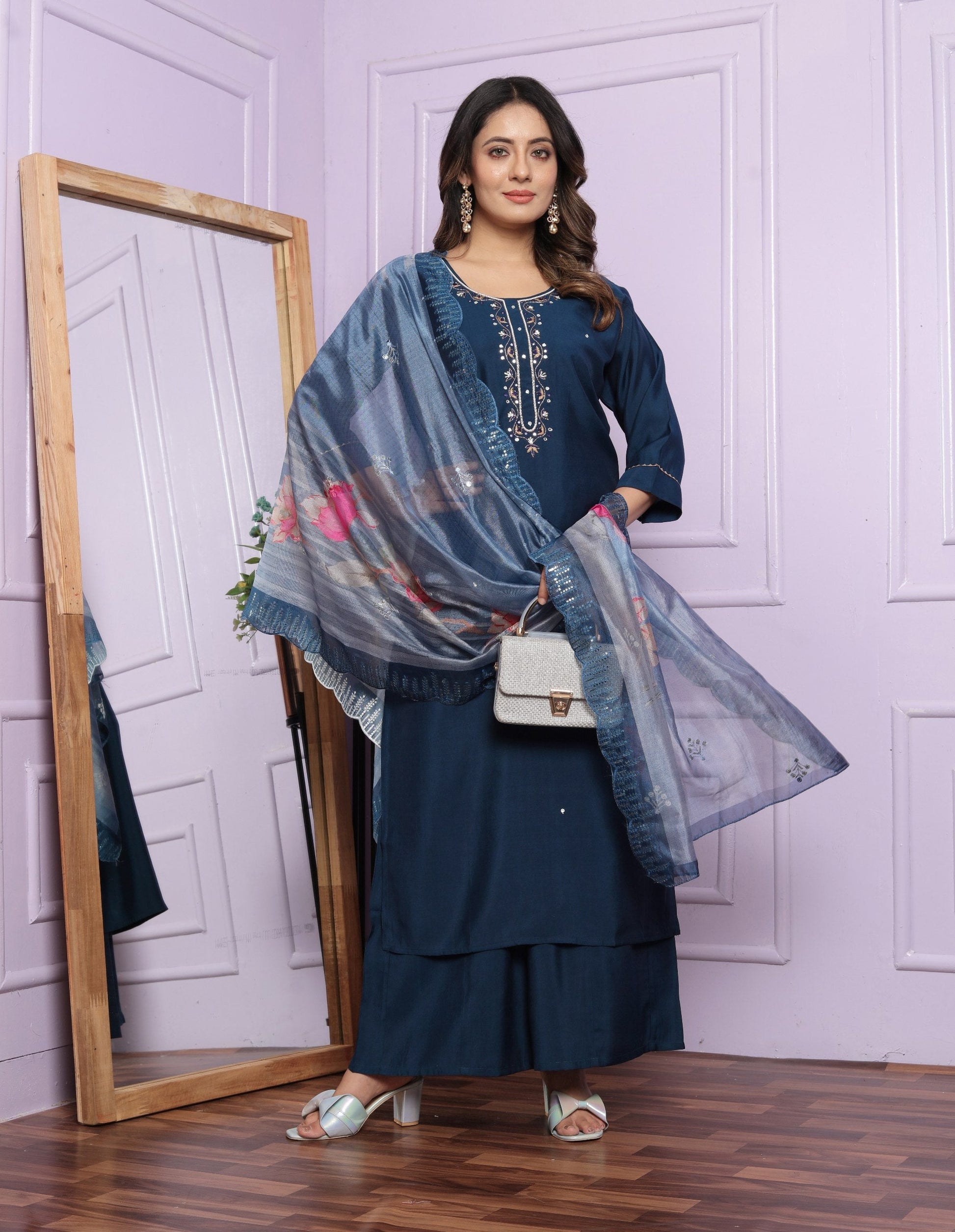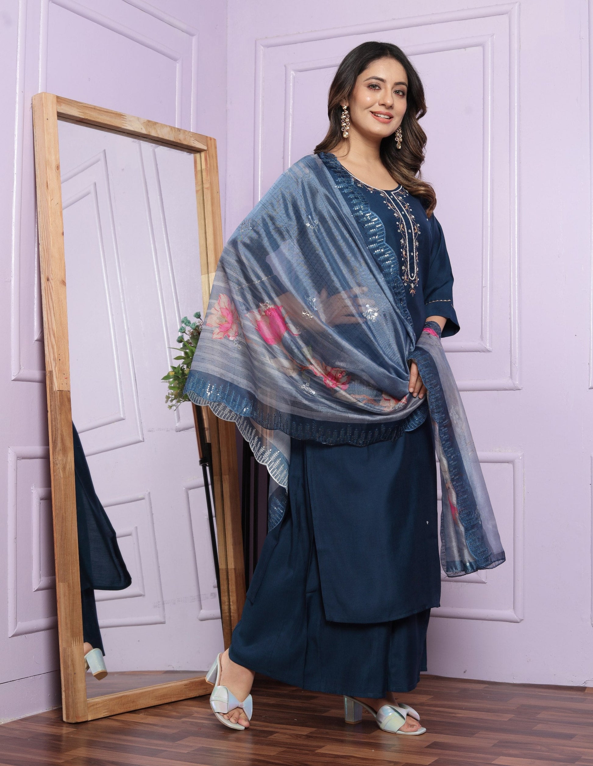 Luxuriant Hand Work Navy Blue Palazzo Suit