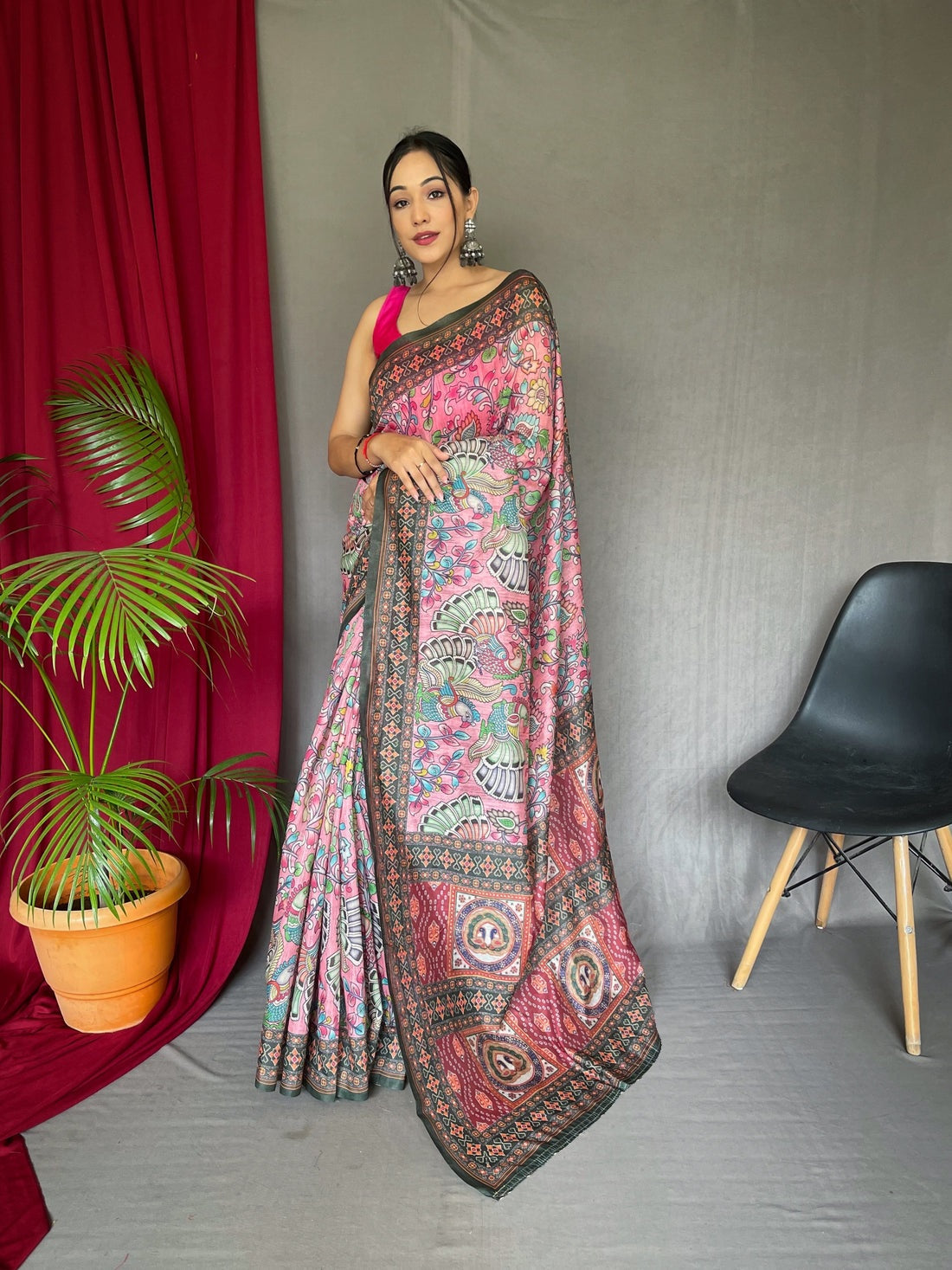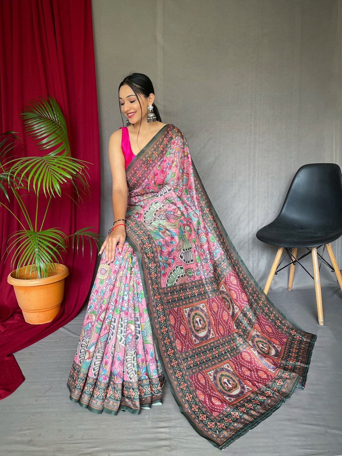 Design :- Zari Patta Pure Cotton Lilen Saree With Digital Print With Digital Blouse Pieces