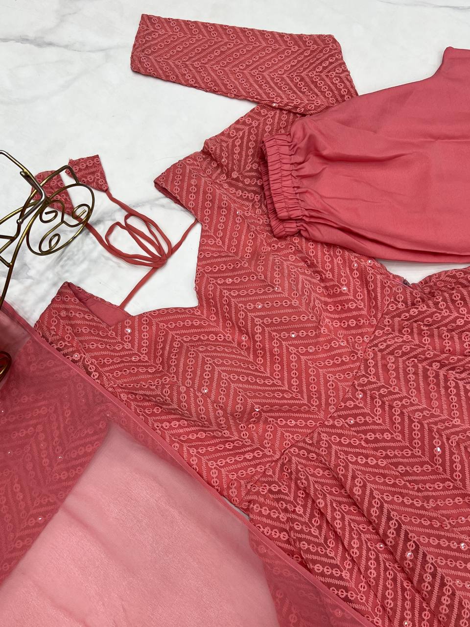 Launching This Timeless And Classic Lucknow Georgette Fabric Anarkali Suit Set For The Upcoming Festivities And Wedding Season