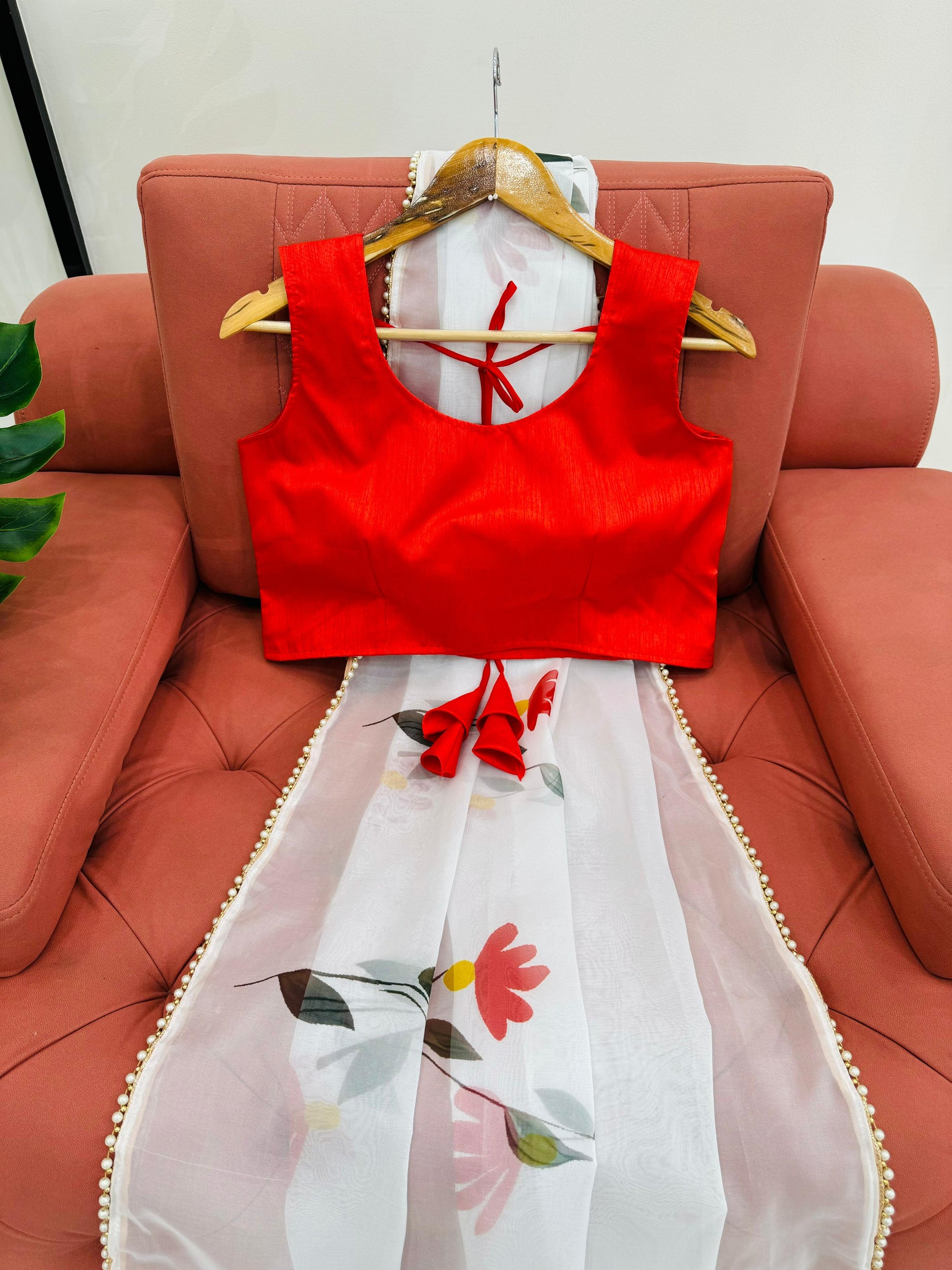 Looking Some One For This Same Colour Beautiful Designer Saree On Tibby Silk Febric With Digital Print With Pearl Wrok Fancy Lace And Blouse On Japan Satin Febric.