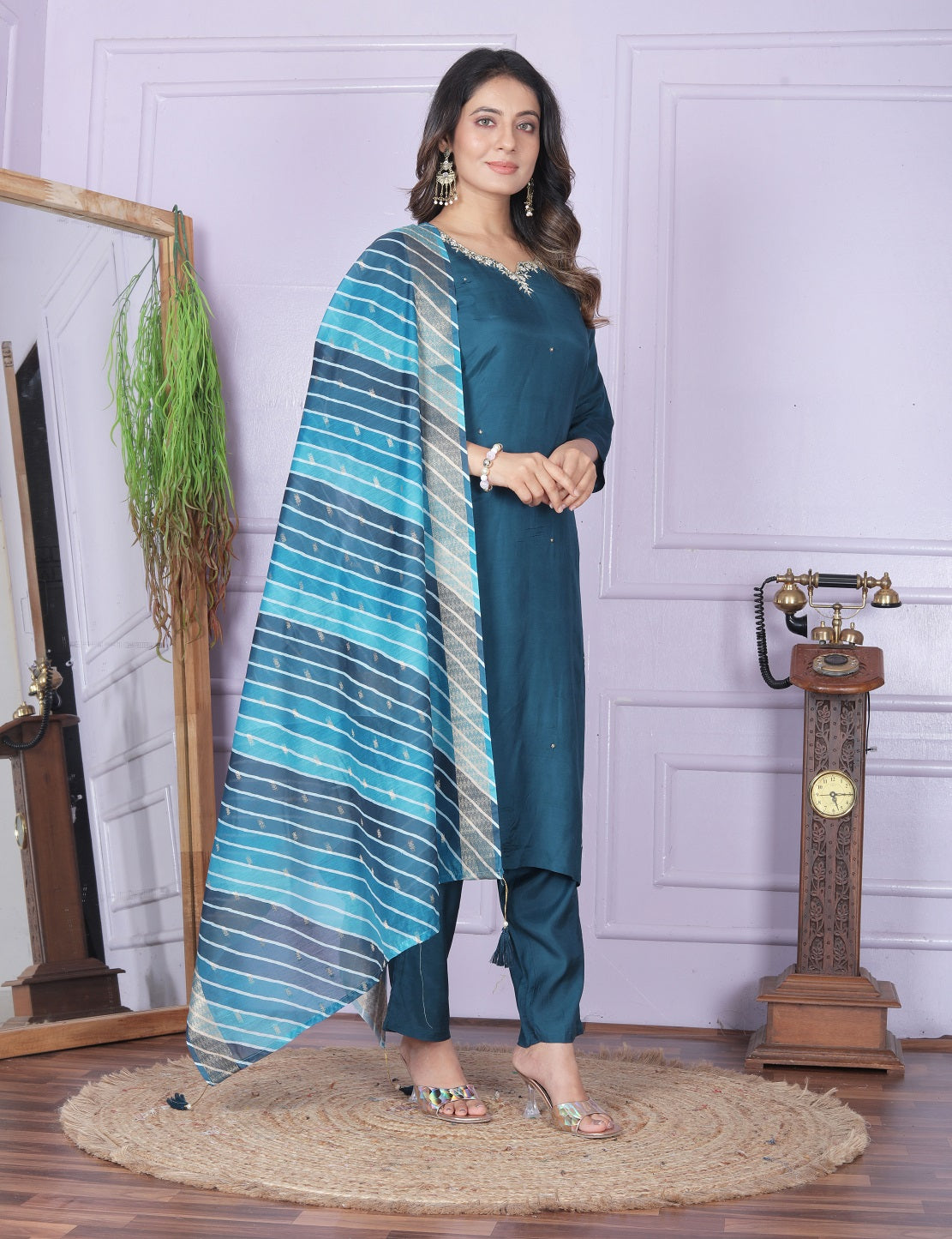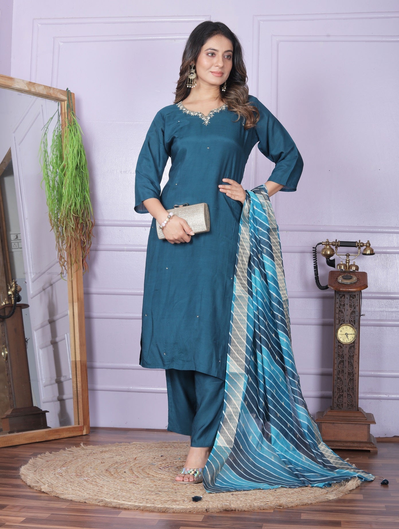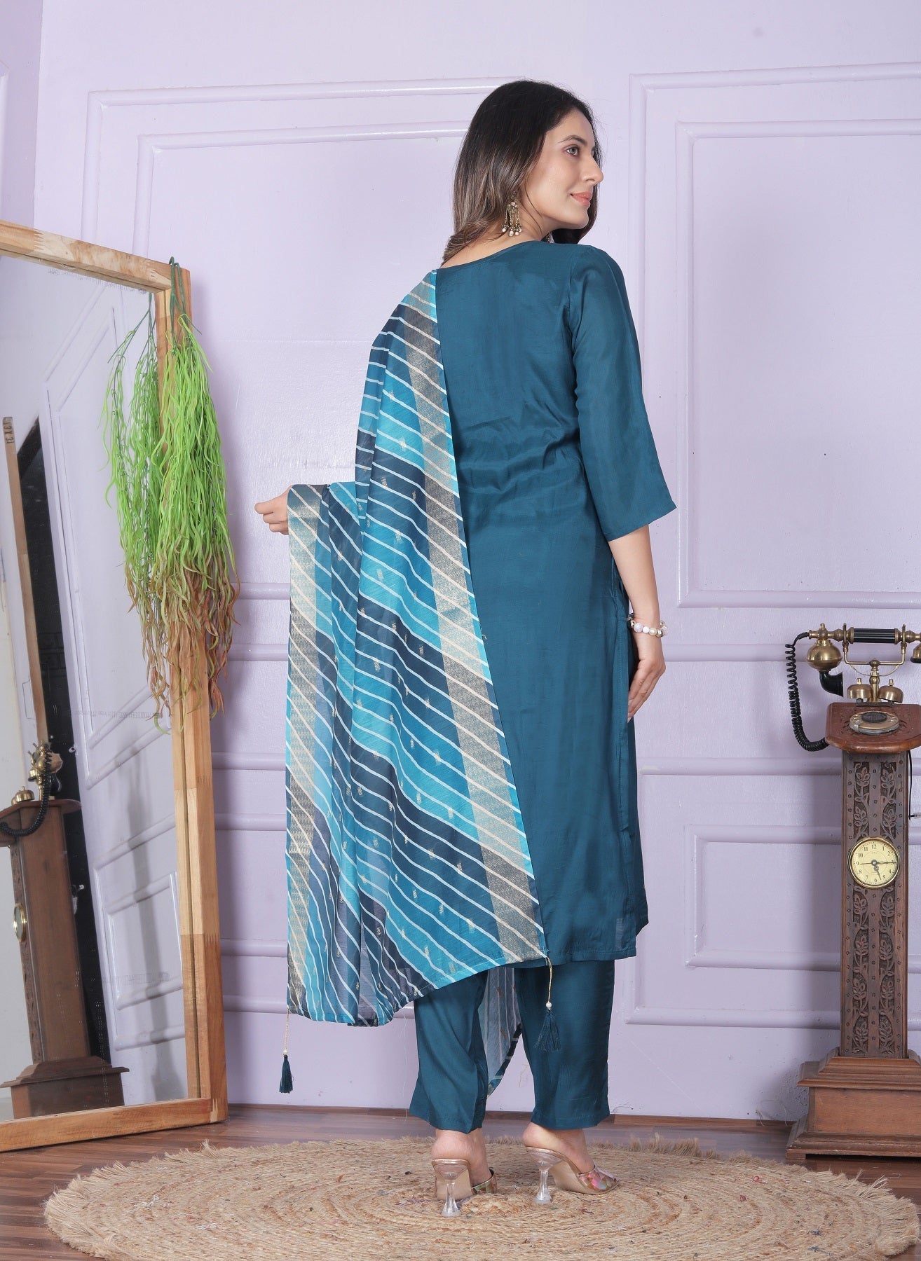 Luxury Teal Blue Salwar Suit With Leheriya Dupatta