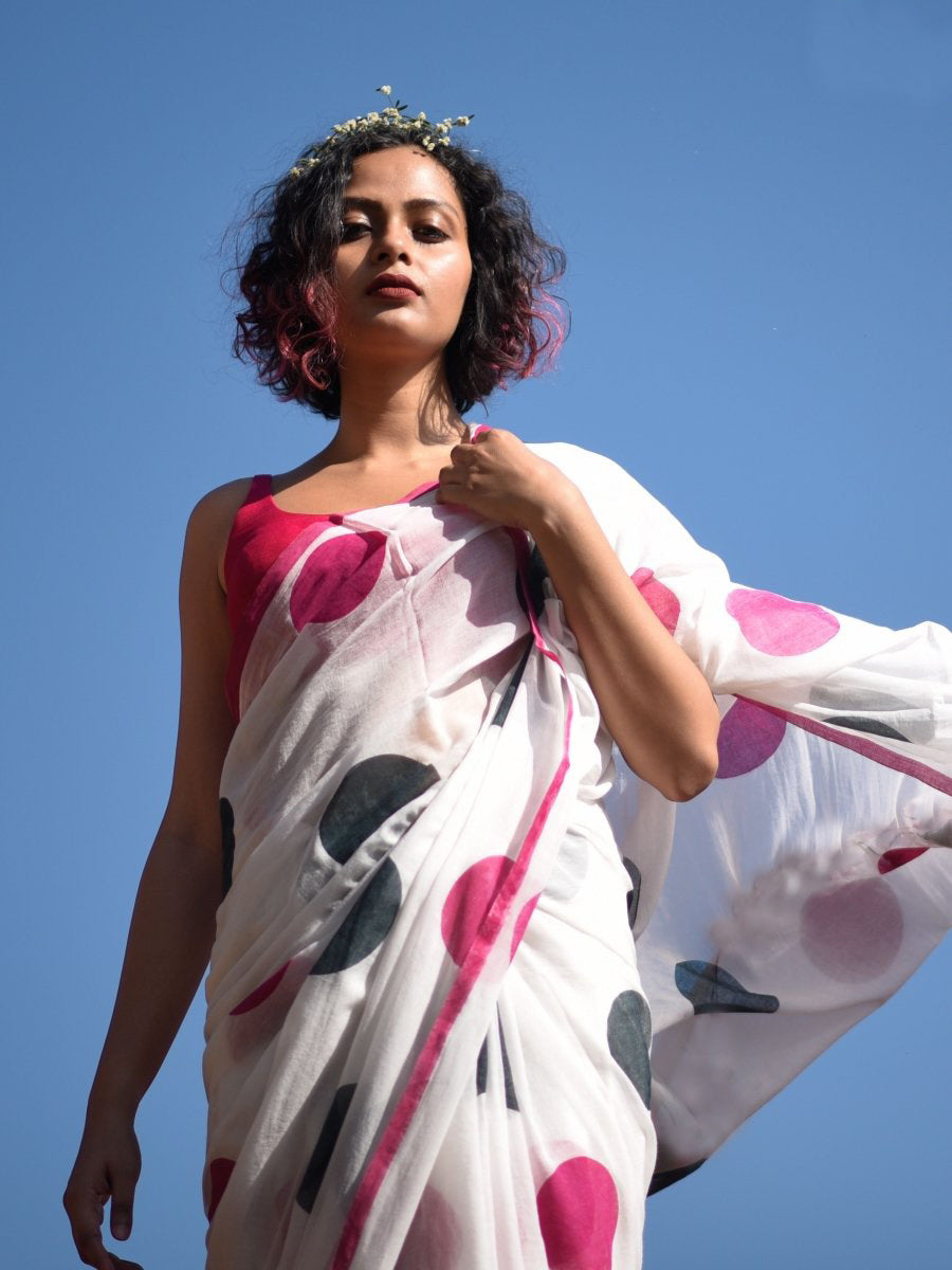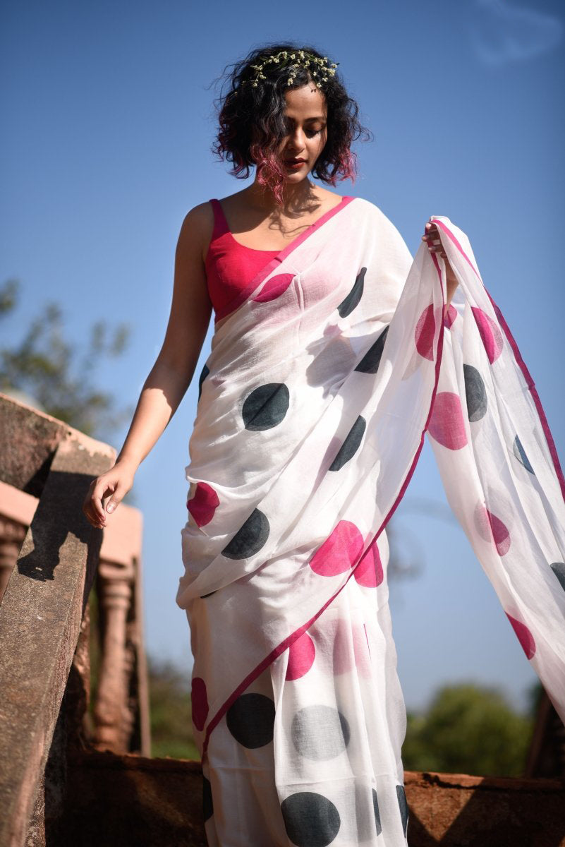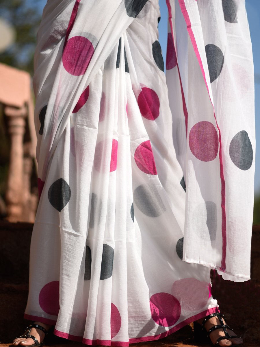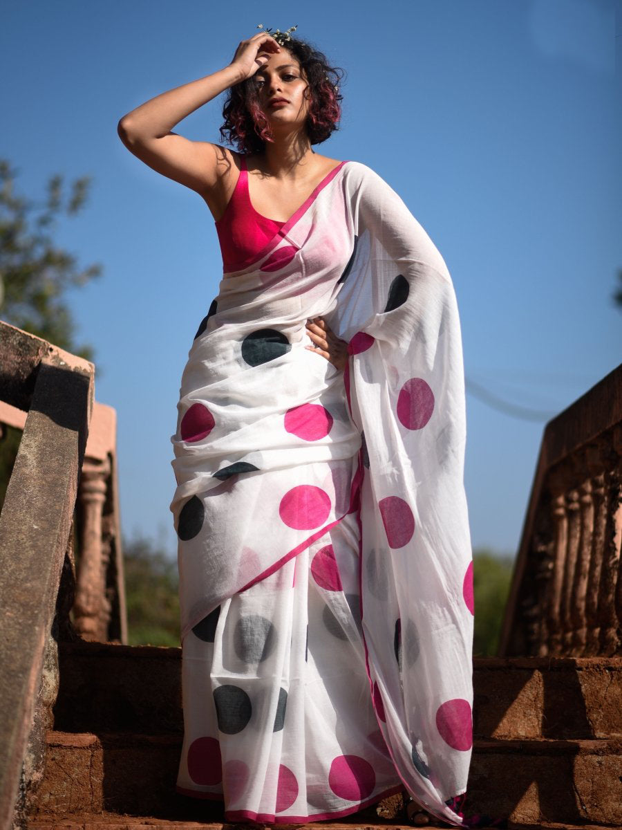 Marvelous White Color Pure Cotton Lilen With Digital Printed Designer Saree