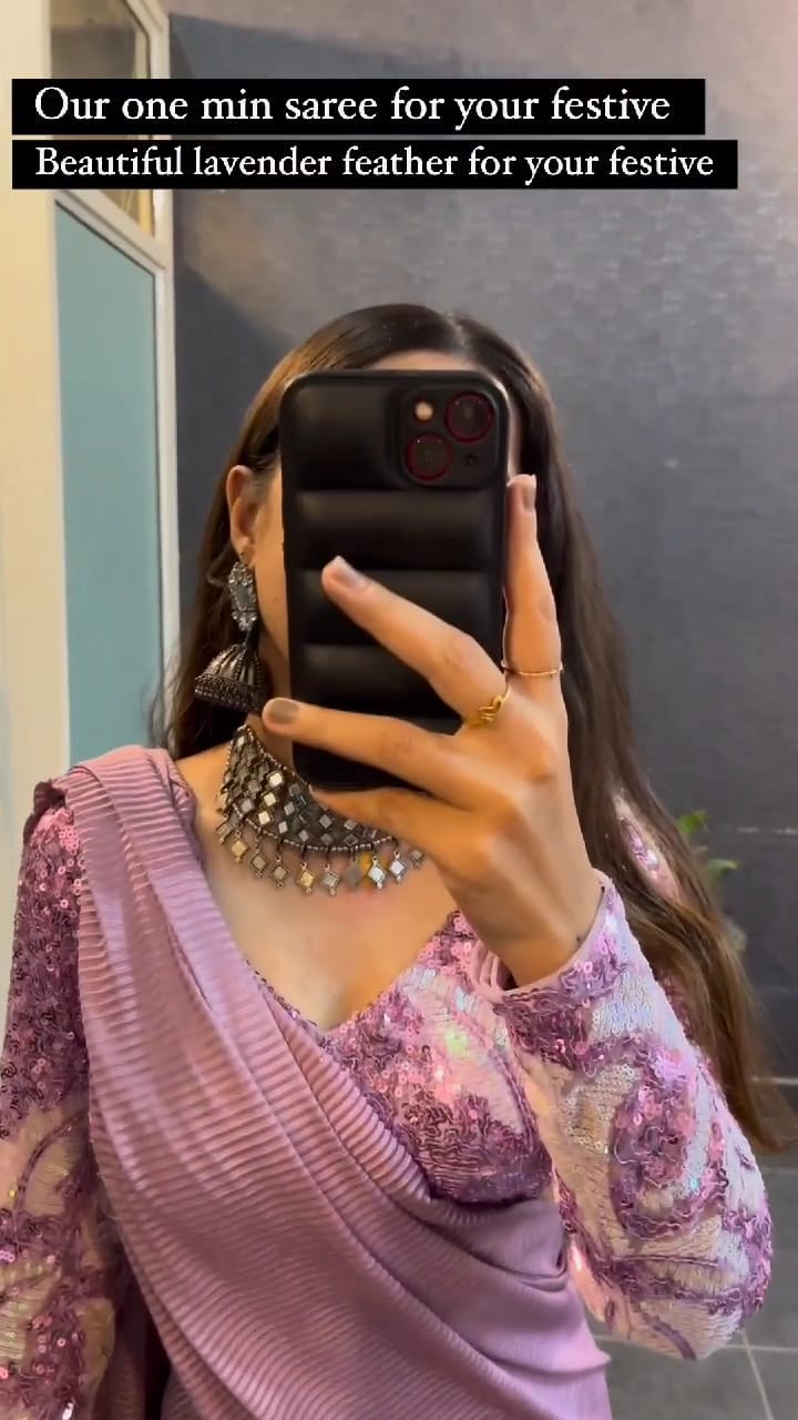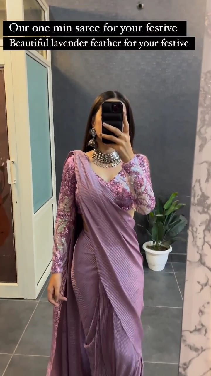 Mesmerizing Lavender Color Chinon Silk And Heavy Crush Work Ready To Wear Saree