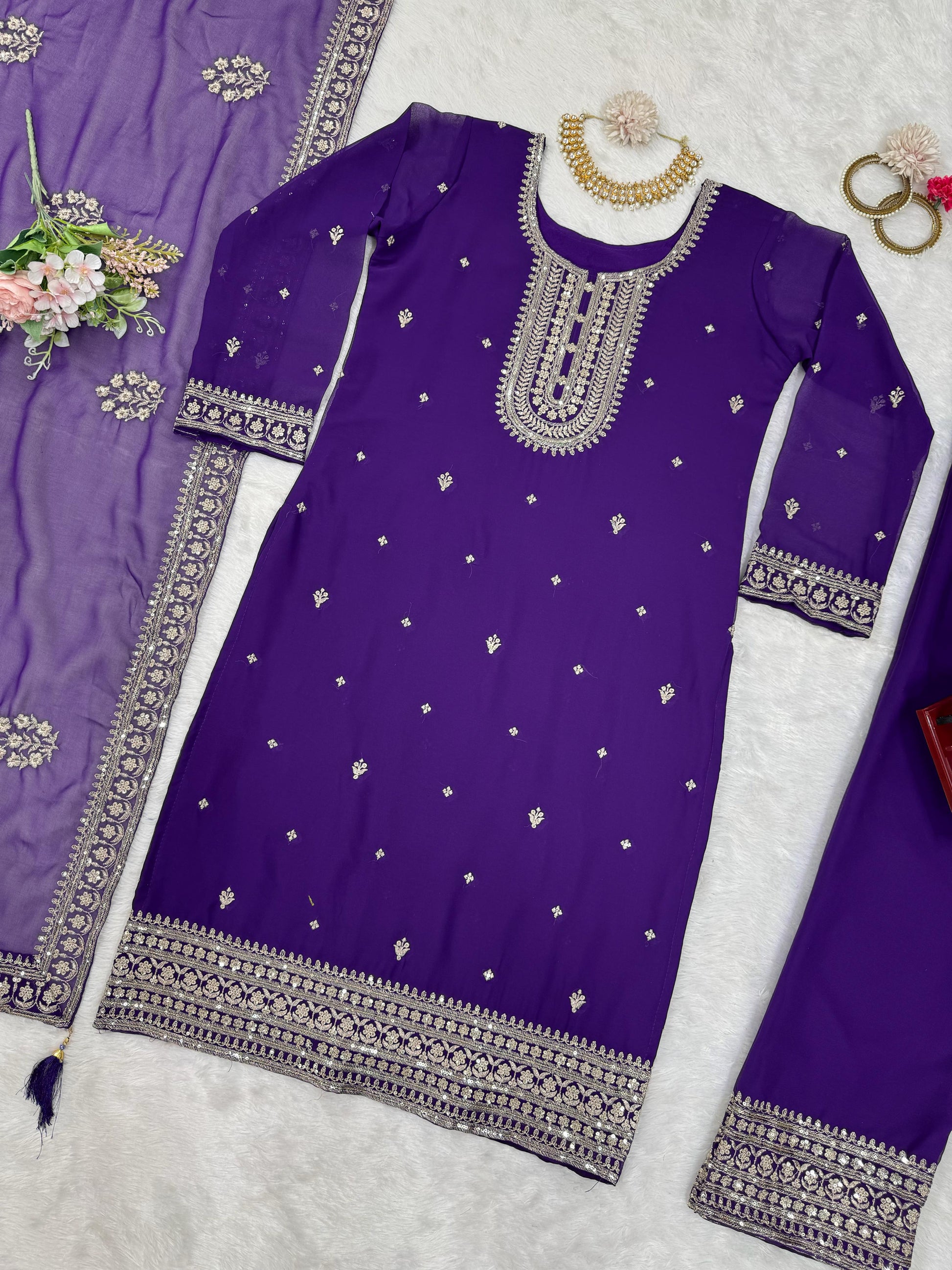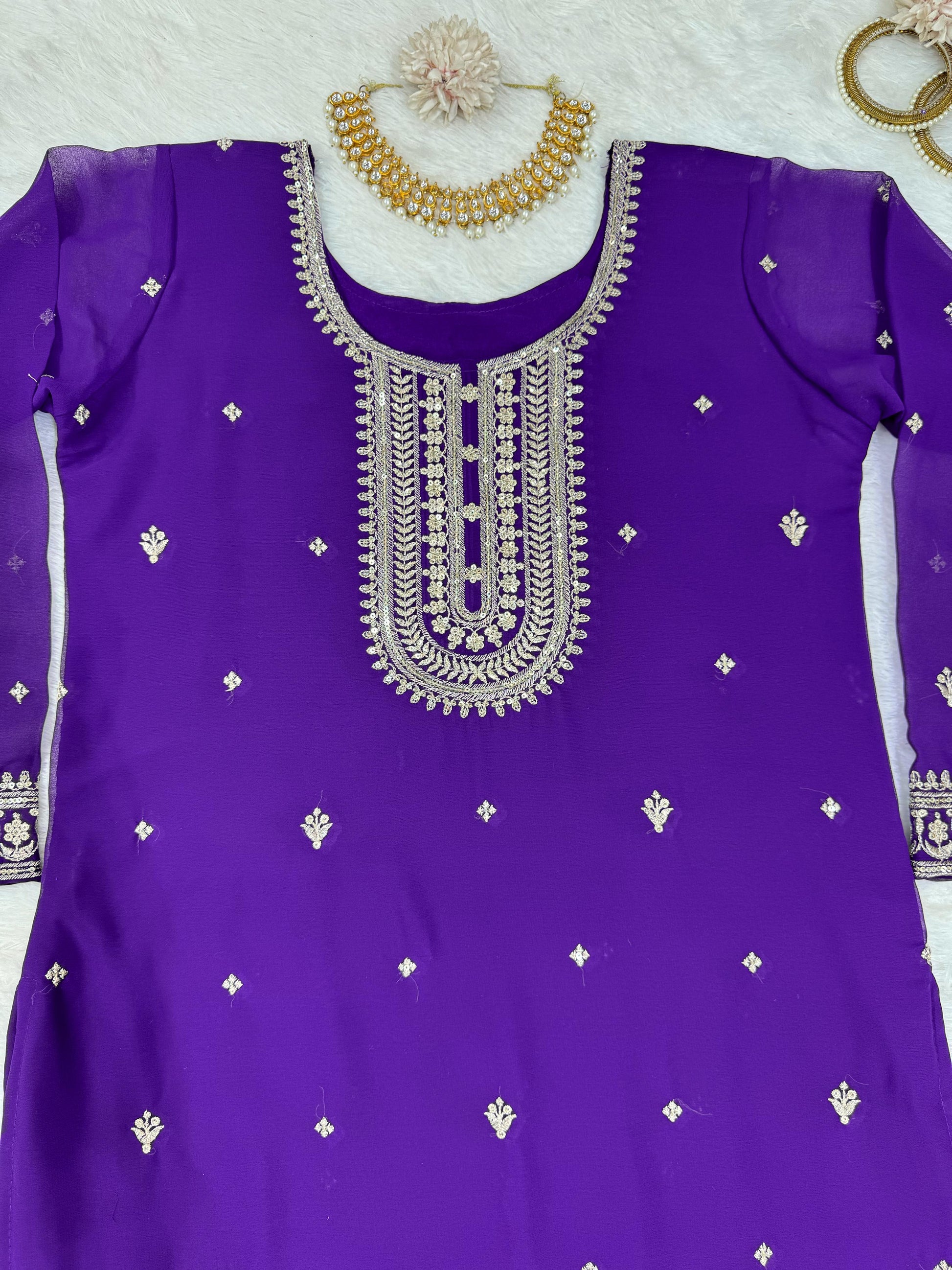 Mesmerizing Purple Color Faux Georgette And Thread With Sequence Designer Salwar Suit