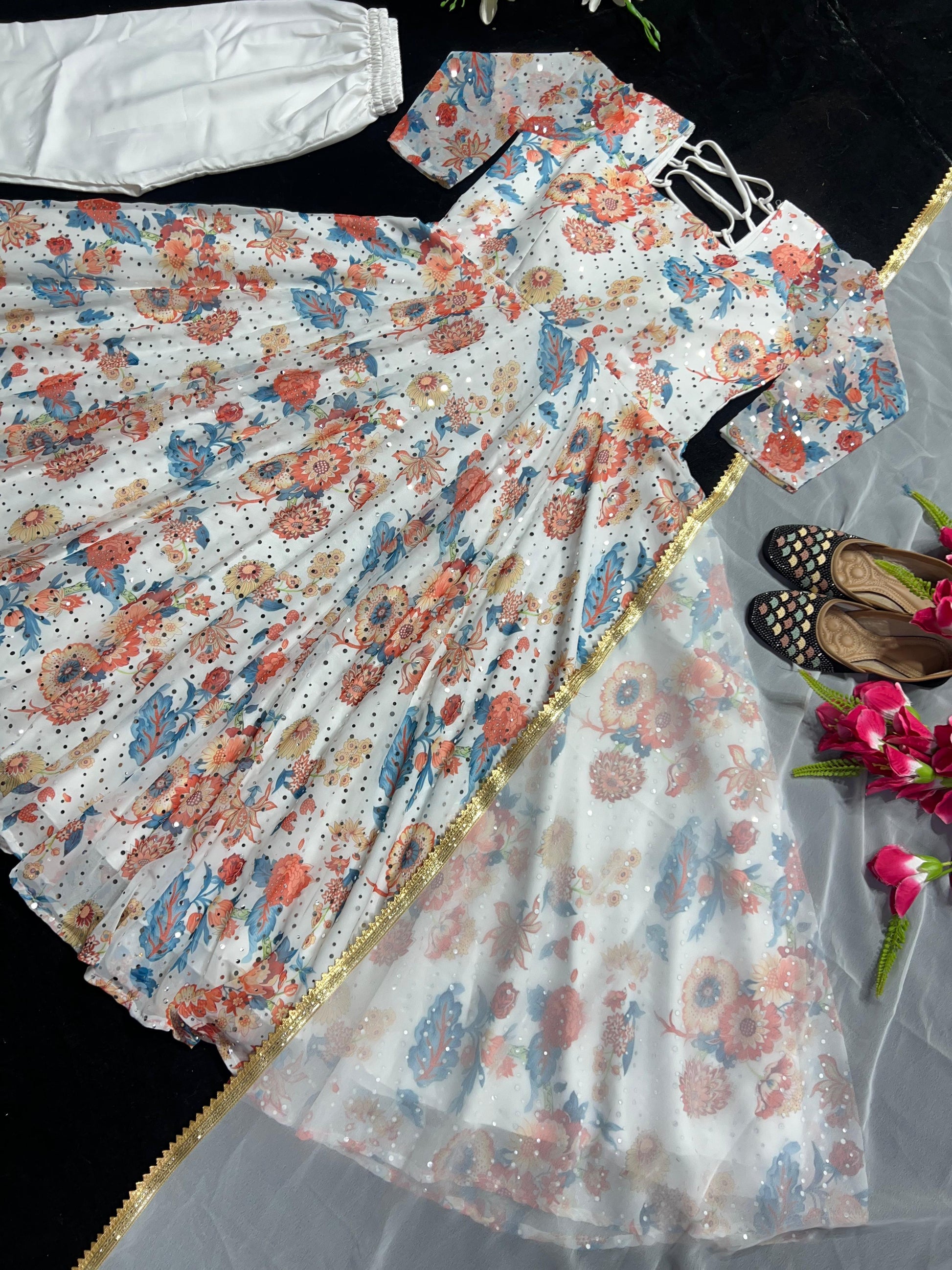 | Fabric | Heavy Faux Georgette Material With Ready Made Fancy Lace Work |