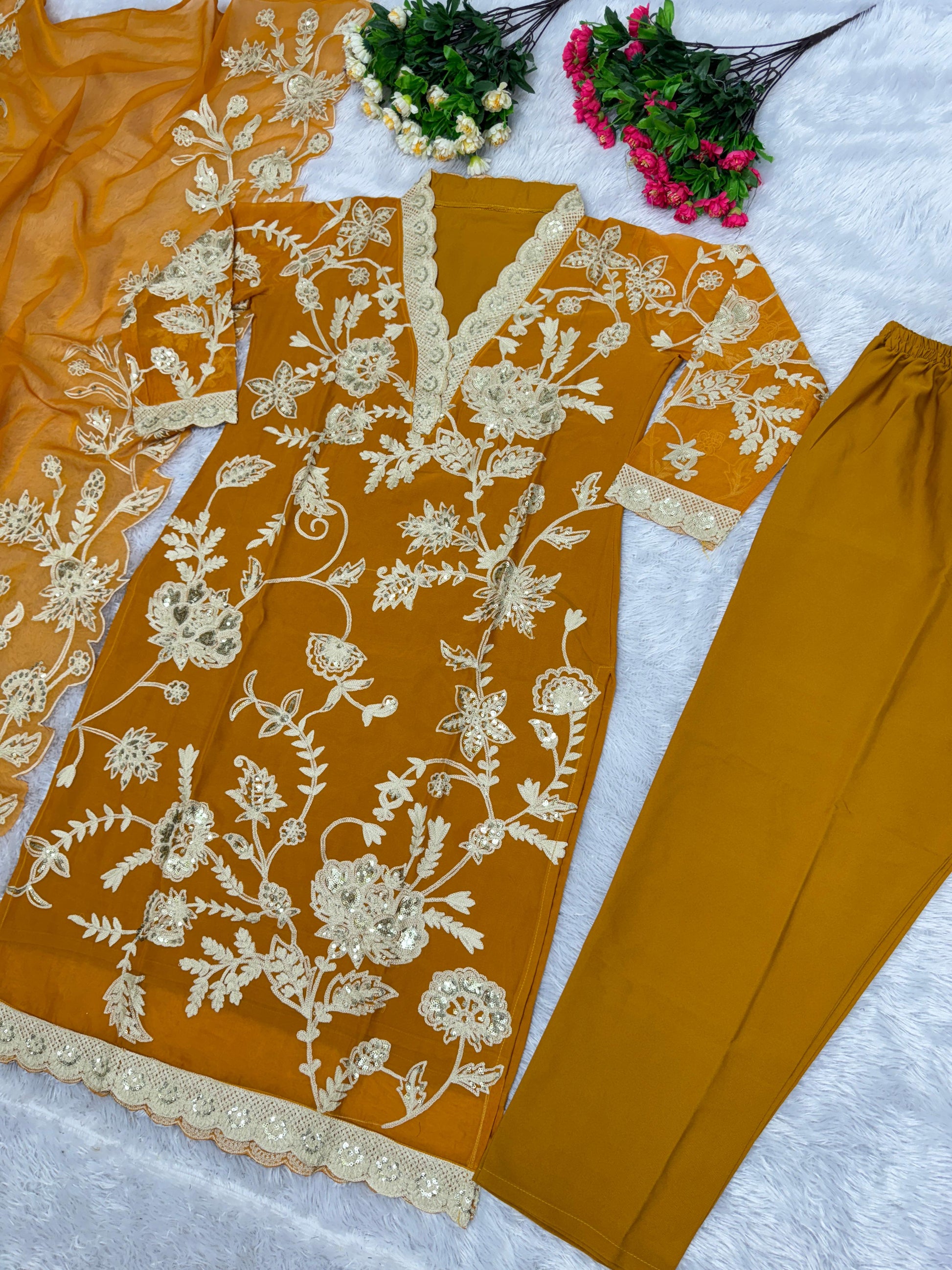 Mustard Color Thread Sequence Work Salwar Suit