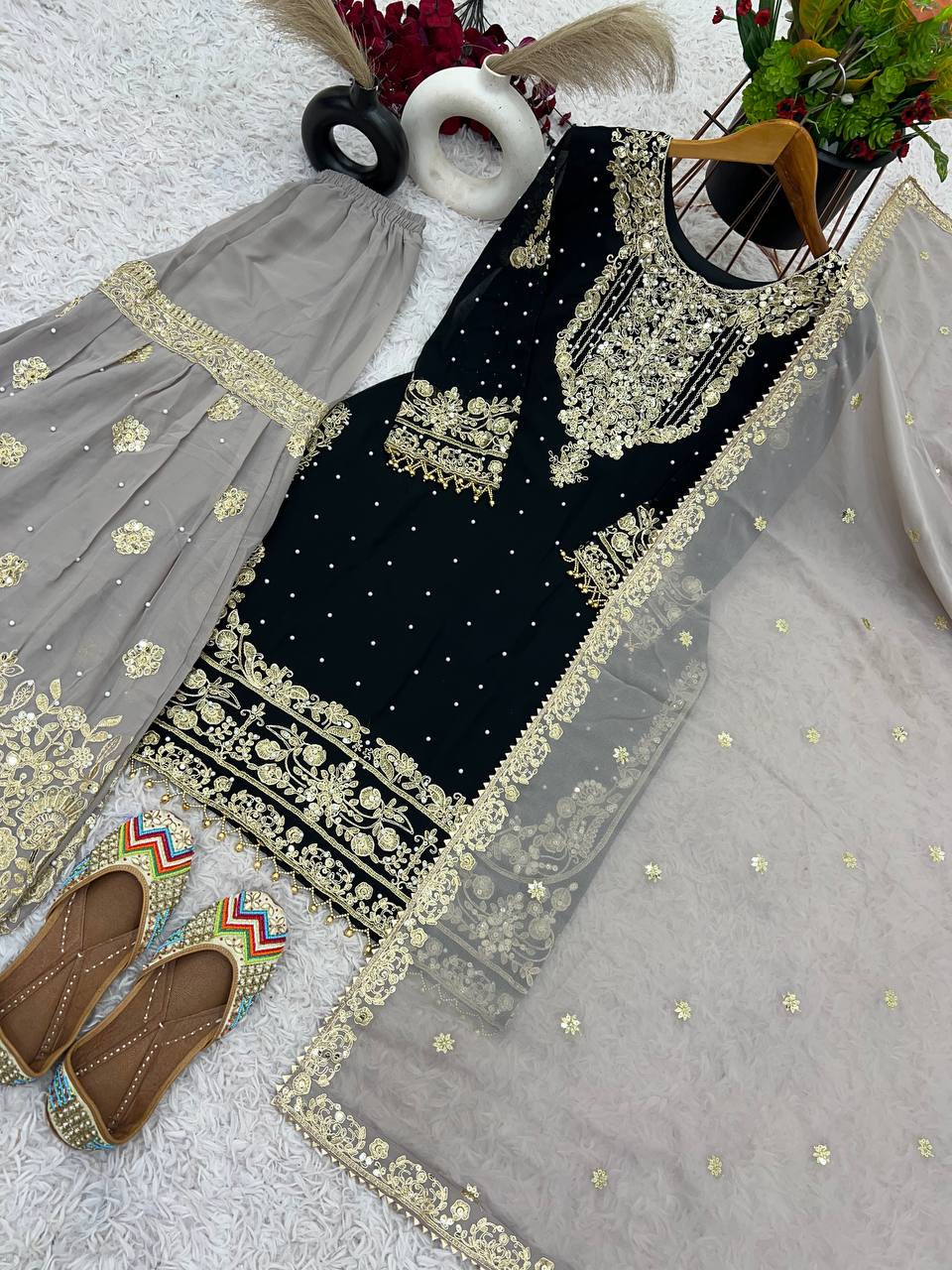Occasion Wear Black Color Heavy Faux Georgette With Heavy Embroidery Work Palazzo Suit