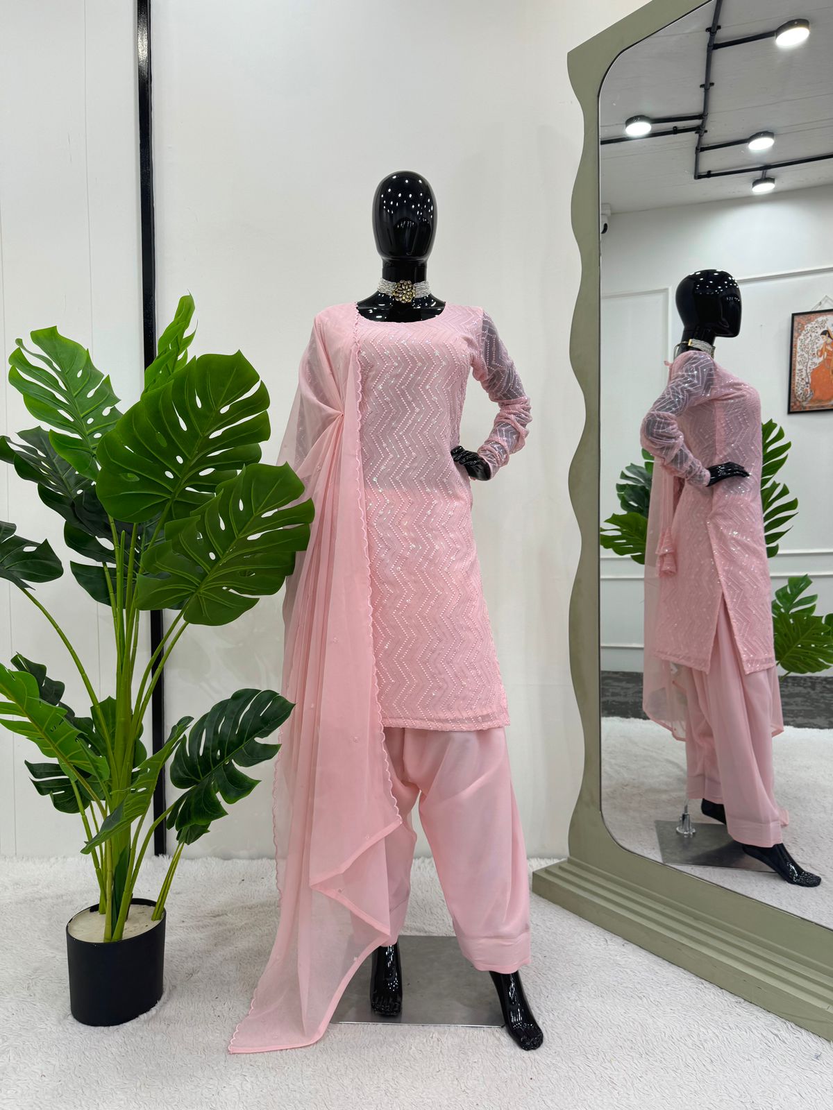 Occasion Wear Peach Color Georgette With Sequence Work Salwar Suit