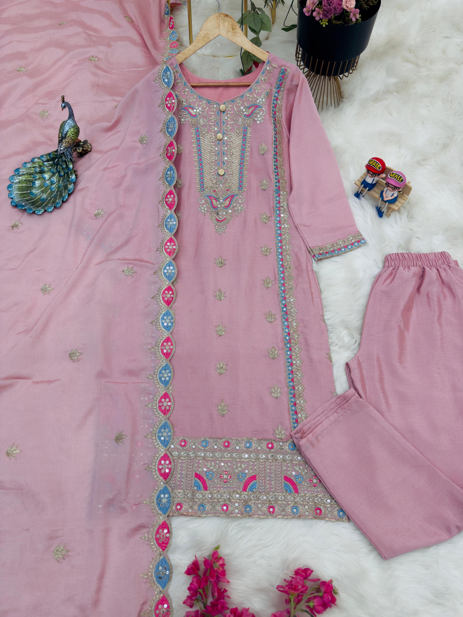Opulent Dusty Pink Color Coding Embroidery Work Salwar Suit