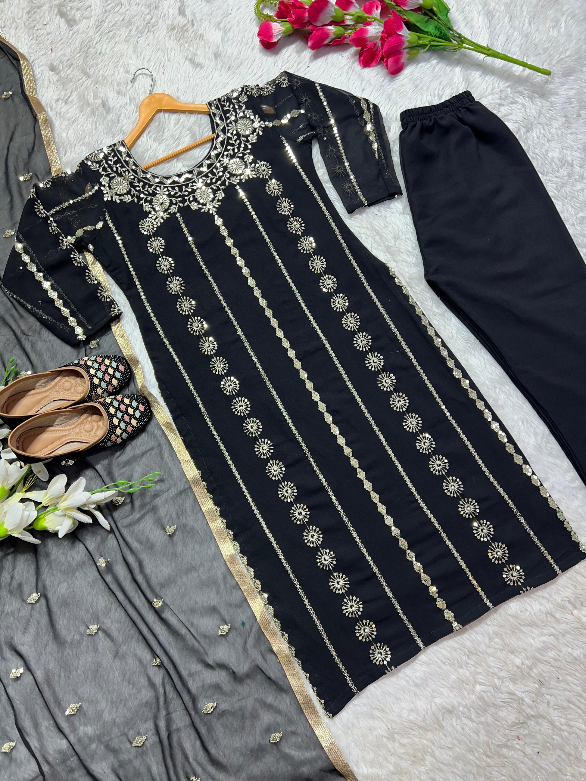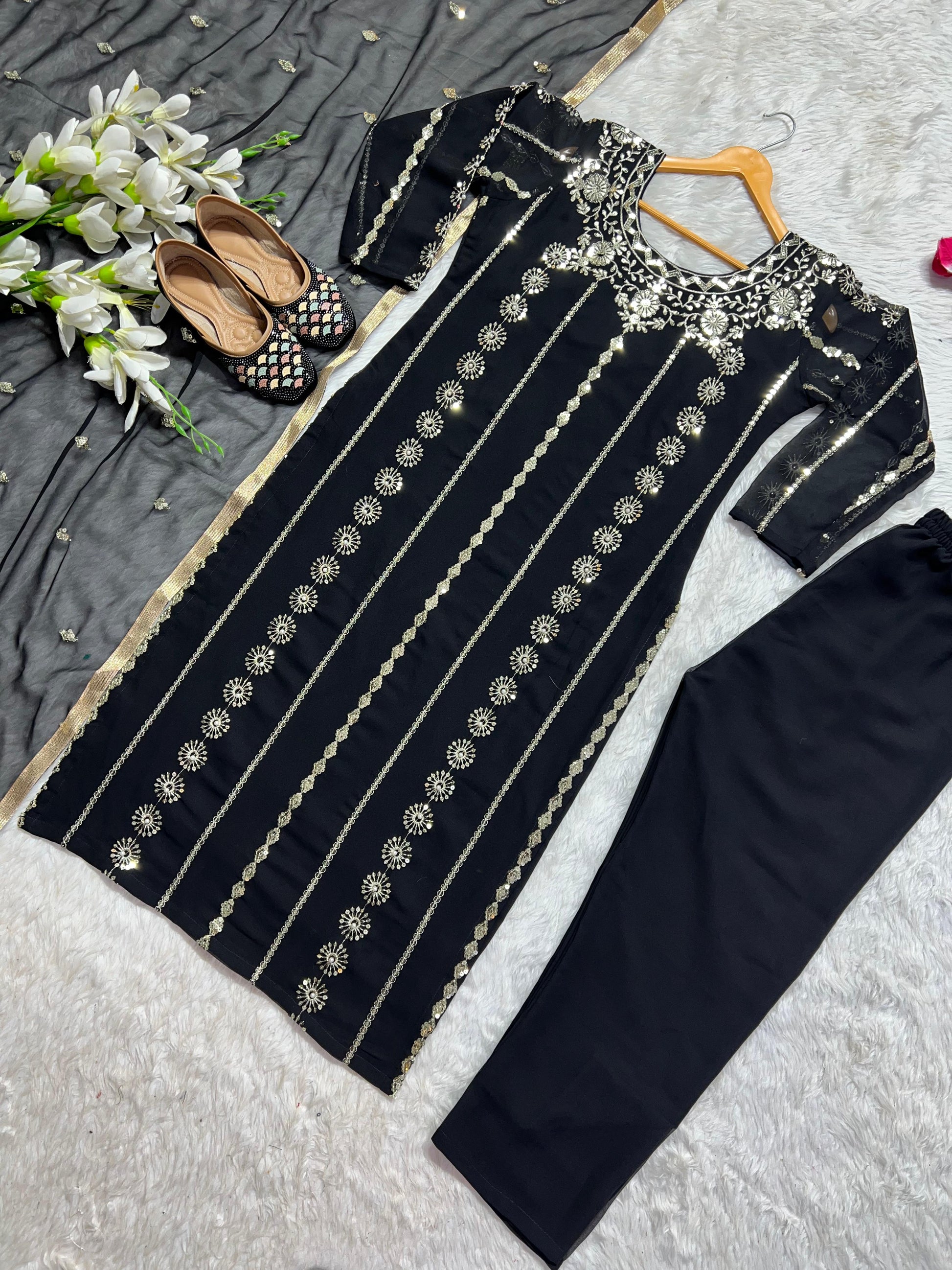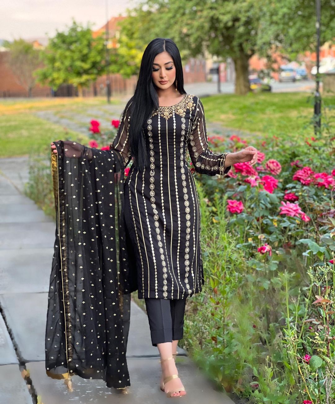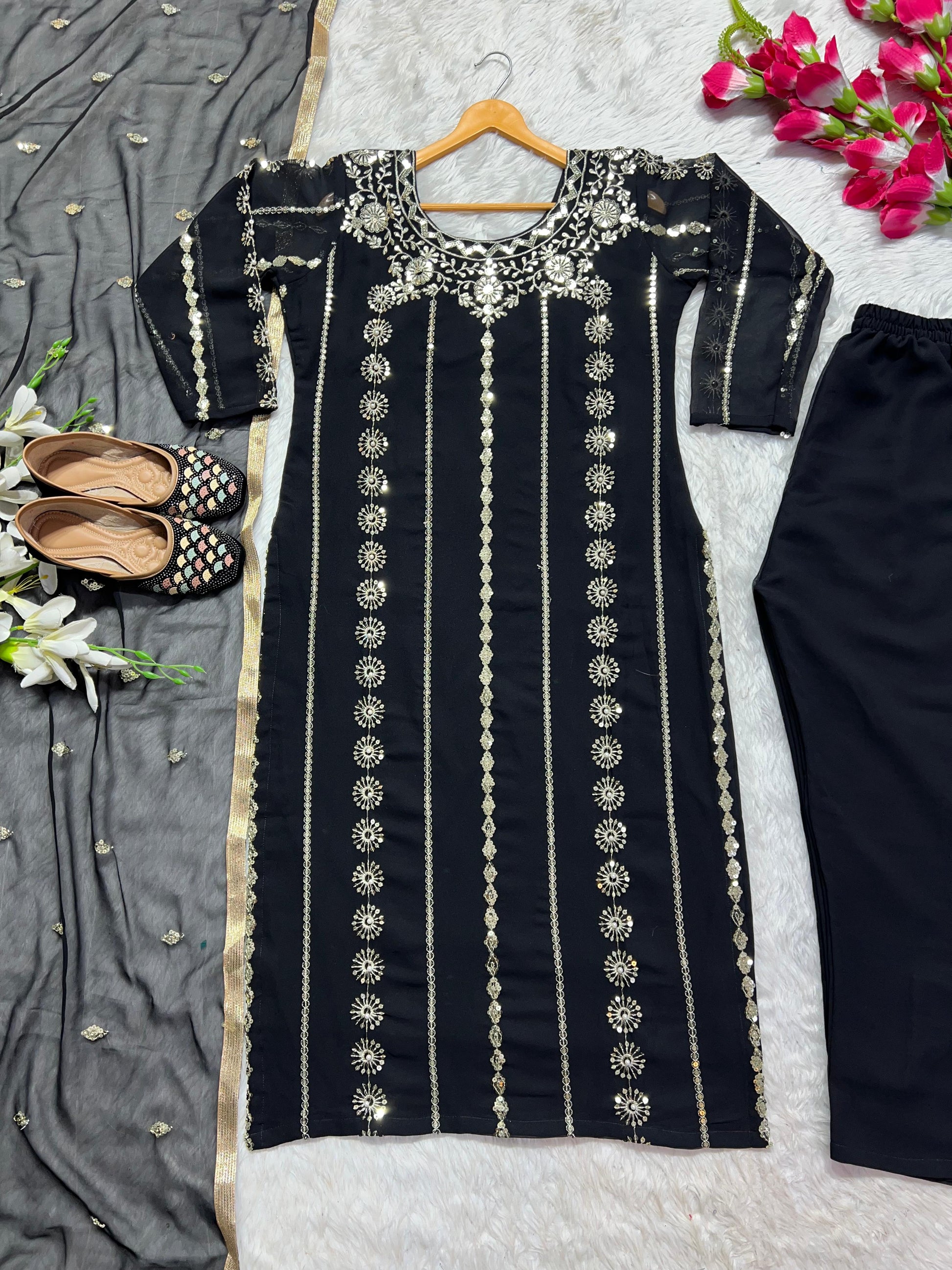 | Fabric | Heavy Faux Georgette Material With Heavy Embroidery 5mm Sequence Work Ready-made Lace Border |