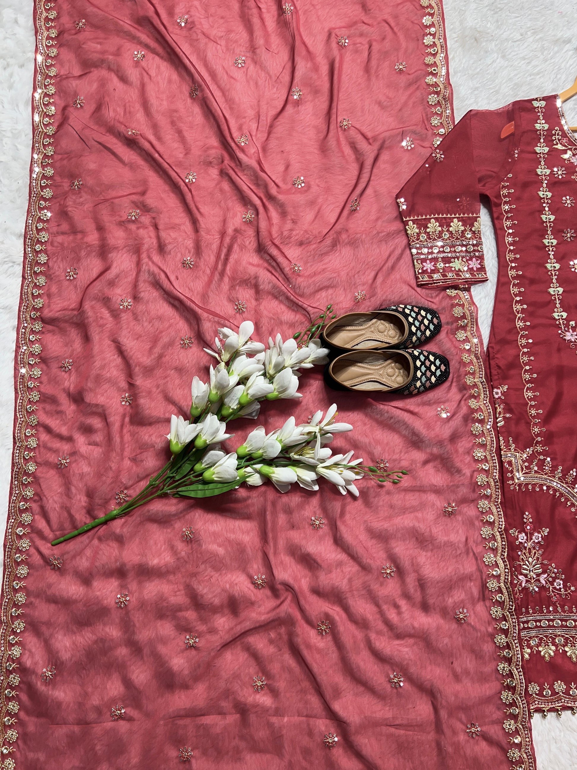Outstanding Pink Color Heavy Pure Organza 5mm Sequence Embroidery Work Salwar Suit