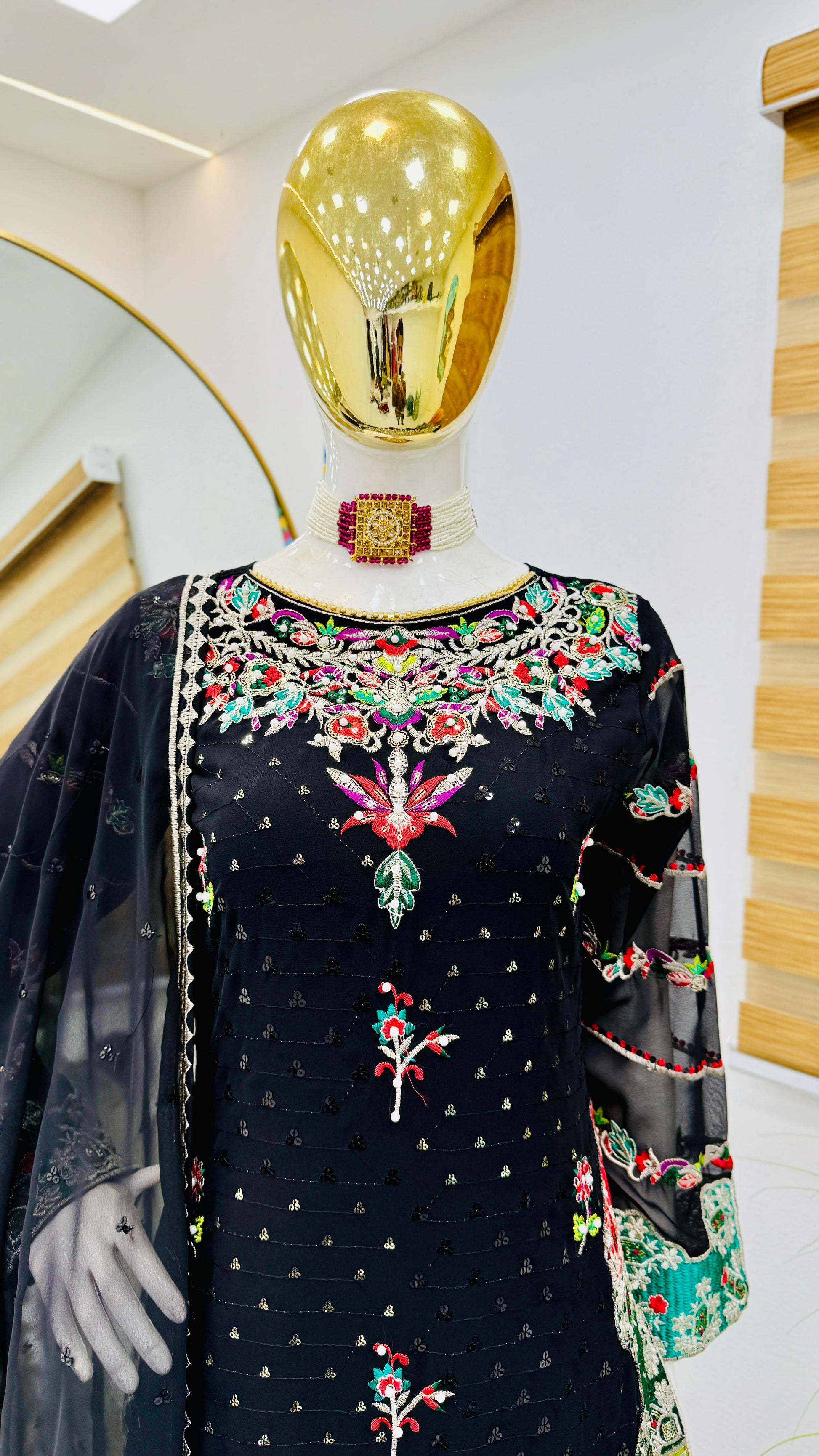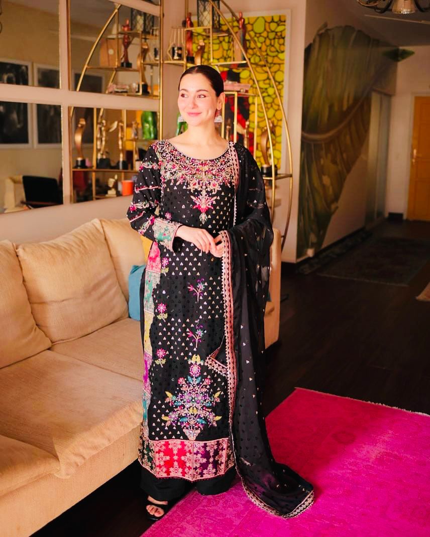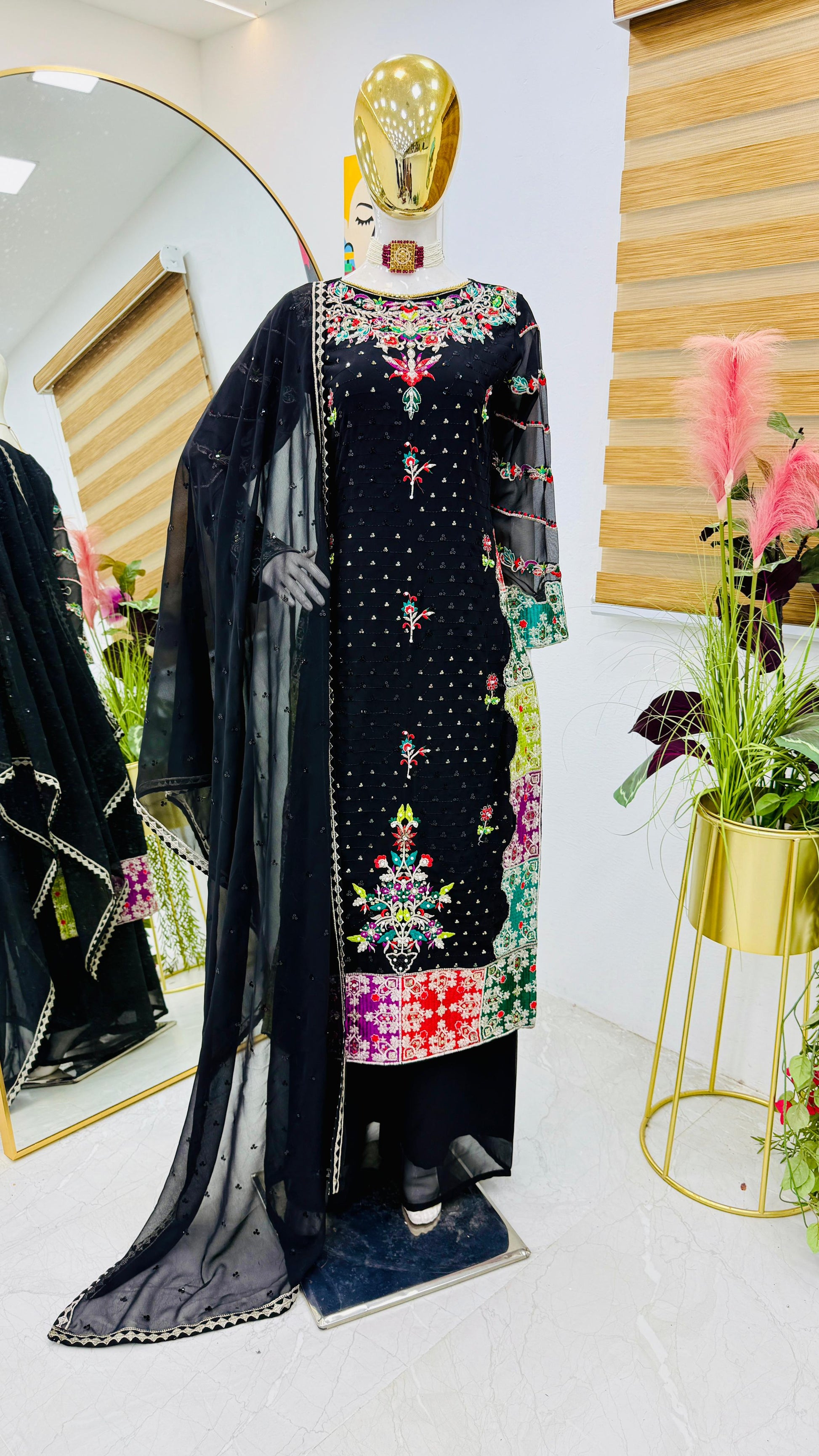 Party Wear Black Color Faux Georgette With Embroidery Sequence Designer Palazzo Suit