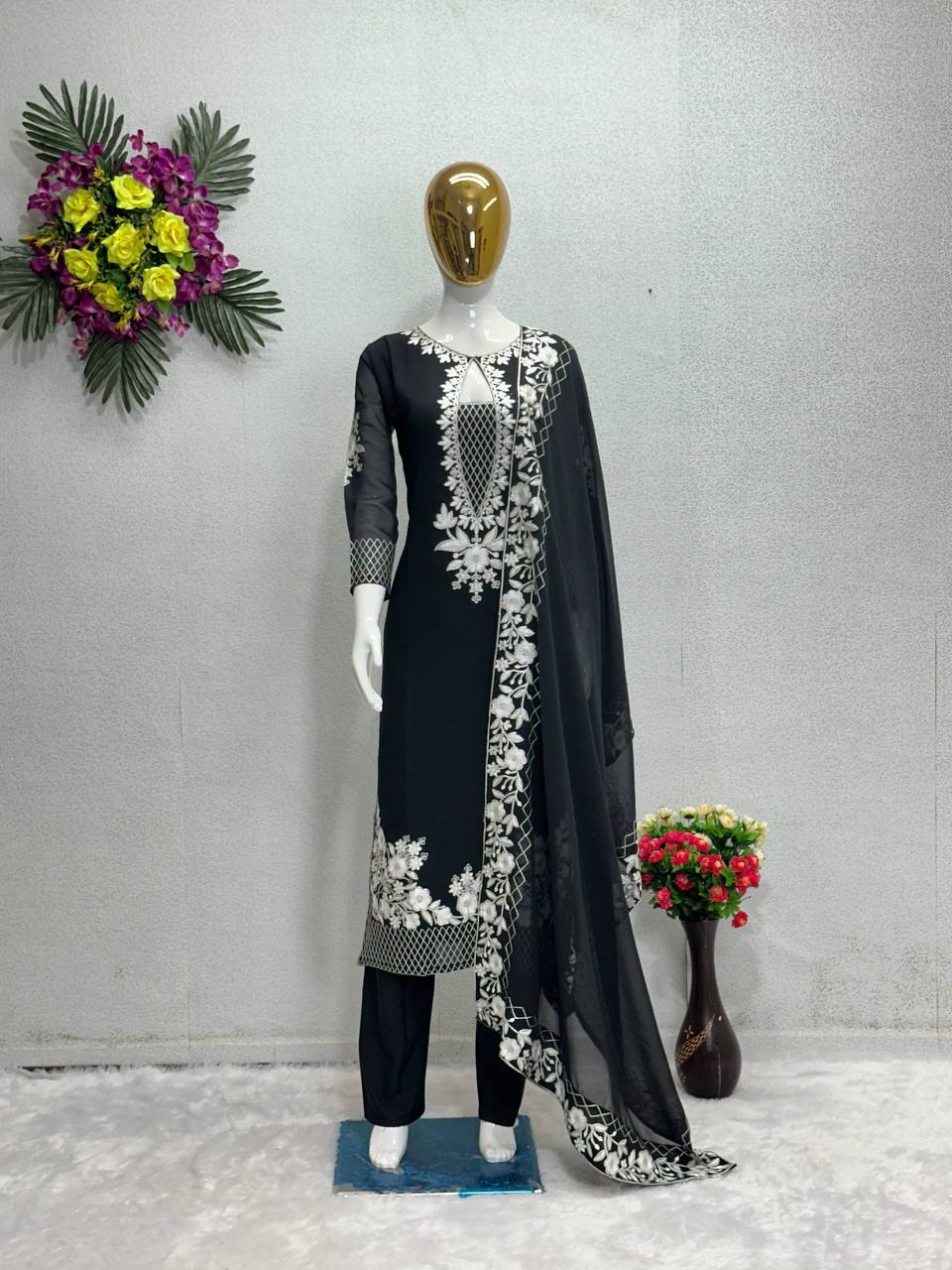 Party Wear Black Embroidery Work Stitch Salwar Suit