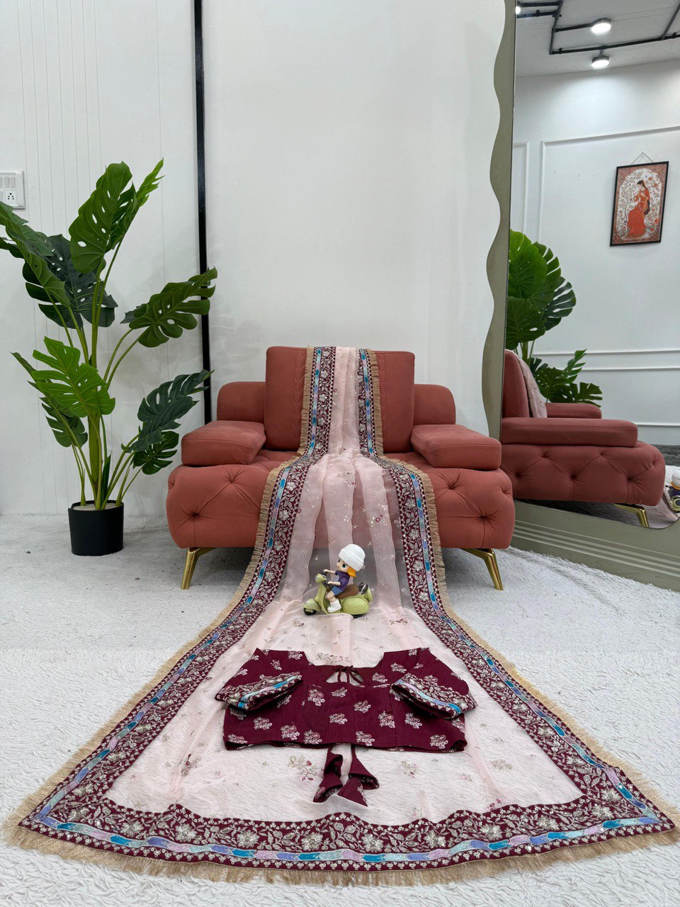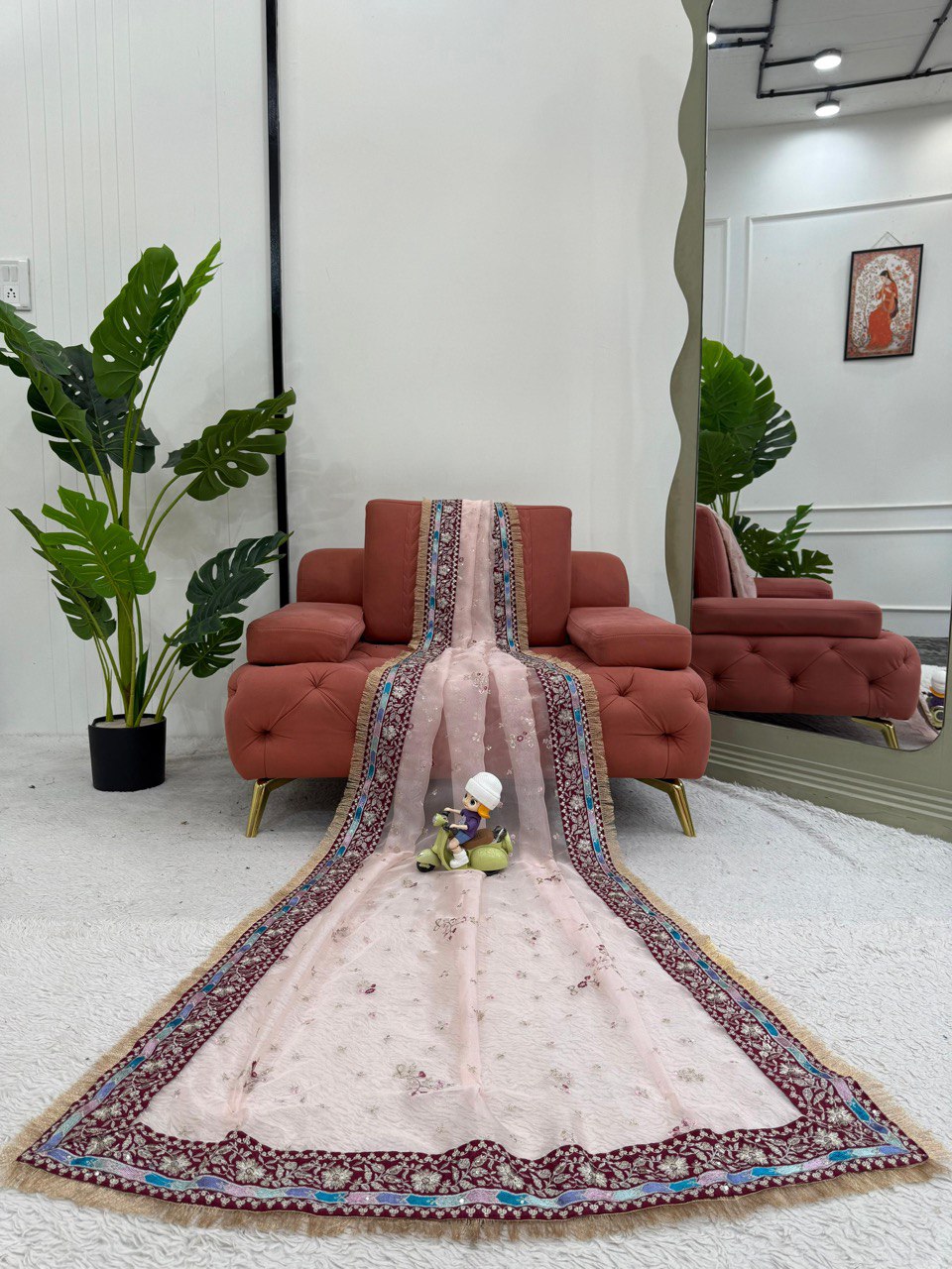 Party Wear Light Pink Color Organza Silk Embroidery Work Beautiful Saree