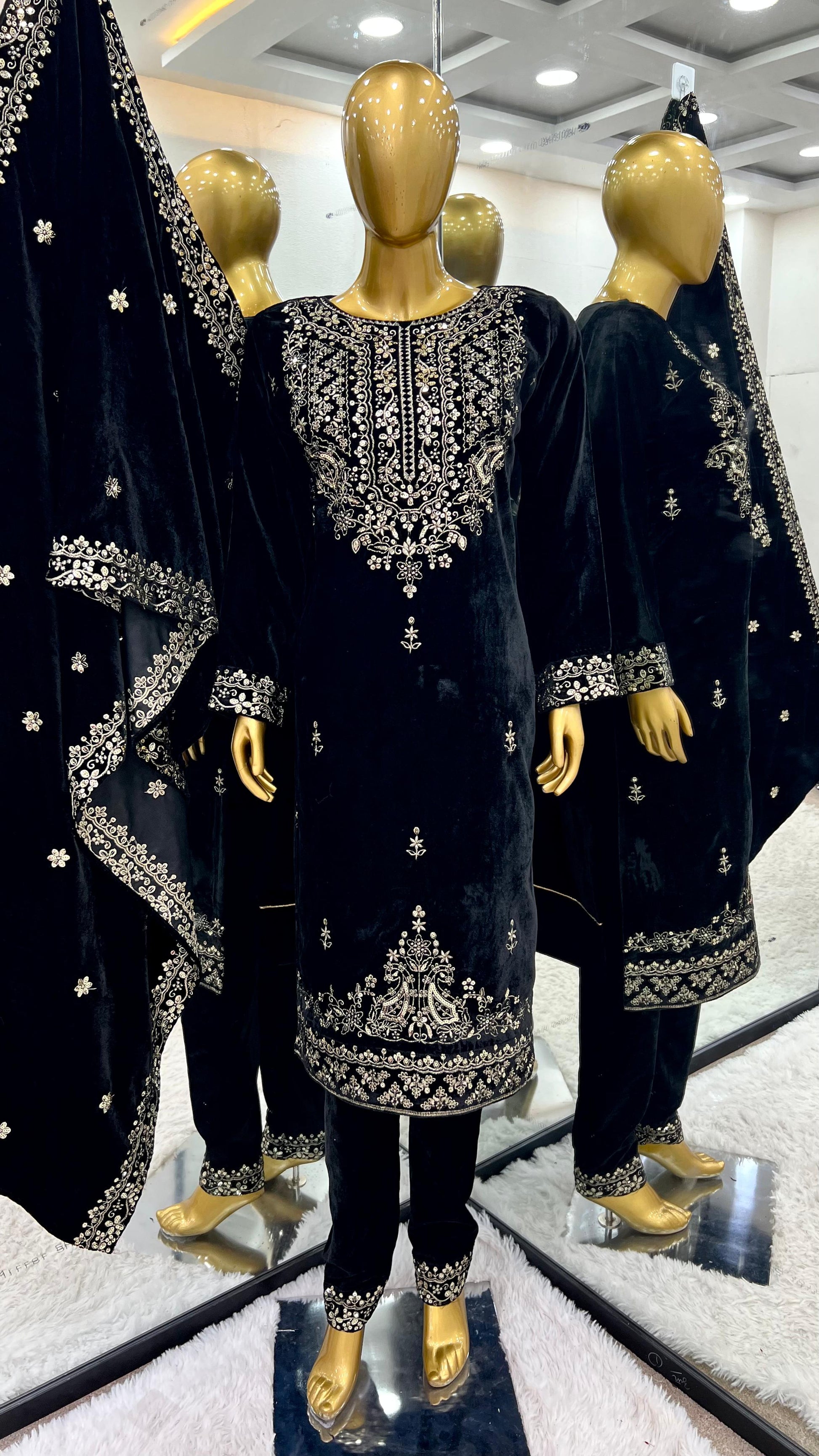 👗 Bottom Fabric : Viscose Velvet with Embroidery Sequence Work ( Full Stiched)