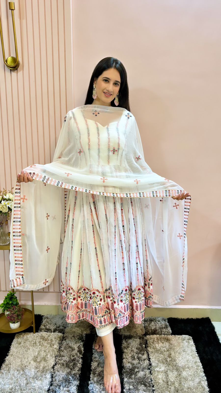 Preferable White Color Georgette With Embroidery Work Designer Work