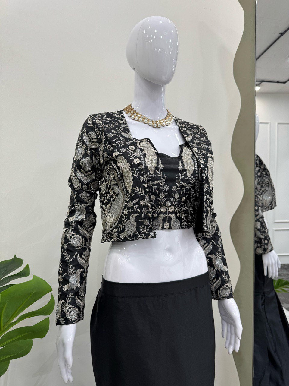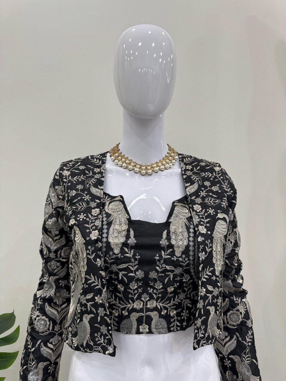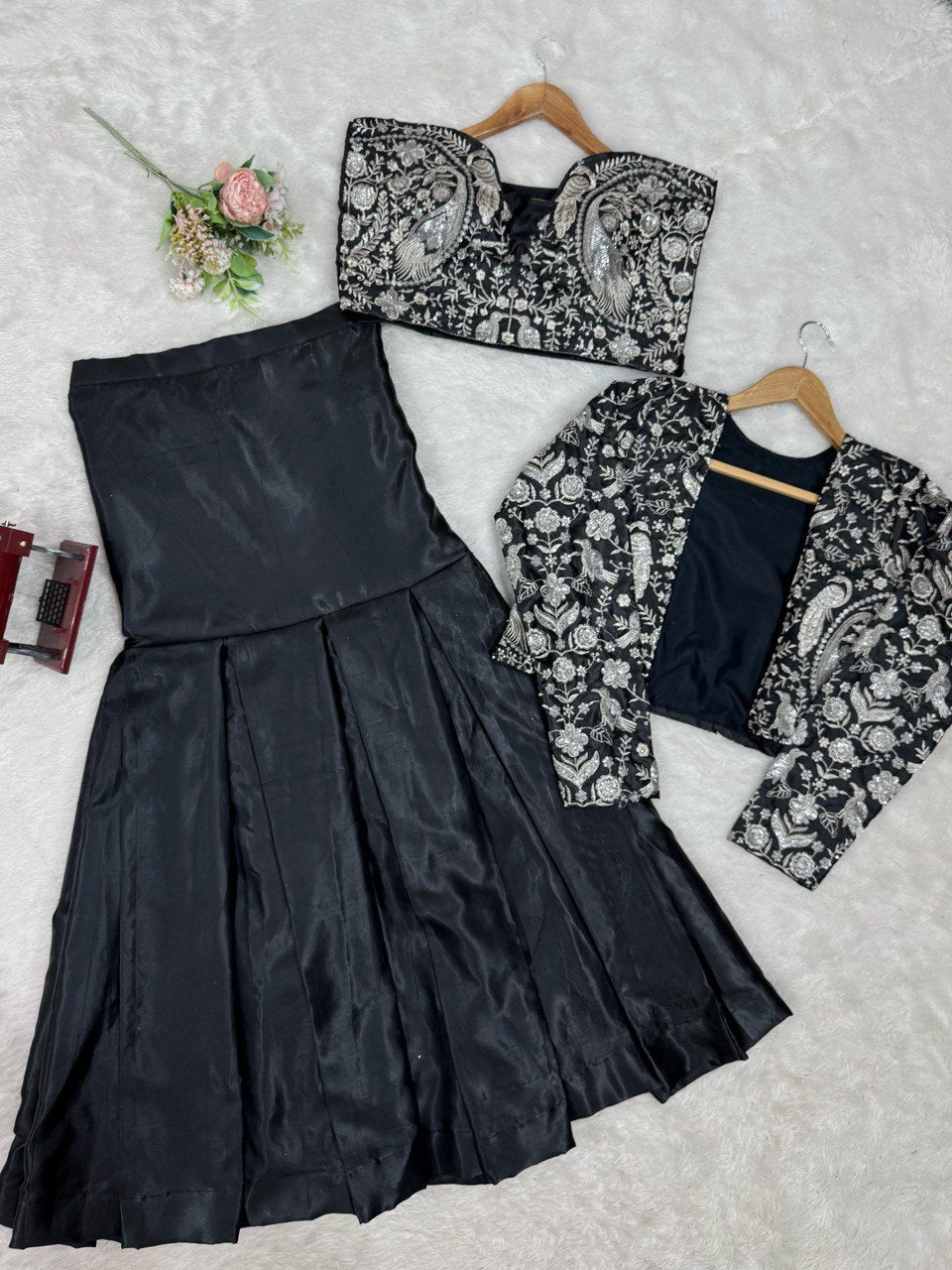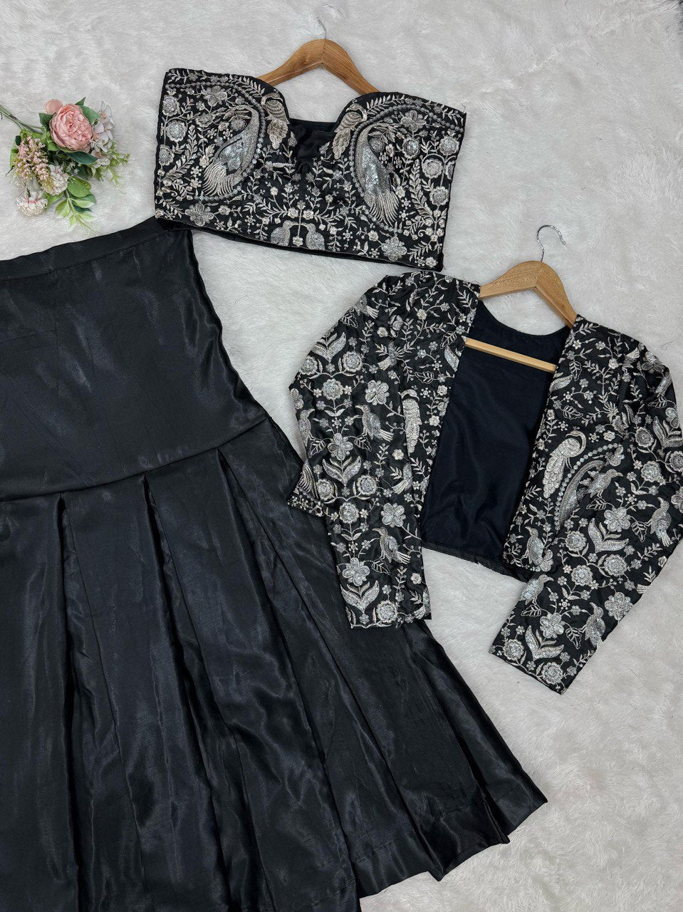 Presenting Black Color Tapeta Silk And Thread With Sequence Work Lehenga Choli With Koti