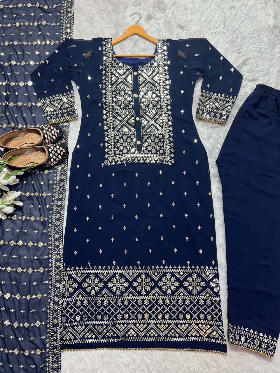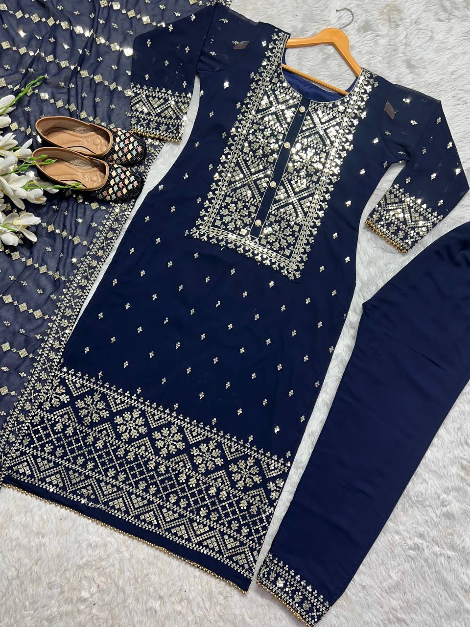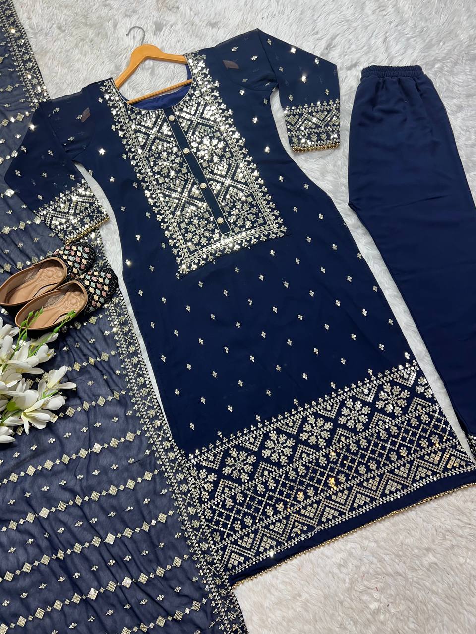| Fabric | Heavy Faux Georgette Material With Heavy Embroidery 5mm Sequence Work With Four Side Lace. |