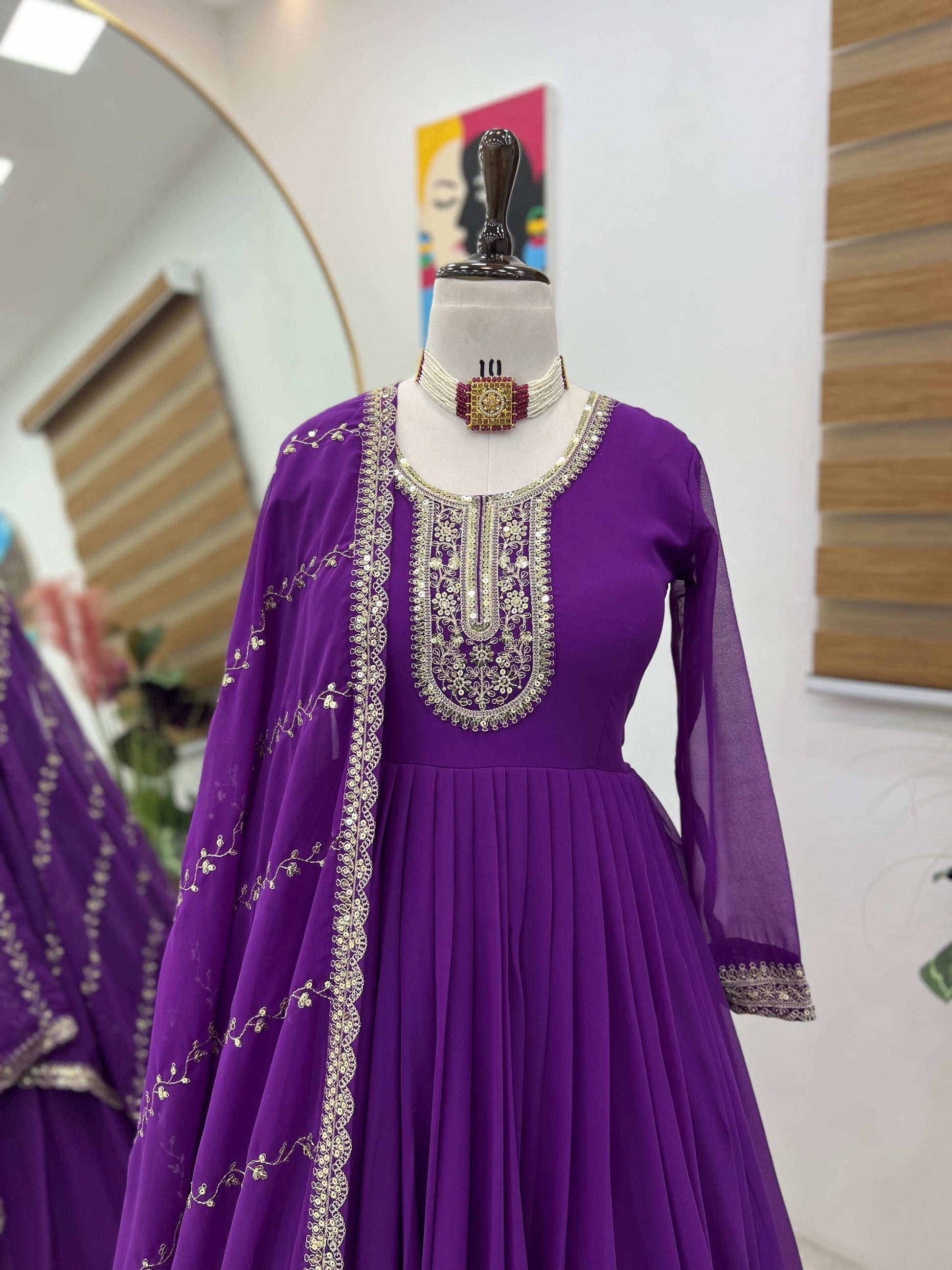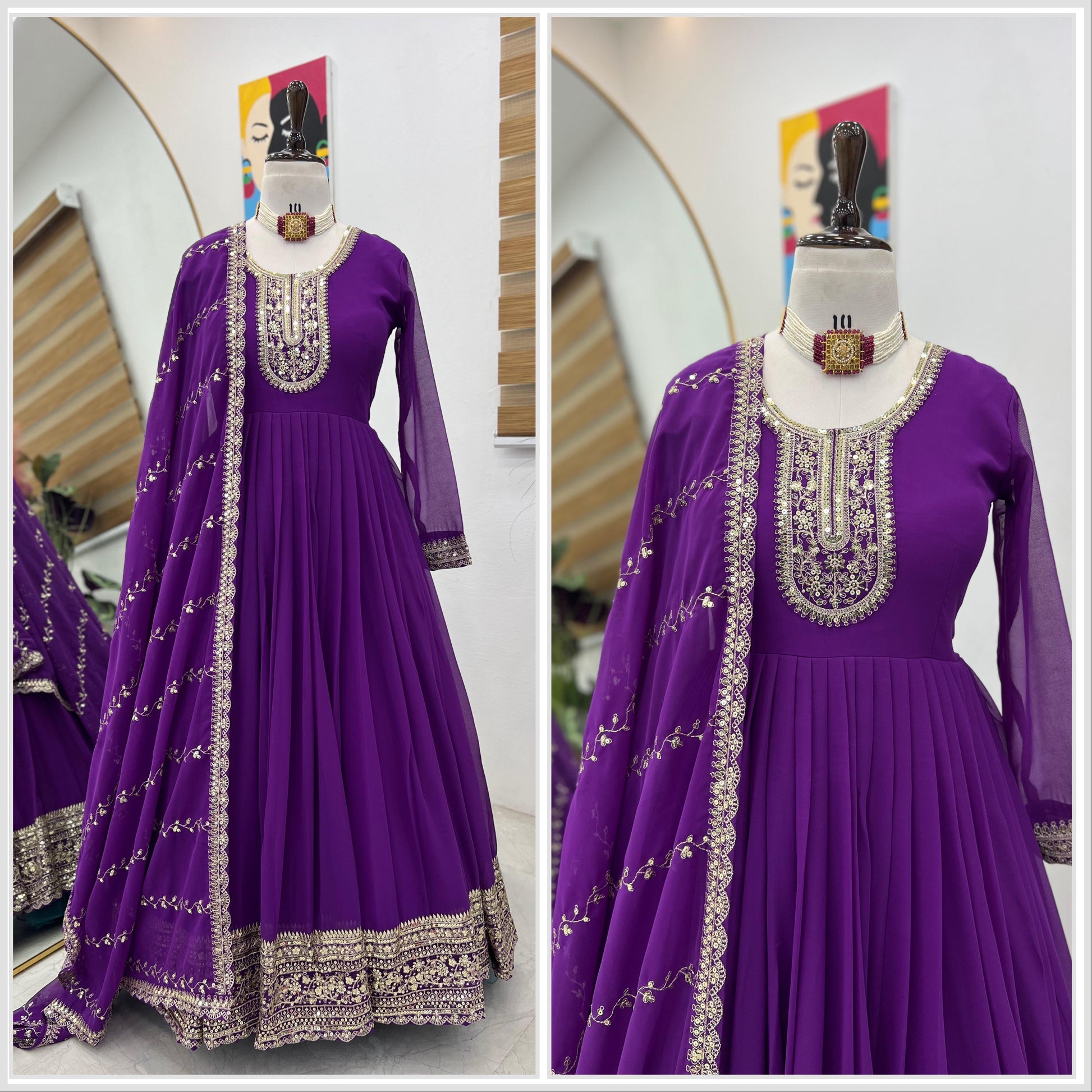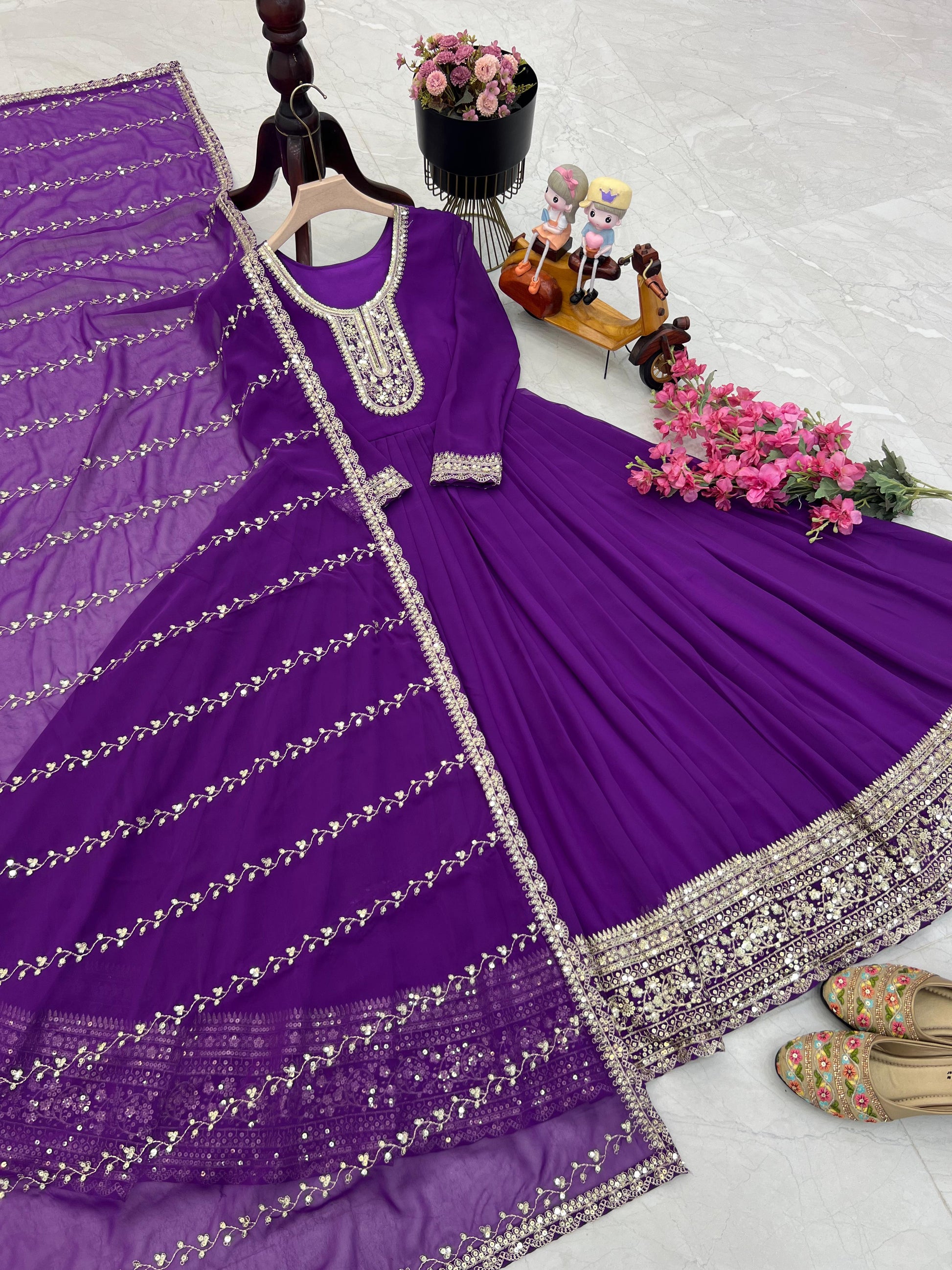 Presenting Purple Color Faux Georgette With Embroidery Sequence Work Designer Gown
