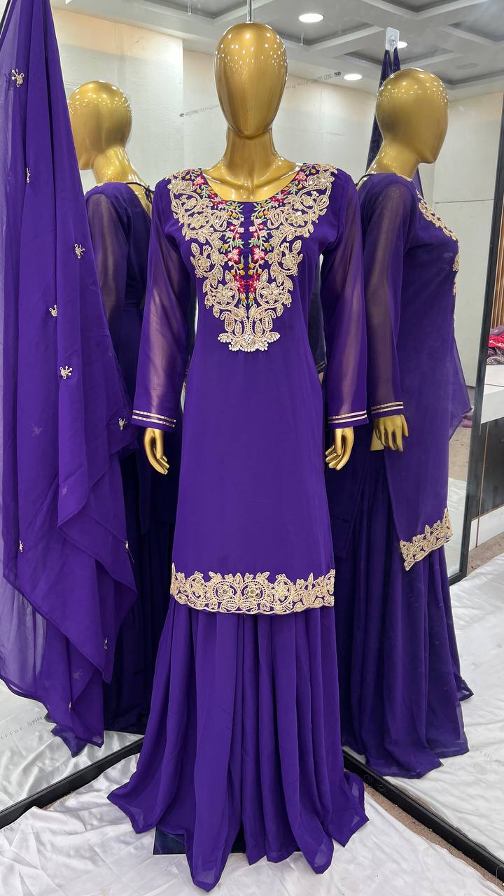 Ravishing Blue Color Heavy Faux Georgette With 5mm Embroidery Sequence Work Designer Palazzo Suit