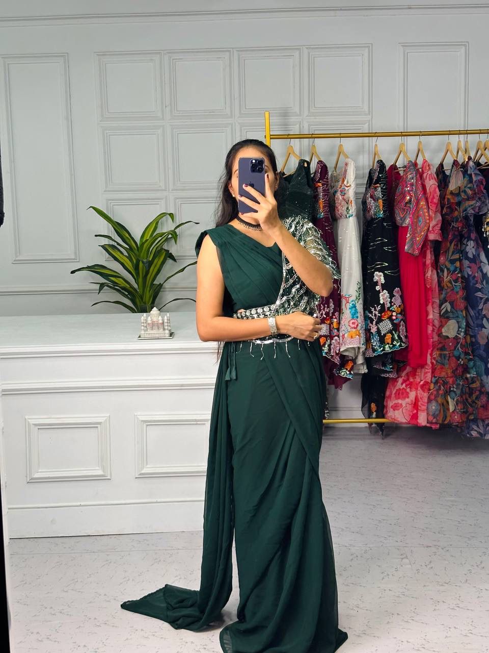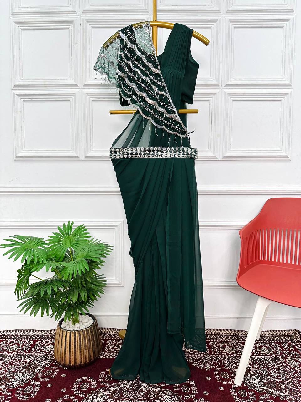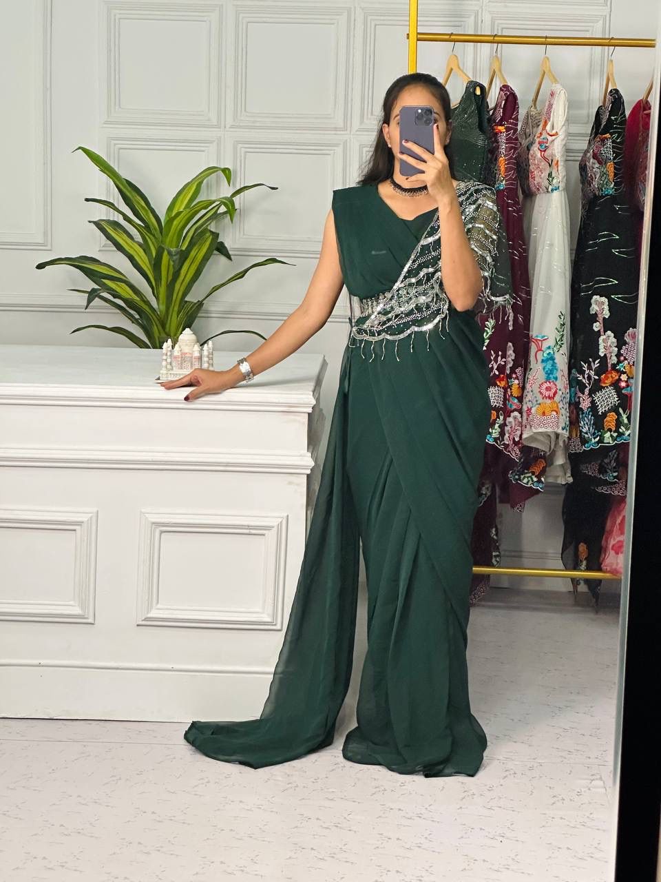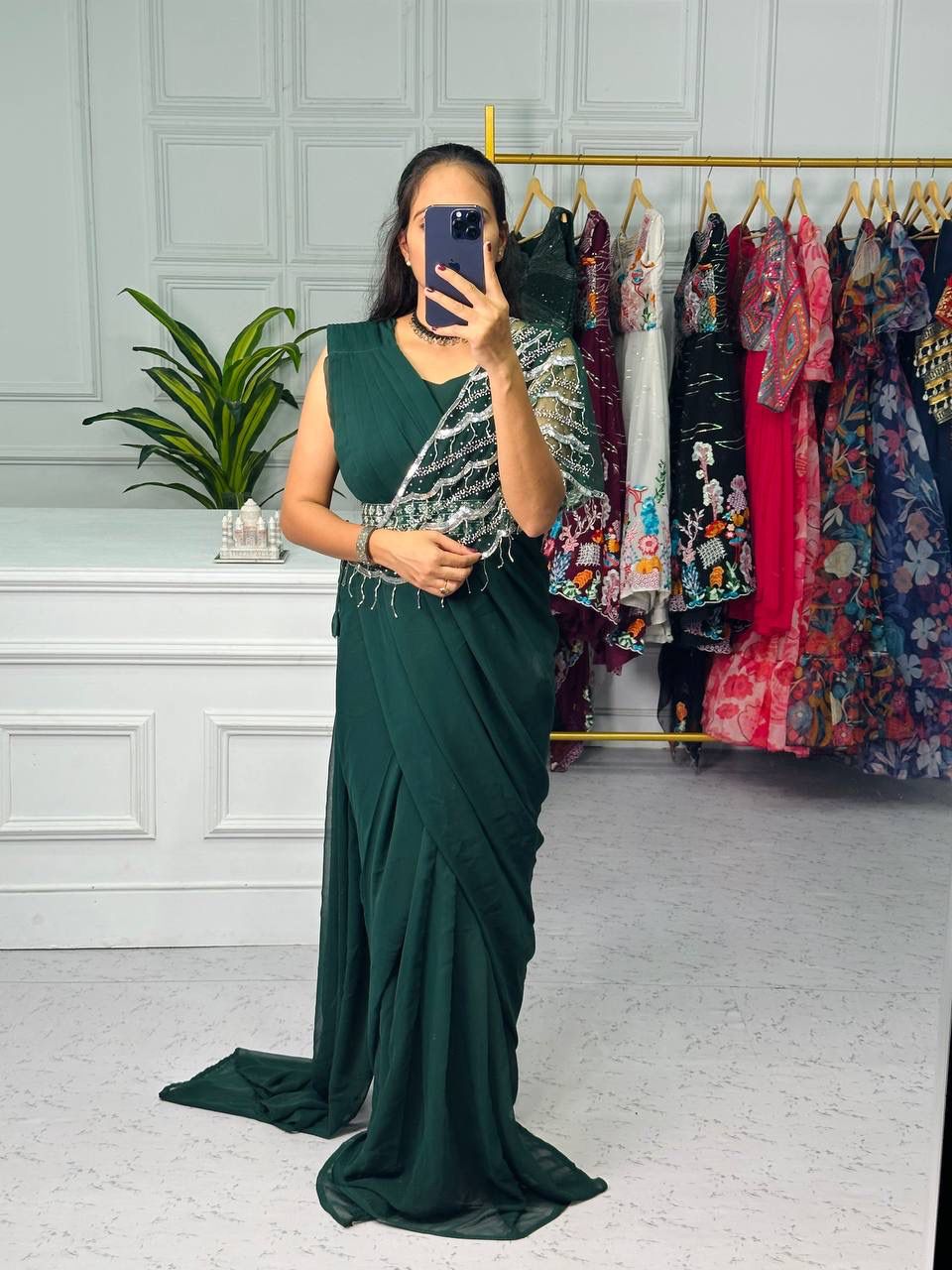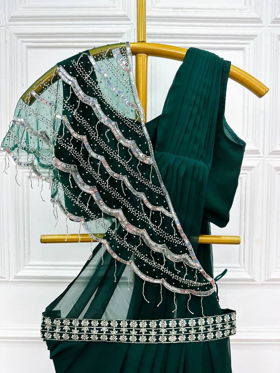 Work | Plain Ready To Wear Saree And Blouse With Khatli Work Shrug | |