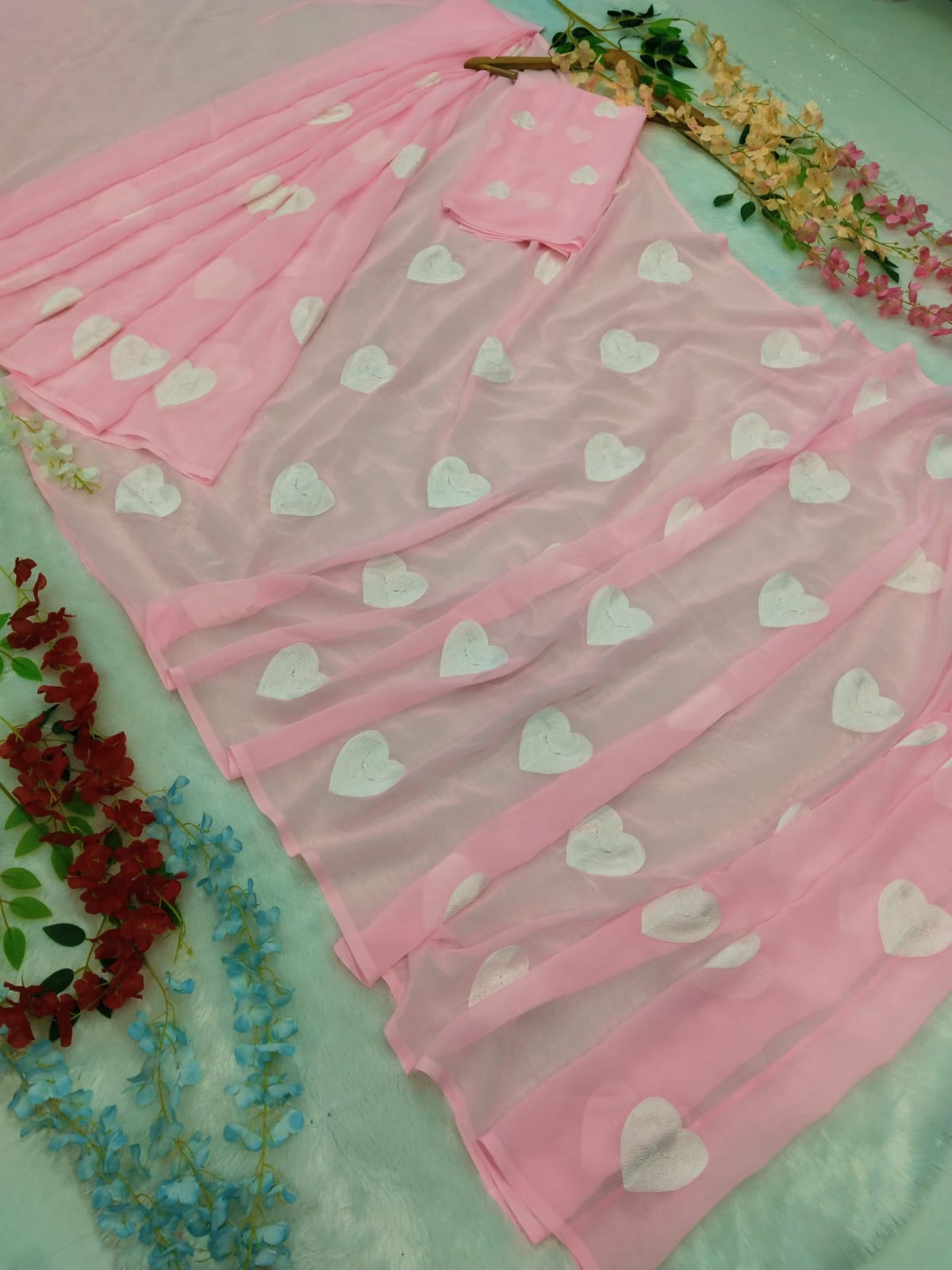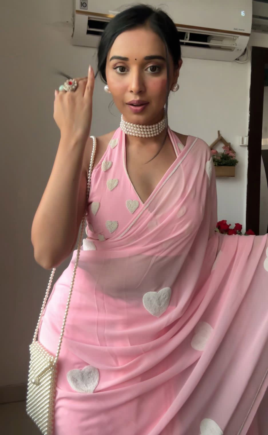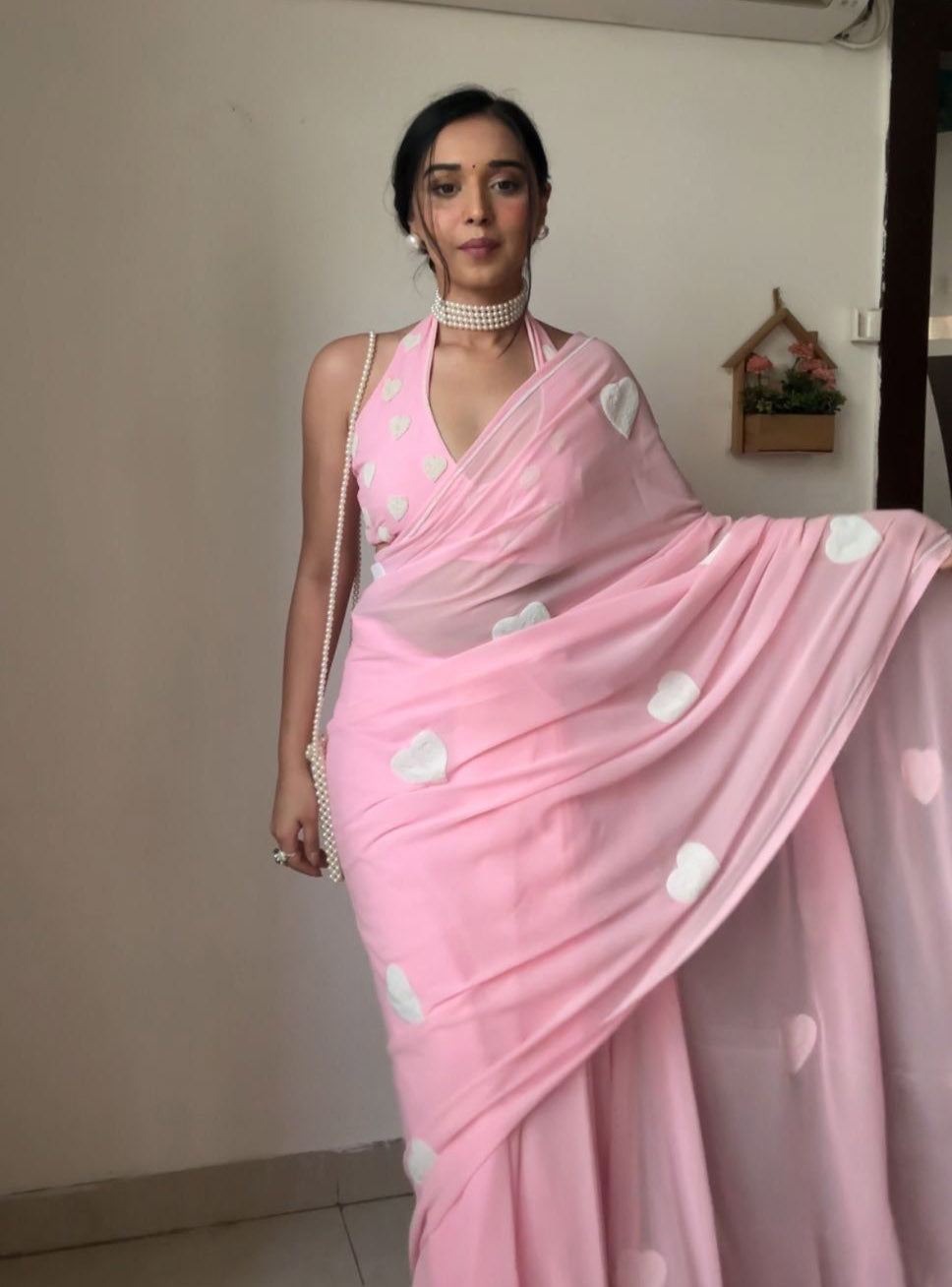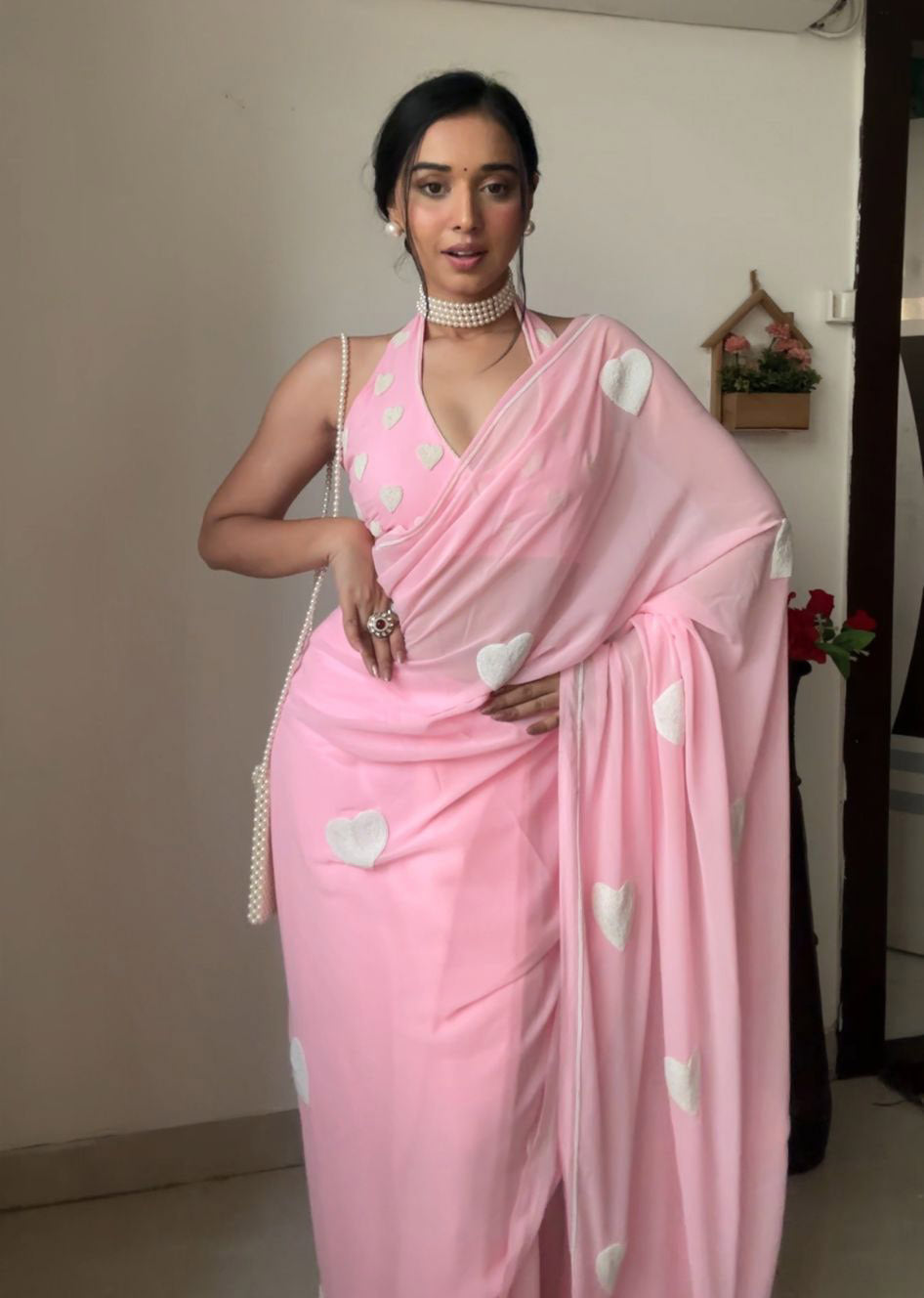 Ready To Wear Light Pink Heart Shape Thread Work Saree