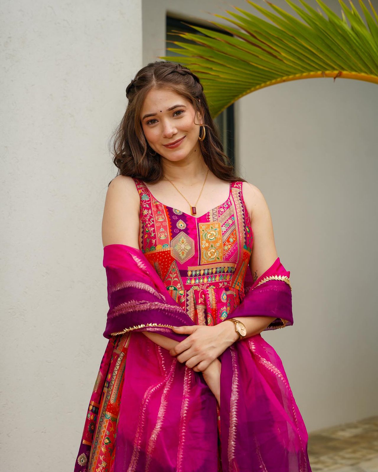 * Anarkali Gown * - Pure Jimmy Organza Silk Digital Printed Padded Gown With 52+ Gown Length !! 8mtr Flair Outfit ! 🔥