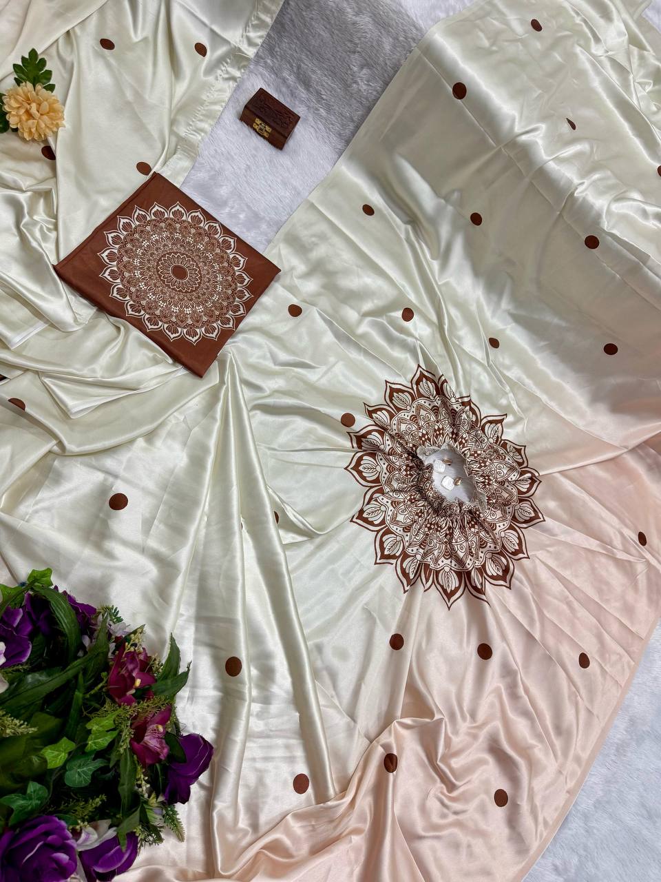Reception Wear Off White Color Japan Satin Digital Printed Hands-Free Ready To Wear Saree