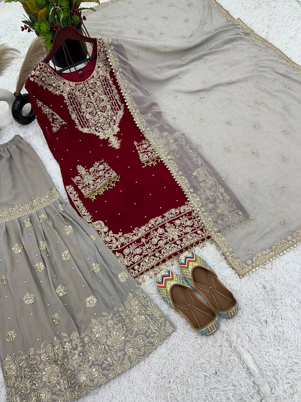Reception Wear Red Color Heavy Faux Georgette With Heavy Embroidery Work Palazzo Suit