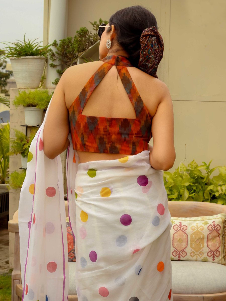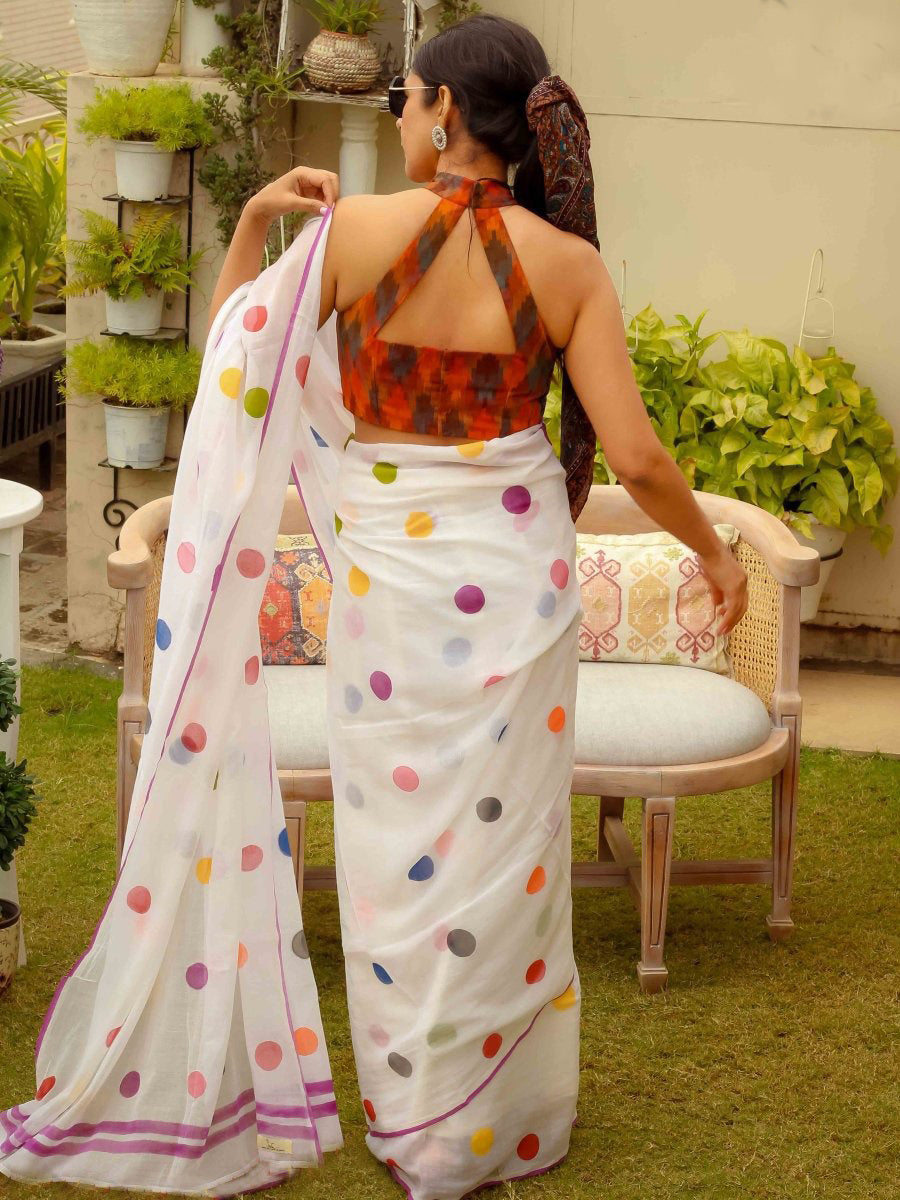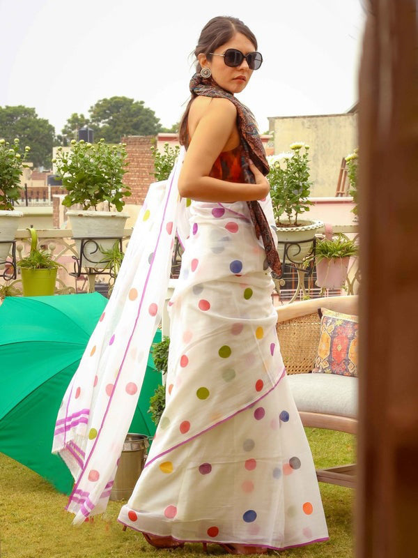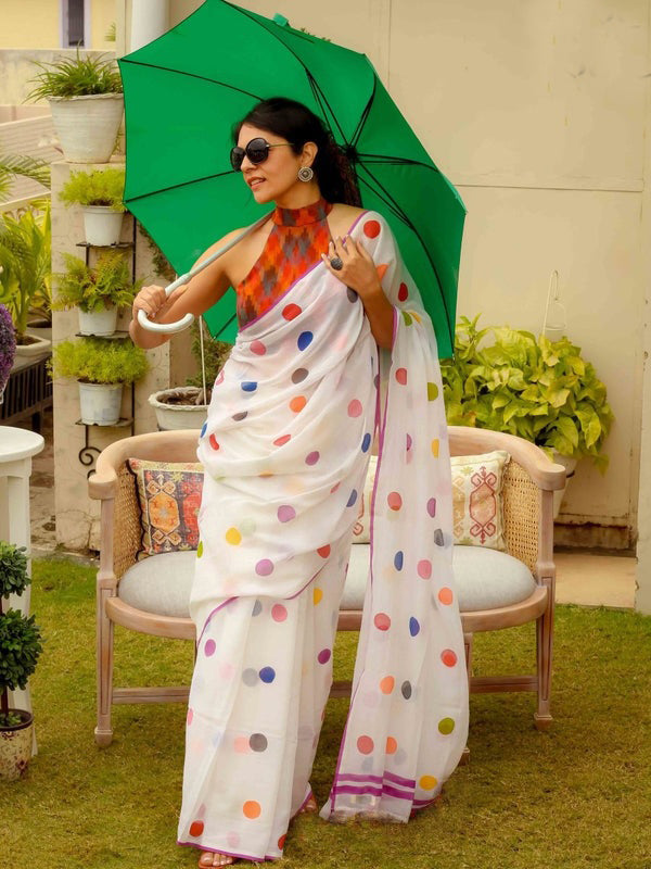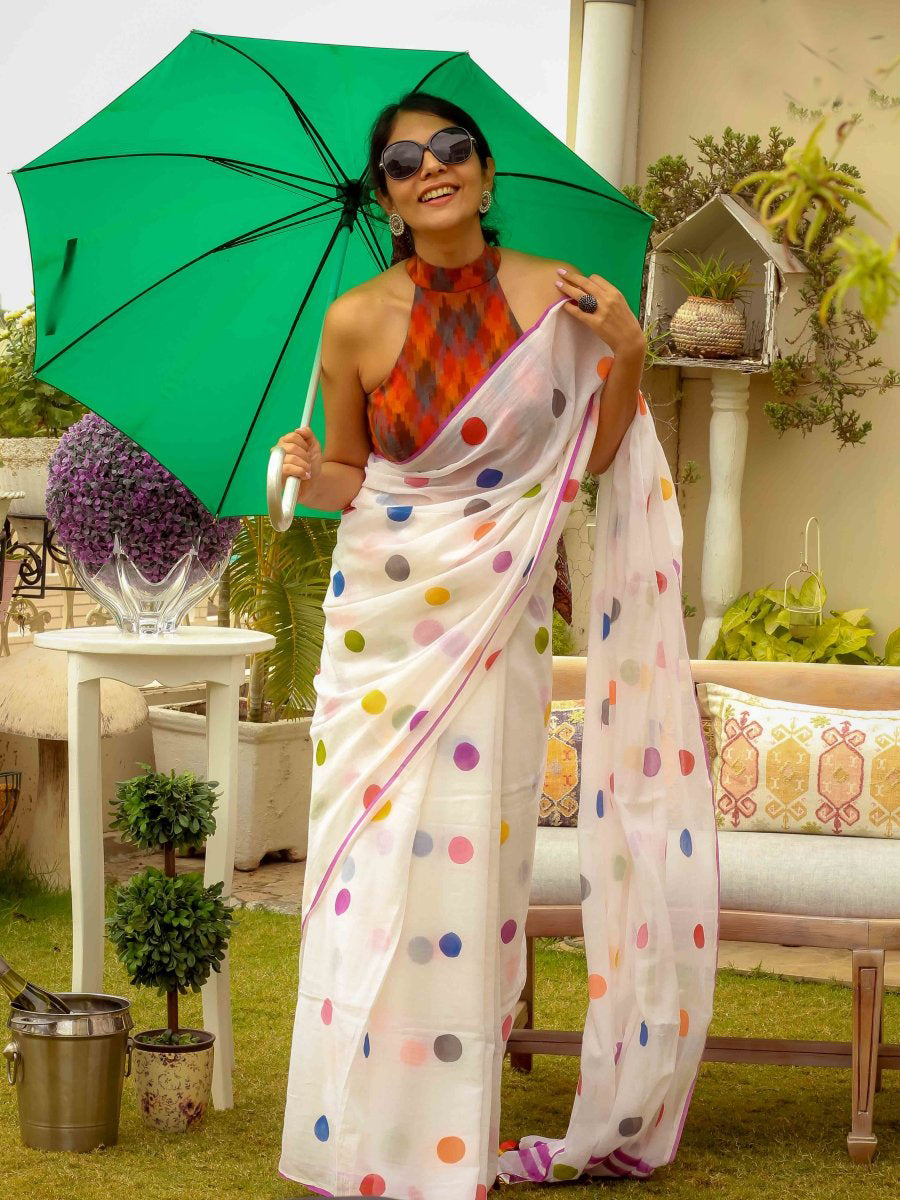 Shining White Color Pure Cotton Lilen With Digital Printed Designer Saree