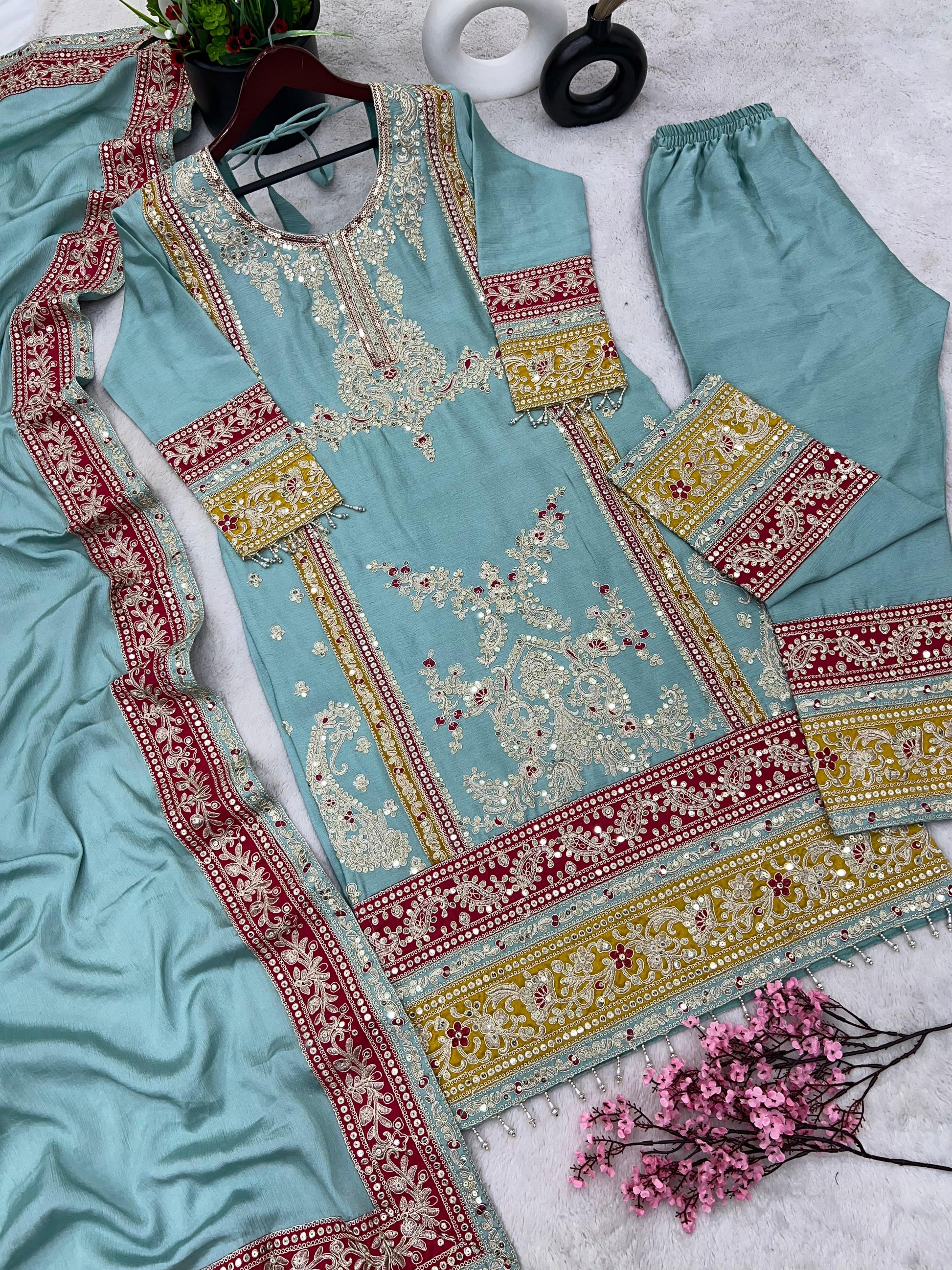 Sky Blue Salwar Suit With Beautiful Sequence Embroidery Work