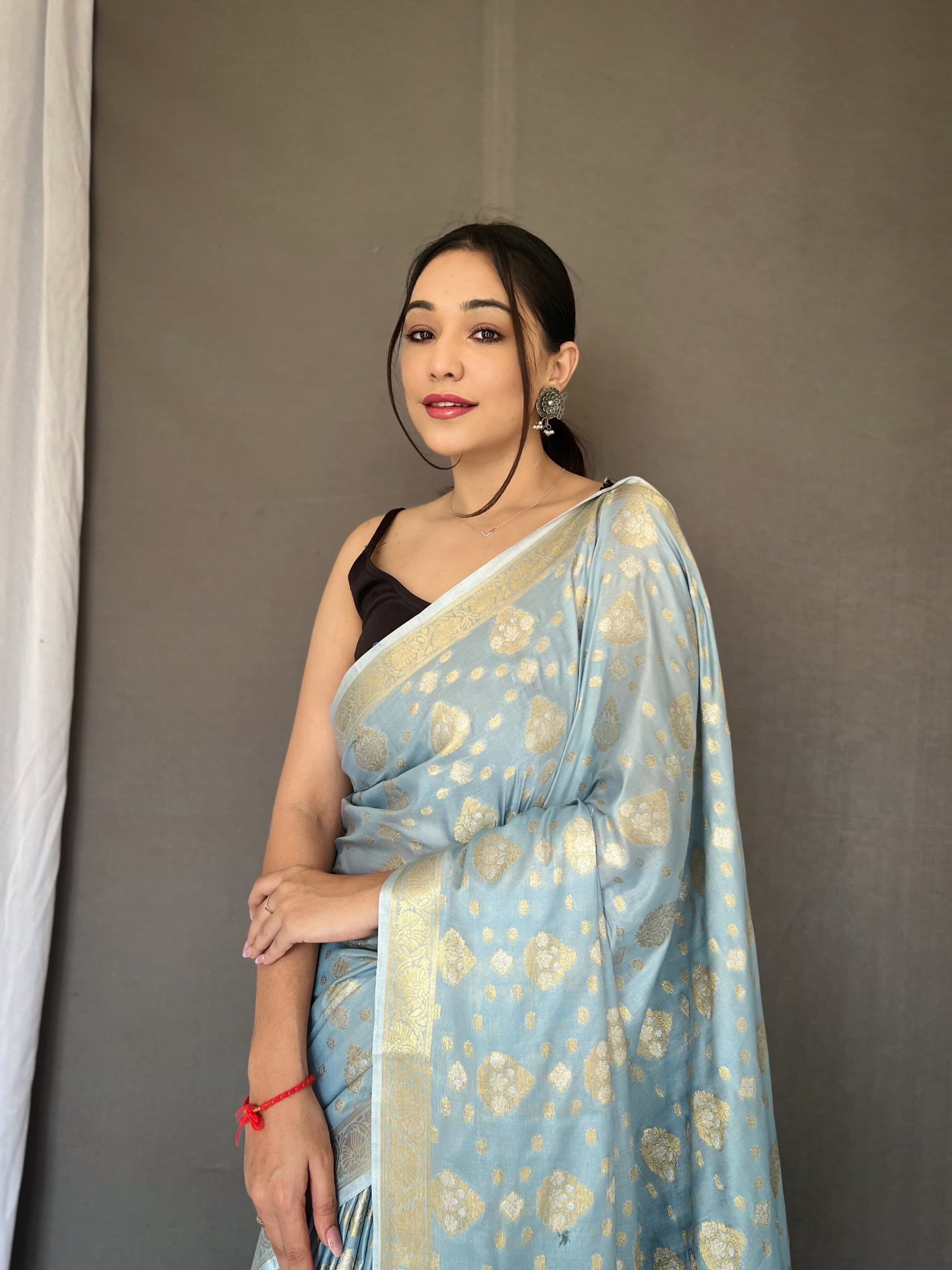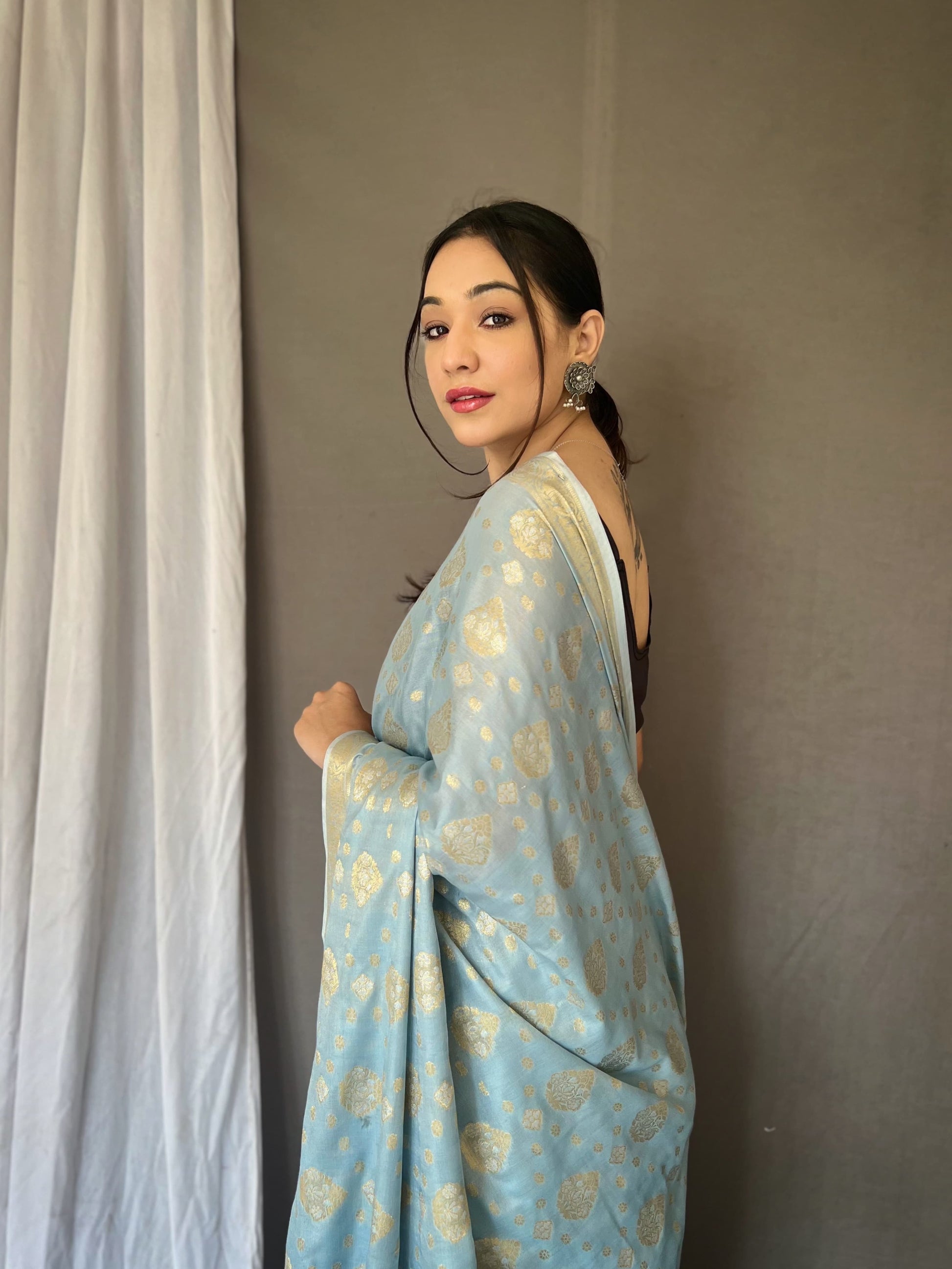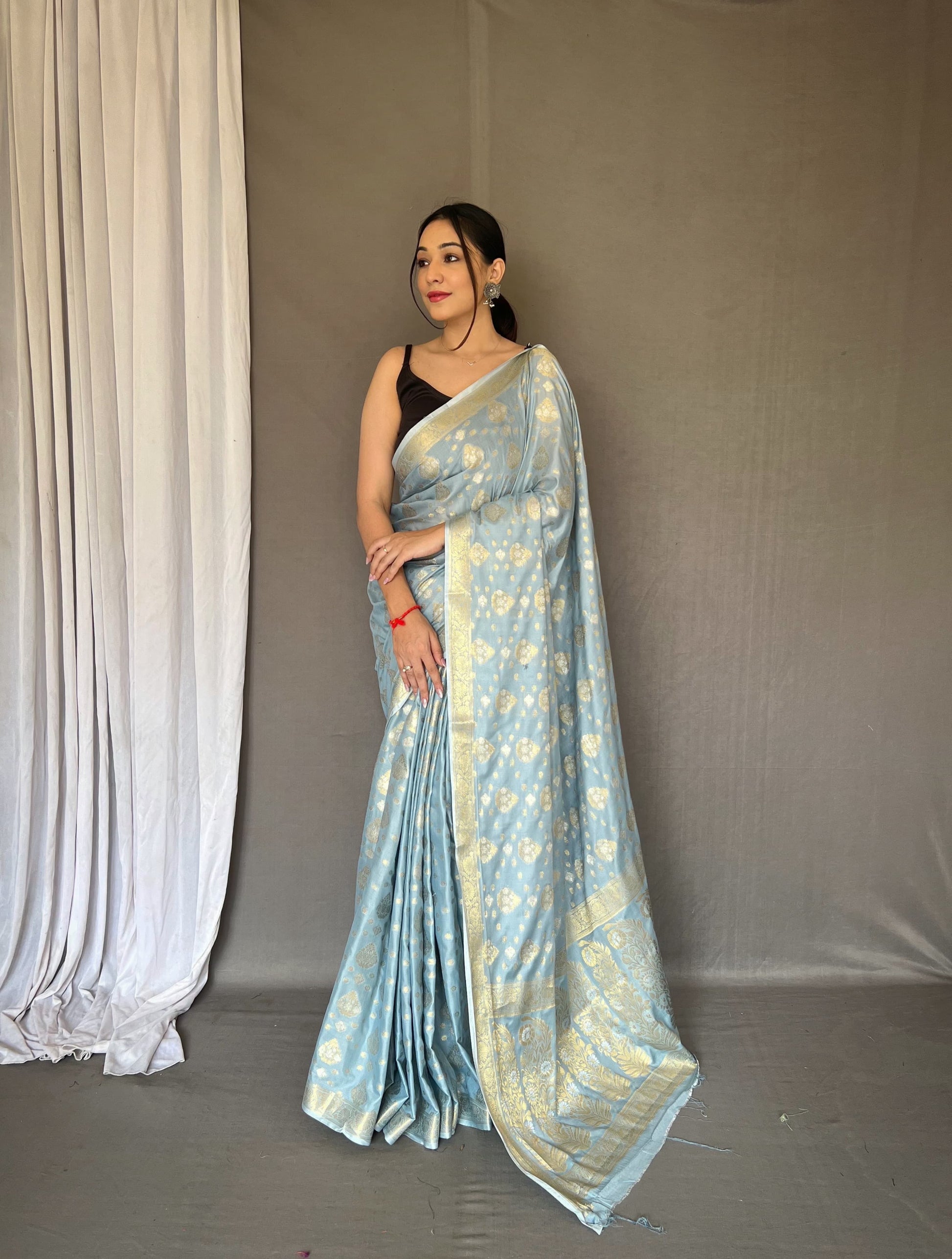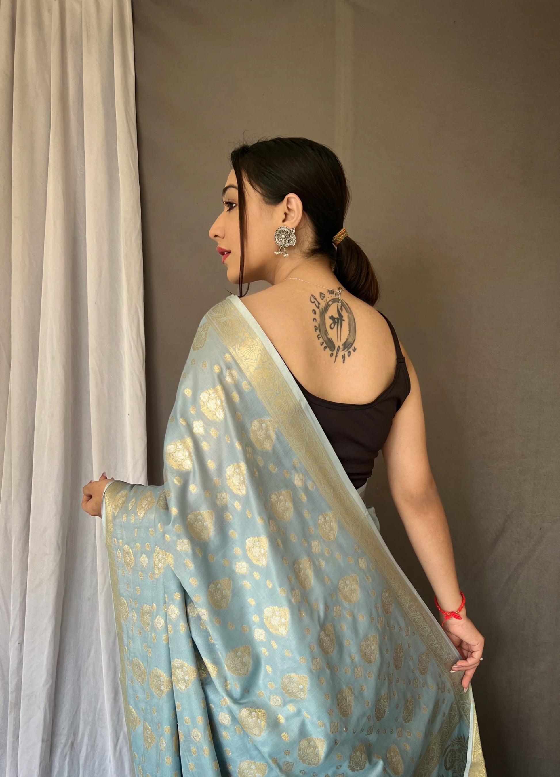 Soft Silk Gold And Silver Design Aqua Blue Saree